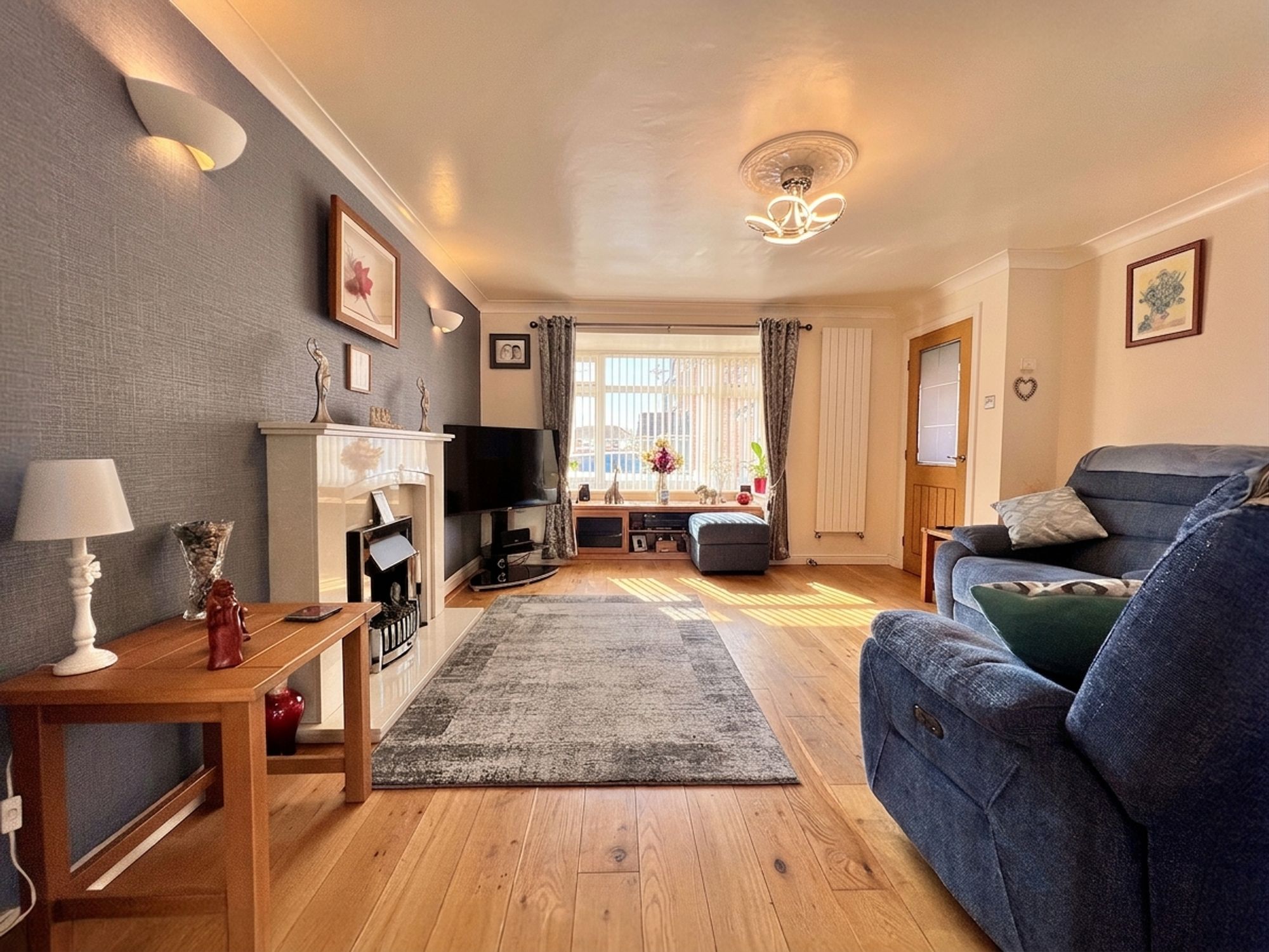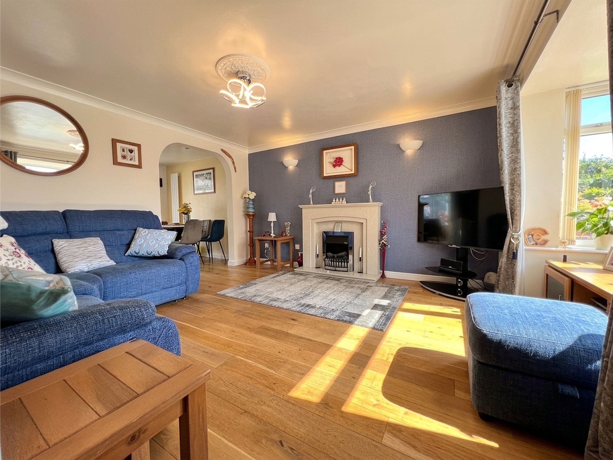A fantastic sized lounge, flooded with natural light courtesy of the large front-facing bay window, creating a bright and welcoming atmosphere. Beautifully presented throughout, the main focal point is the elegant marble fireplace housing a log-effect electric fire, casting a warm and cosy ambience on chilly evenings. An archway opens seamlessly into the dining kitchen, enhancing the flow of the home and making this an incredibly sociable space, perfect for both relaxing and entertaining.