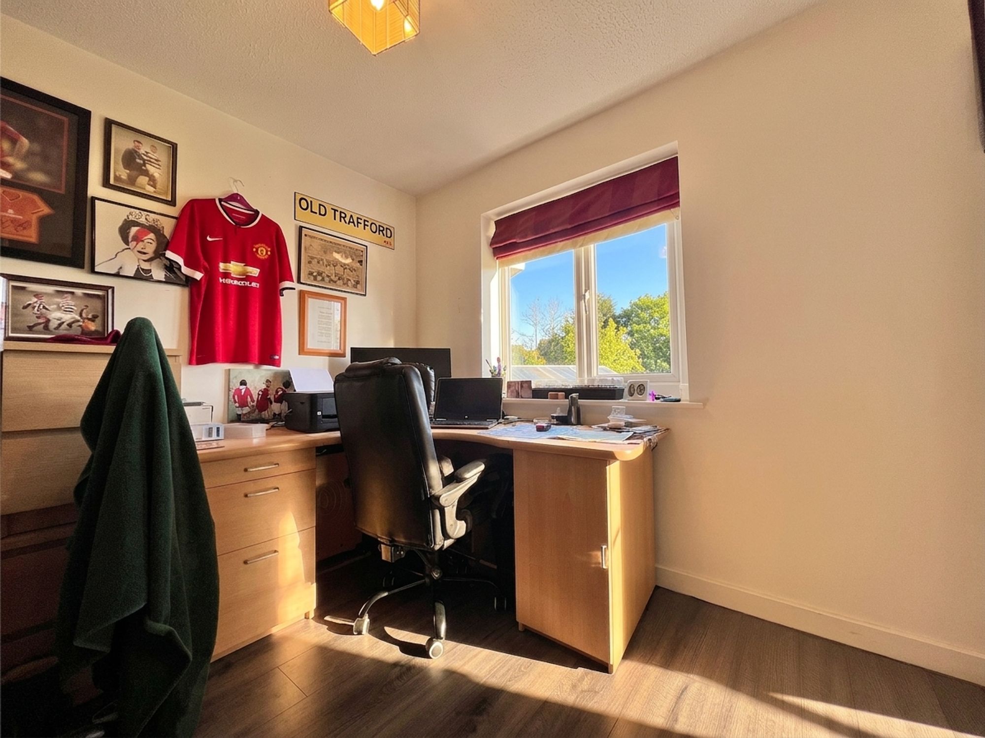 Located to the rear of the property, this versatile room enjoys pleasant views over the garden and sports field beyond. Currently utilised as a home office, it is well-proportioned for use as a single bedroom, offering ample space for a variety of freestanding furniture and adapting easily to suit the purchaser’s needs.