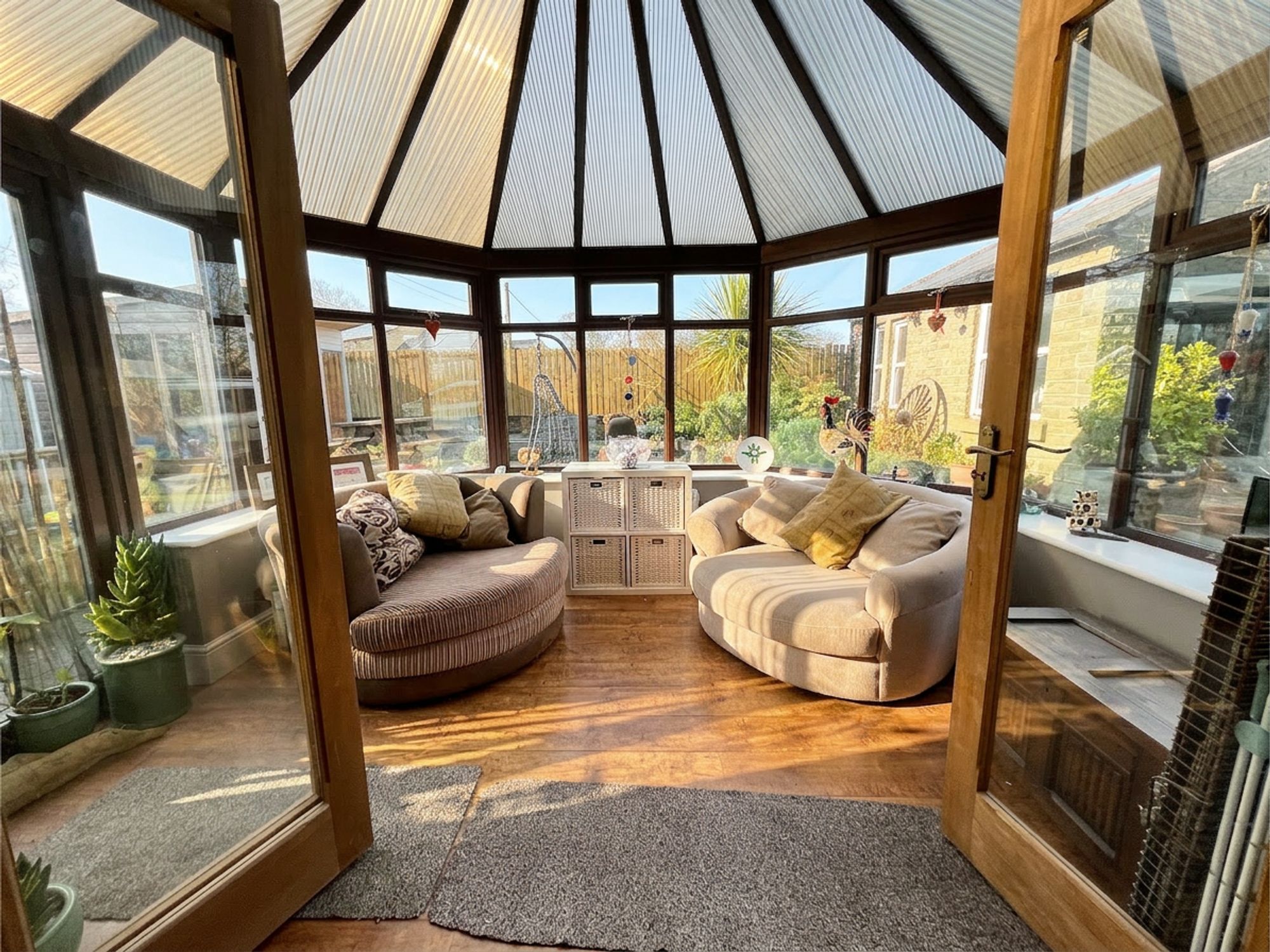 Impressive bi-fold doors open to reveal the conservatory — a delightful space designed for relaxation and soaking in the serene views of the private garden surroundings. This bright and airy room offers incredible versatility, allowing you to either open it up as an extension of the dining area or create your own private retreat. With the added benefit of an electric heater, the conservatory can be enjoyed year-round, making it a haven through every changing season. Whether you're sipping your morning coffee, reading a book in the afternoon sun, or enjoying tranquil garden views on a rainy day, this space offers the perfect spot to unwind and connect with nature from the comfort of your home.
