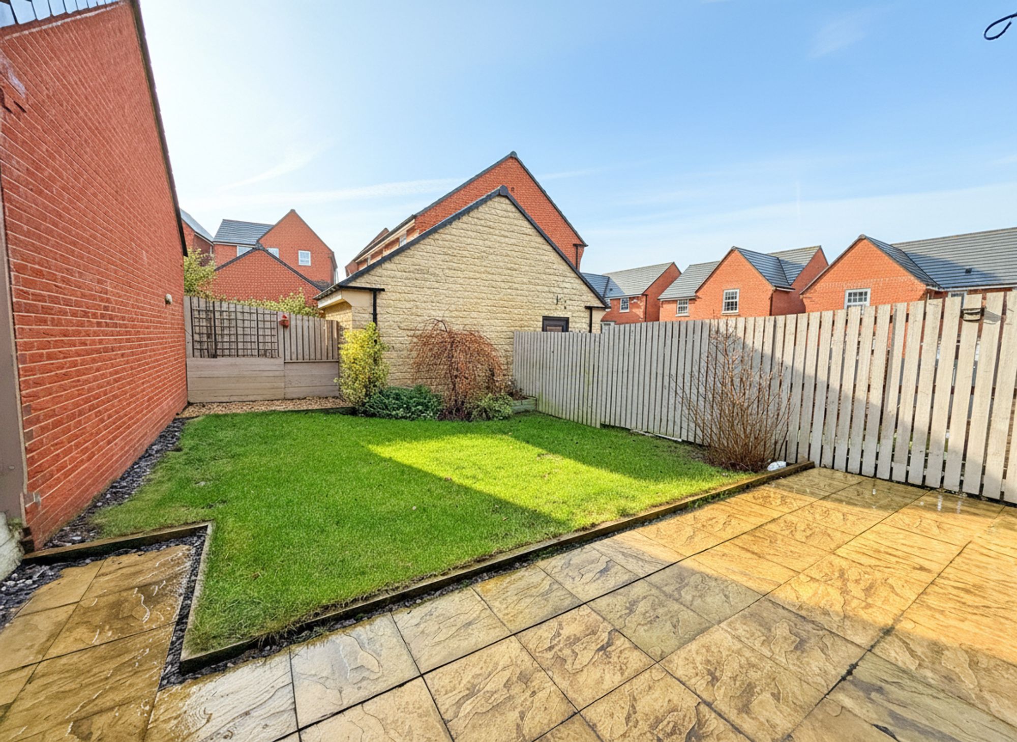 Accessed directly from the kitchen diner or via a side gate from the driveway, the stone-flagged patio provides an excellent spot to relax and enjoy the sun, ideal for outdoor dining and entertaining. This flows seamlessly into a well-maintained grassed lawn, bordered by slate-chipped planted beds and enclosed by wooden fencing, creating a private and secure space perfect for children and pets. To the rear of the garden, a pebbled seating area offers an additional peaceful place to unwind.