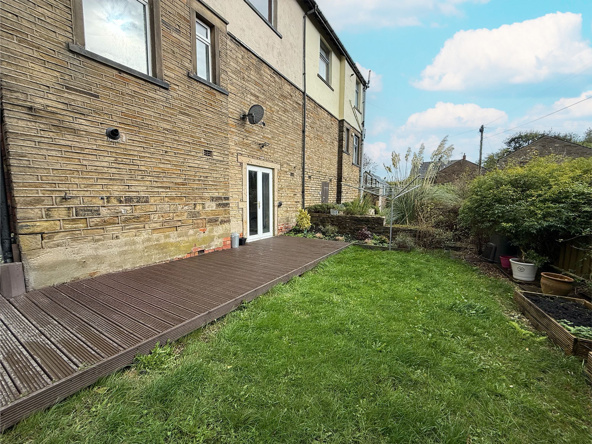 Accessed via stone steps to the side of the property, the rear garden offers a versatile outdoor space perfect for relaxation and entertaining. A decked area leads directly from the annex French doors, creating an ideal setting for al fresco dining. Beyond the decking, there are neatly kept lawned areas complemented by established plant beds, providing both greenery and charm.