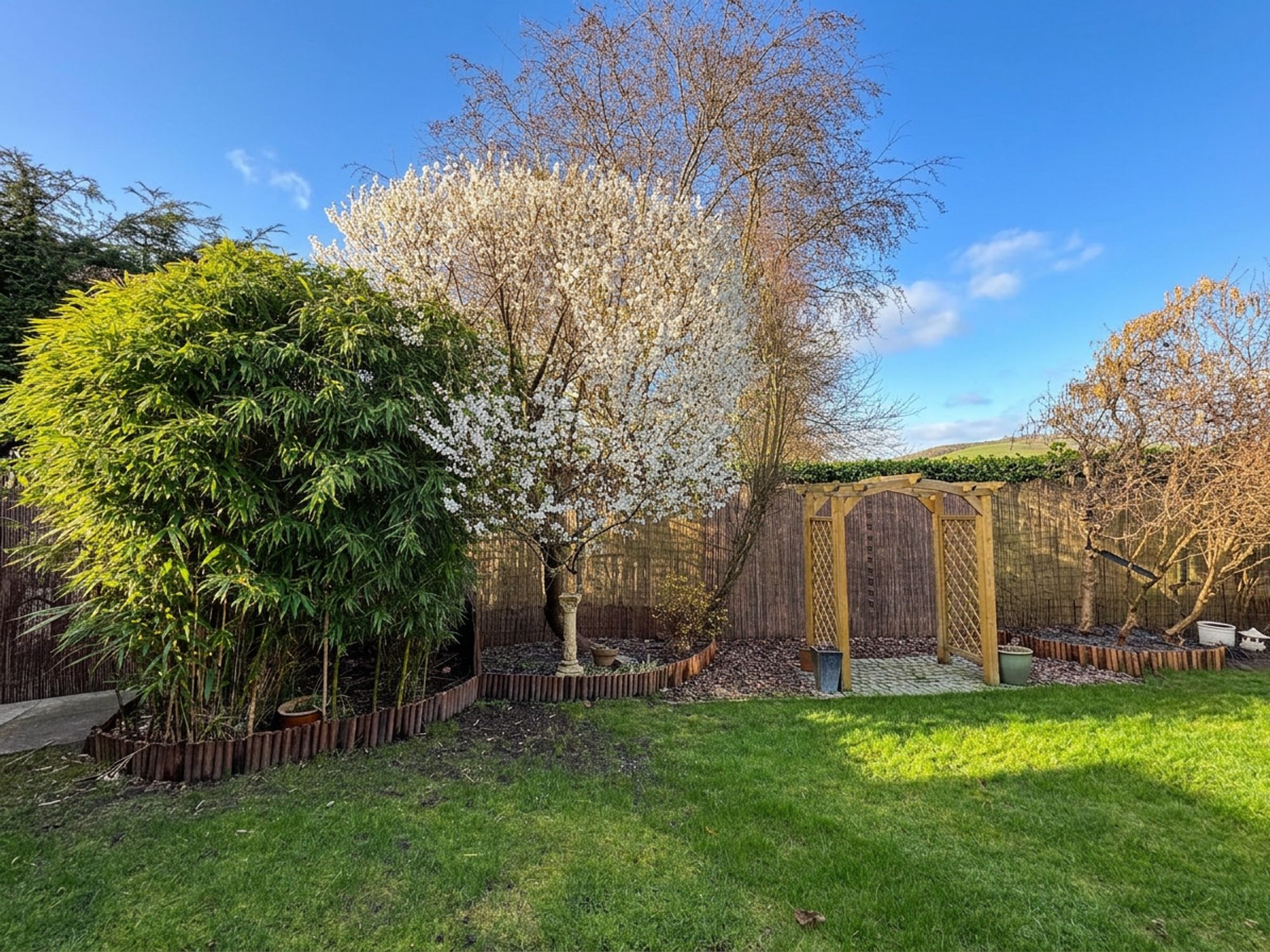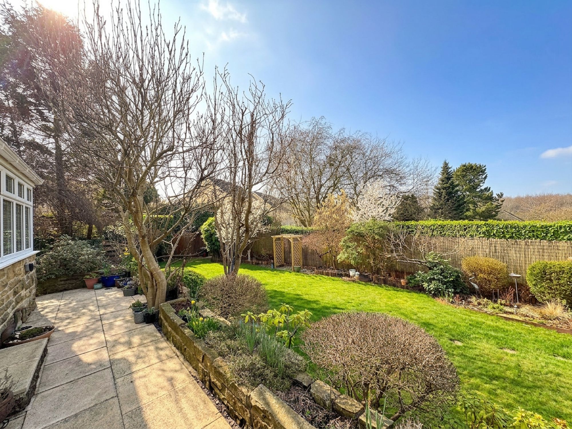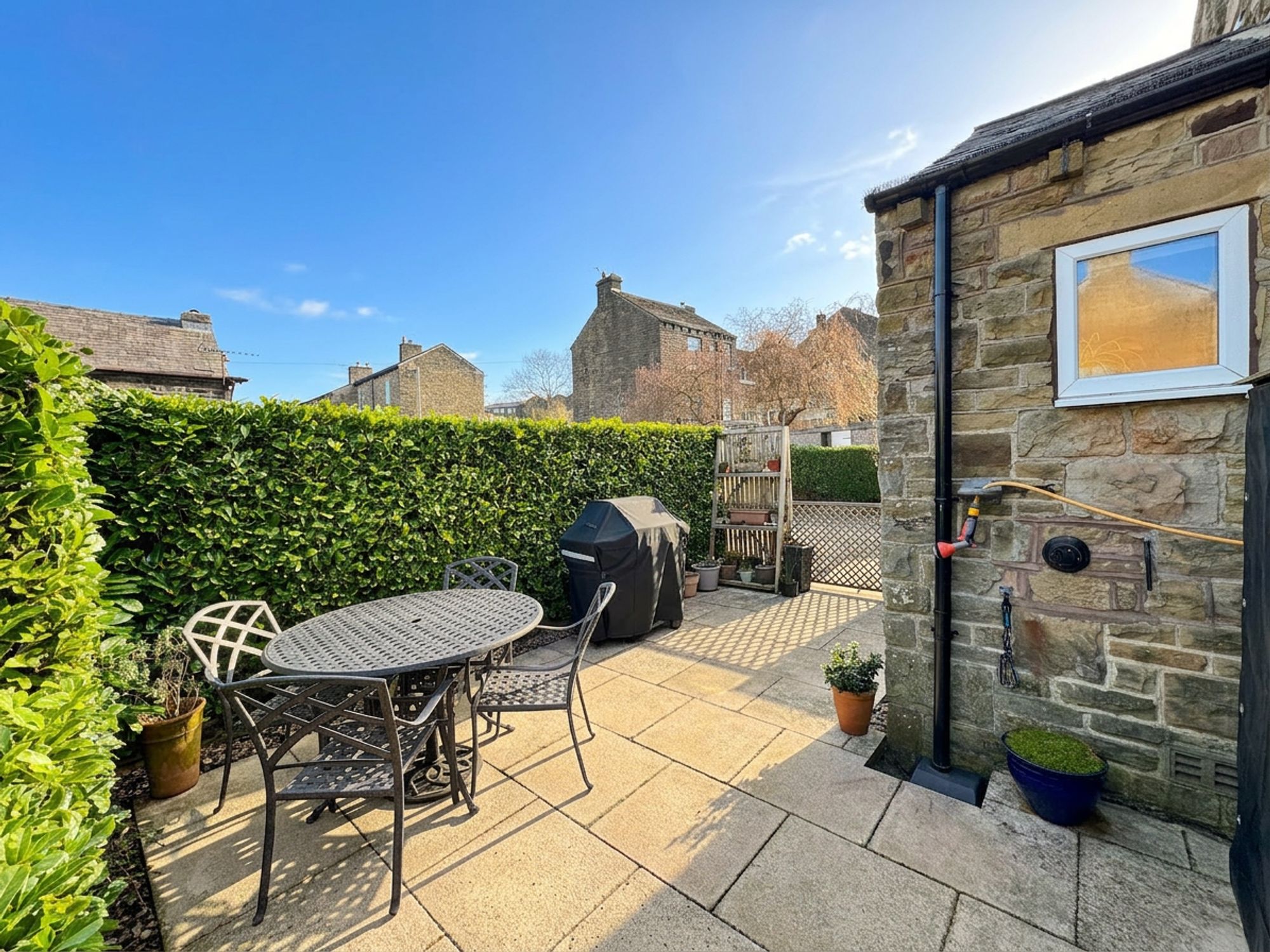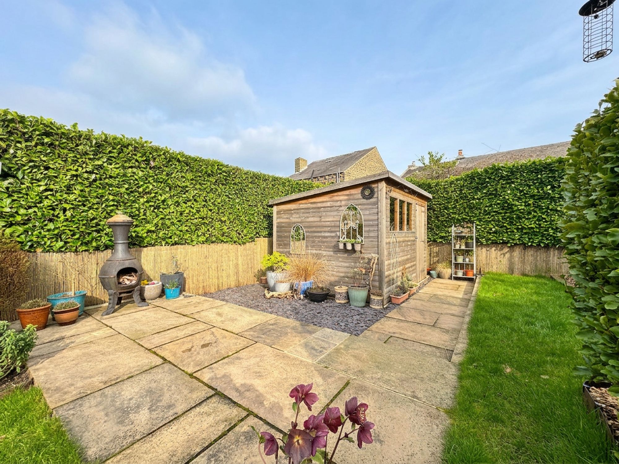 The rear garden is a truly impressive outdoor space, fully enclosed and offering both privacy and security, making it ideal for children and pets. Rich in character, the garden is filled with an abundance of lush greenery and mature planting, including a beautiful magnolia tree, bamboo and a variety of established shrubs. Wrapping around the property, the garden provides a wonderful sense of space and features a well-kept lawn, garden shed, patio seating area and flower beds. There is also a second lower, Indian paver patio area perfect for outdoor dining or relaxing. Thoughtfully arranged and lovingly maintained, the garden offers a peaceful and picturesque setting to enjoy throughout the seasons.