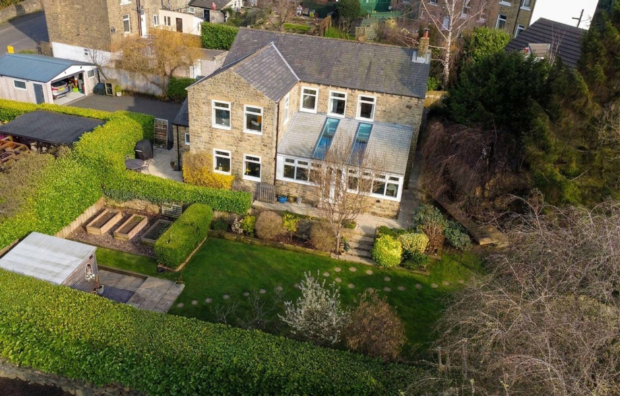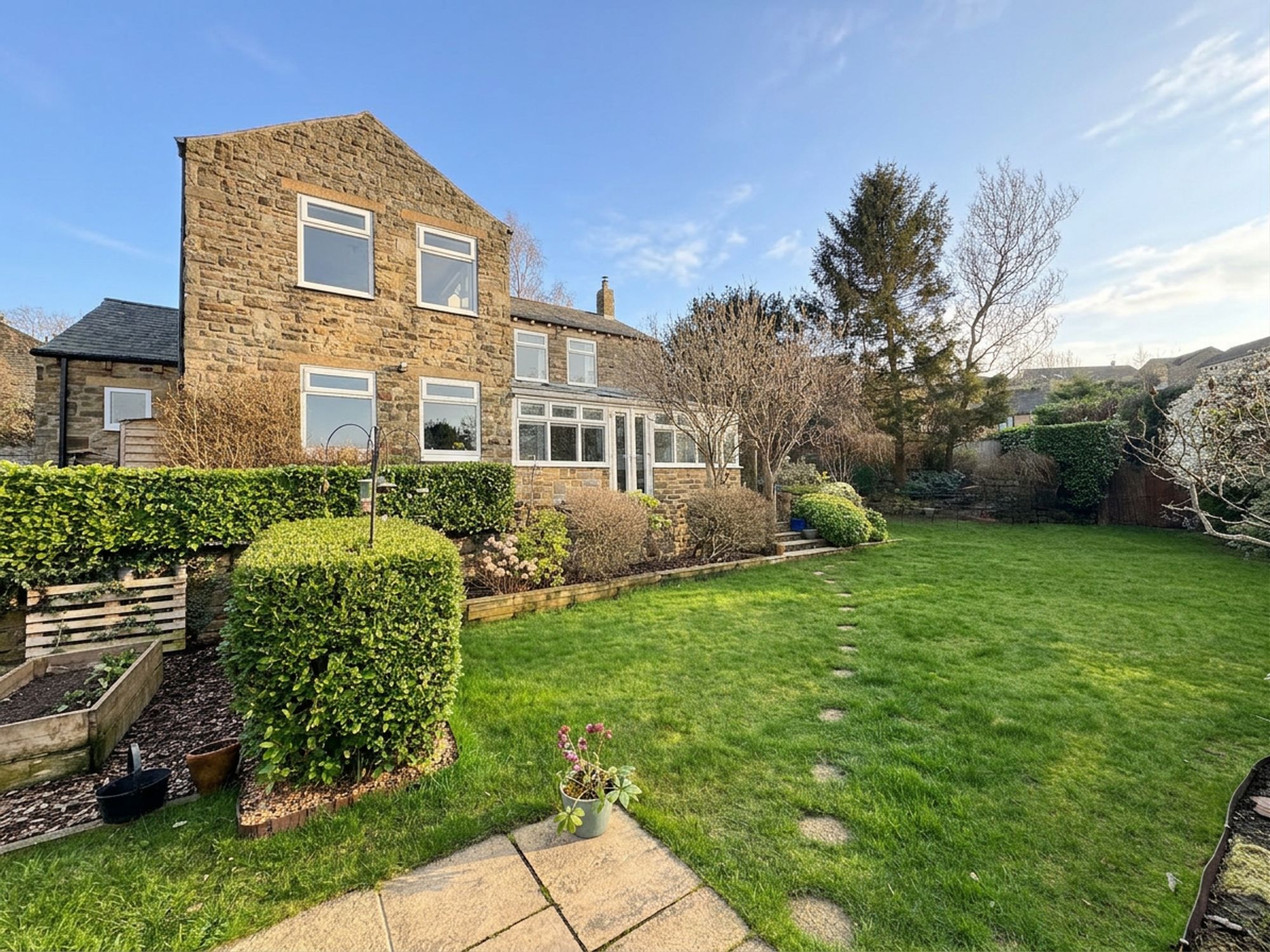 This beautifully presented 3 / 4 bed, detached stone-built property sits on a generous plot, offering ample off-street parking and well-maintained gardens. The home has been carefully looked after by the current owners, who have thoughtfully upgraded several aspects to enhance both style and functionality. Their attention to detail is evident throughout, creating a home that is both elegant and welcoming. Outside, the property is complemented by a beautiful mature garden, providing a peaceful and private outdoor space to enjoy. The property is situated in the highly desirable village of Linthwaite, which is surrounded by stunning countryside and canal-side walks, while the nearby village of Slaithwaite benefits from a vibrant range of independent cafes, bars, restaurants and shops and the railway station provides convenient connections to Huddersfield, Manchester and Leeds, making it an excellent location for commuters.