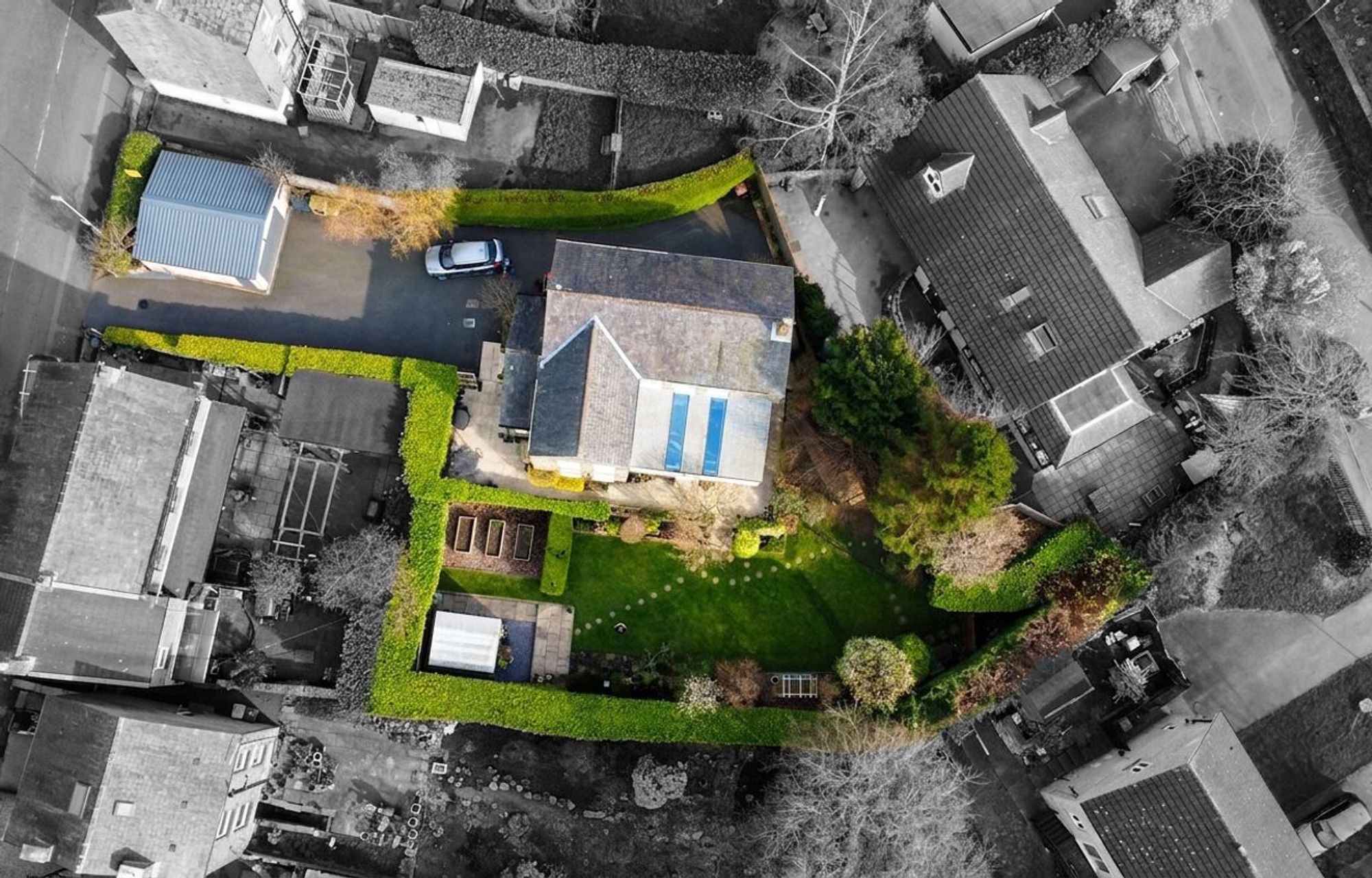 Driveway: 10 spaces - The property benefits from an expansive gated driveway, providing secure off-street parking for several cars.