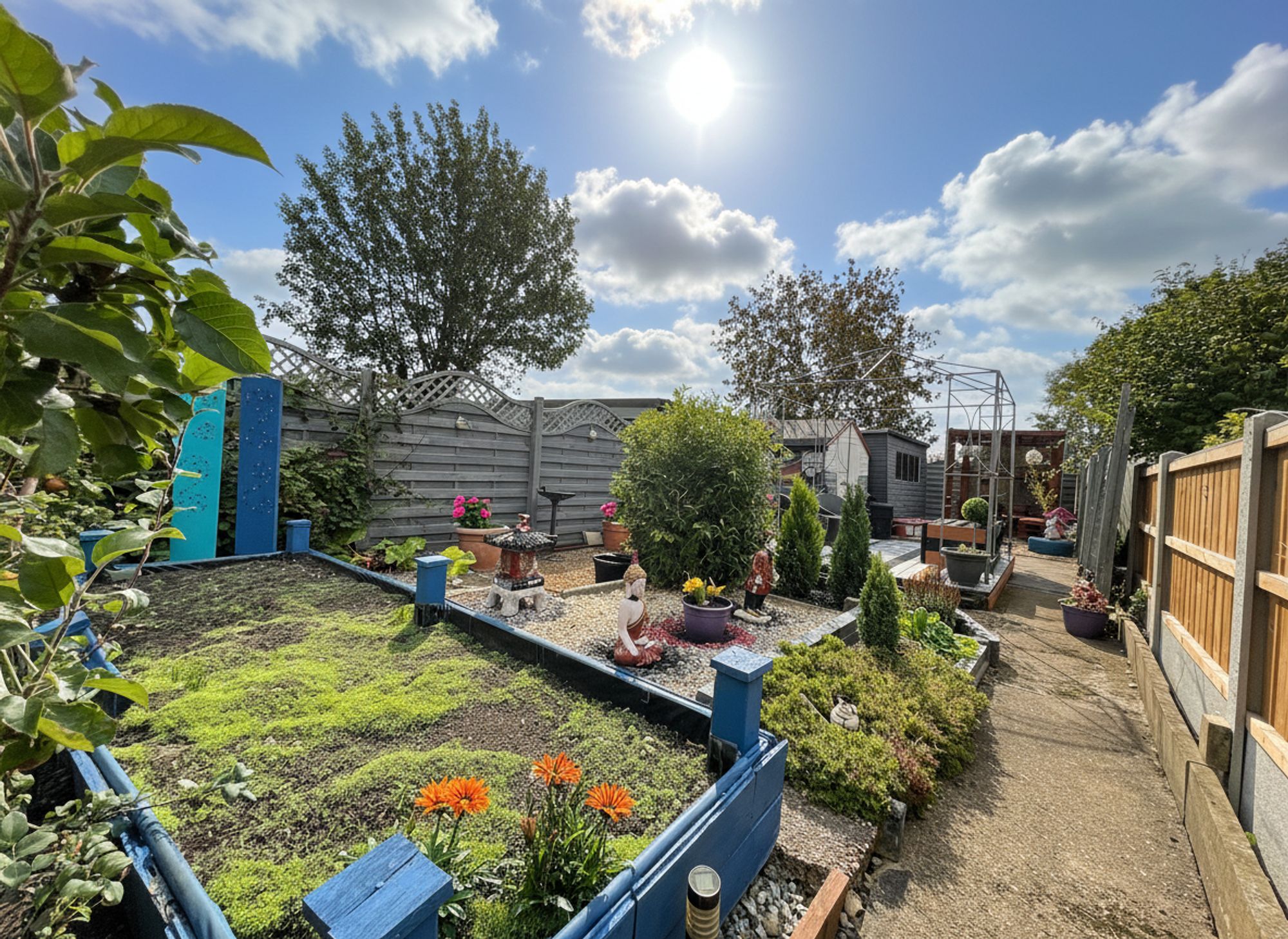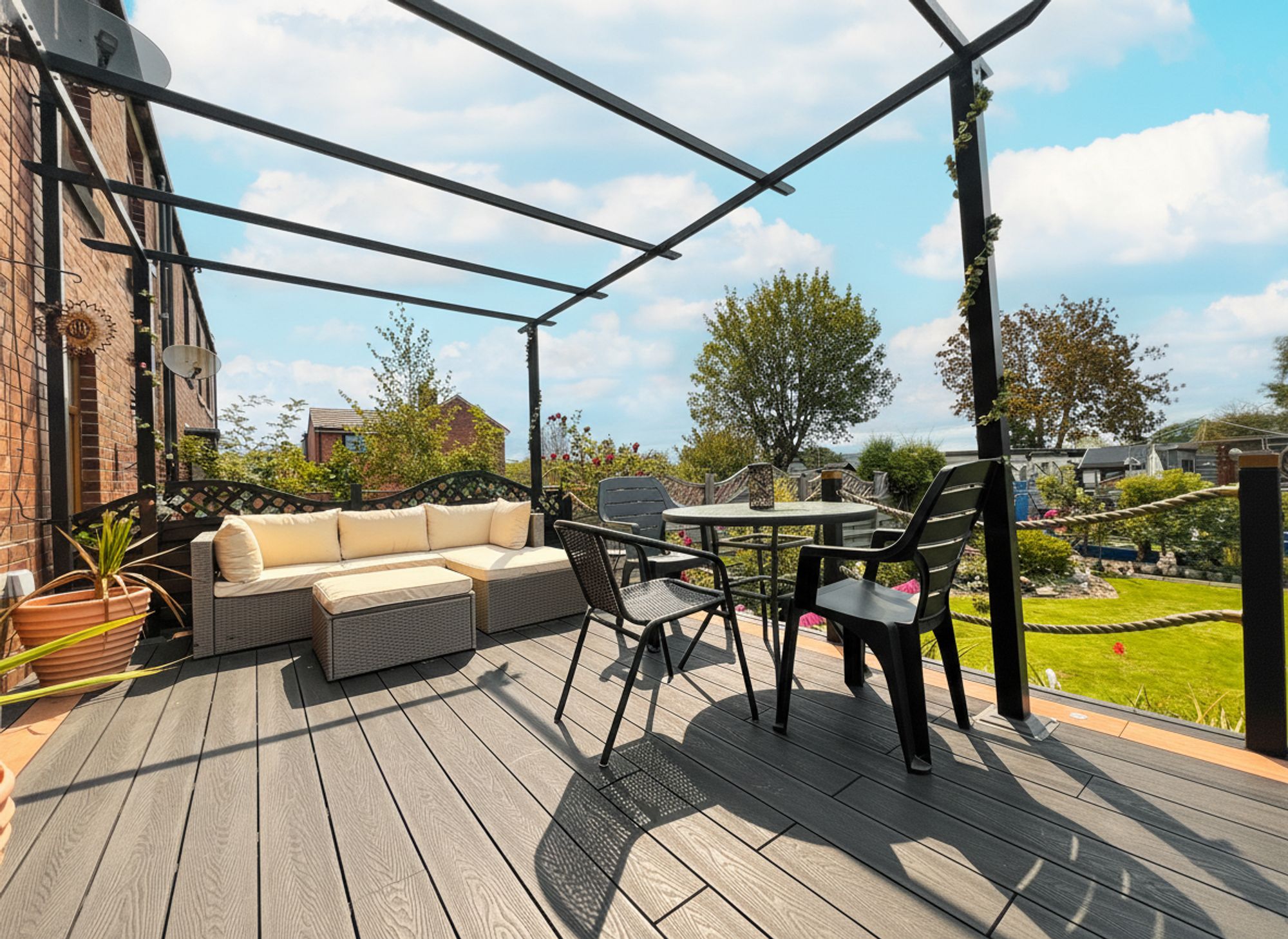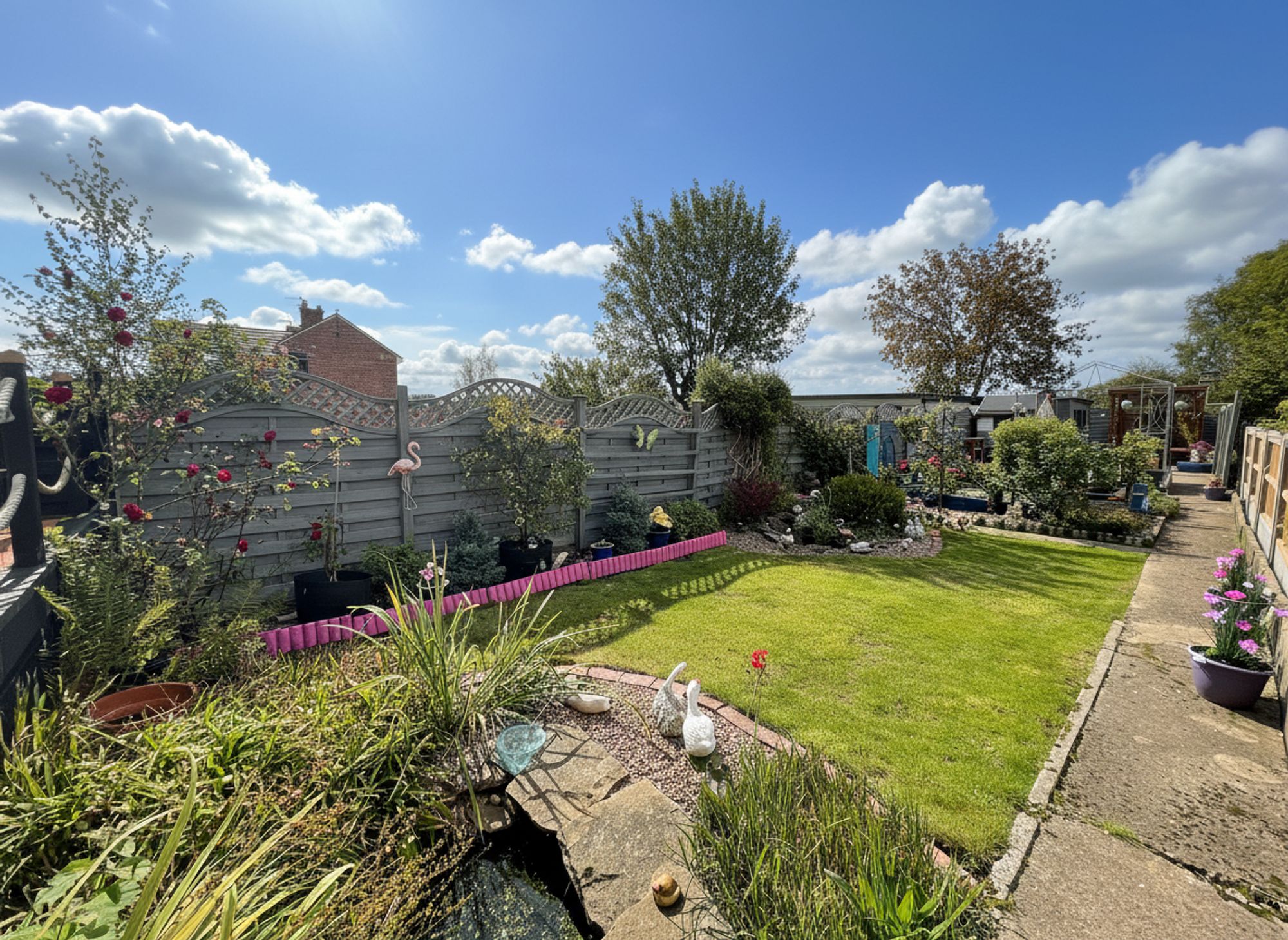Stretching to around 100ft, the fully enclosed gardens are a true haven, beautifully manicured yet brimming with character. Recently laid composite decking complete with inlaid lights, which can be colour and mode changed, sets an inviting ambience for evening gatherings, whilst a sun canopy with retractable roof offers a peaceful retreat during the day. Steps lead down to the lawned garden with two wildlife ponds, bringing the space alive with nature. Apple trees, rhubarb and blackberry bushes, together with a vegetable plot, provide both charm and productivity. At the far end of the garden, a further deck and pergola provide additional seating areas, creating the perfect spot to relax and enjoy the surroundings.