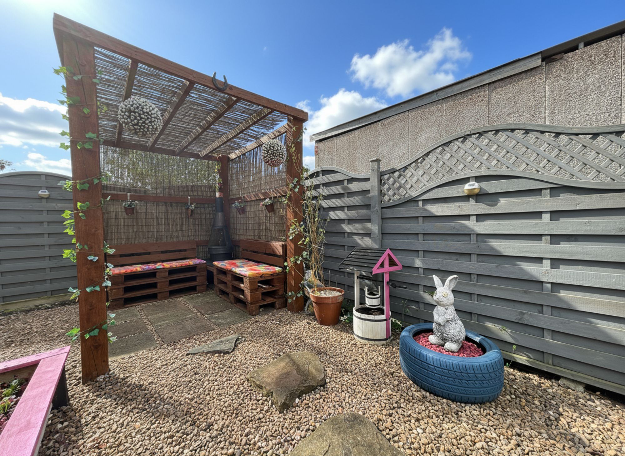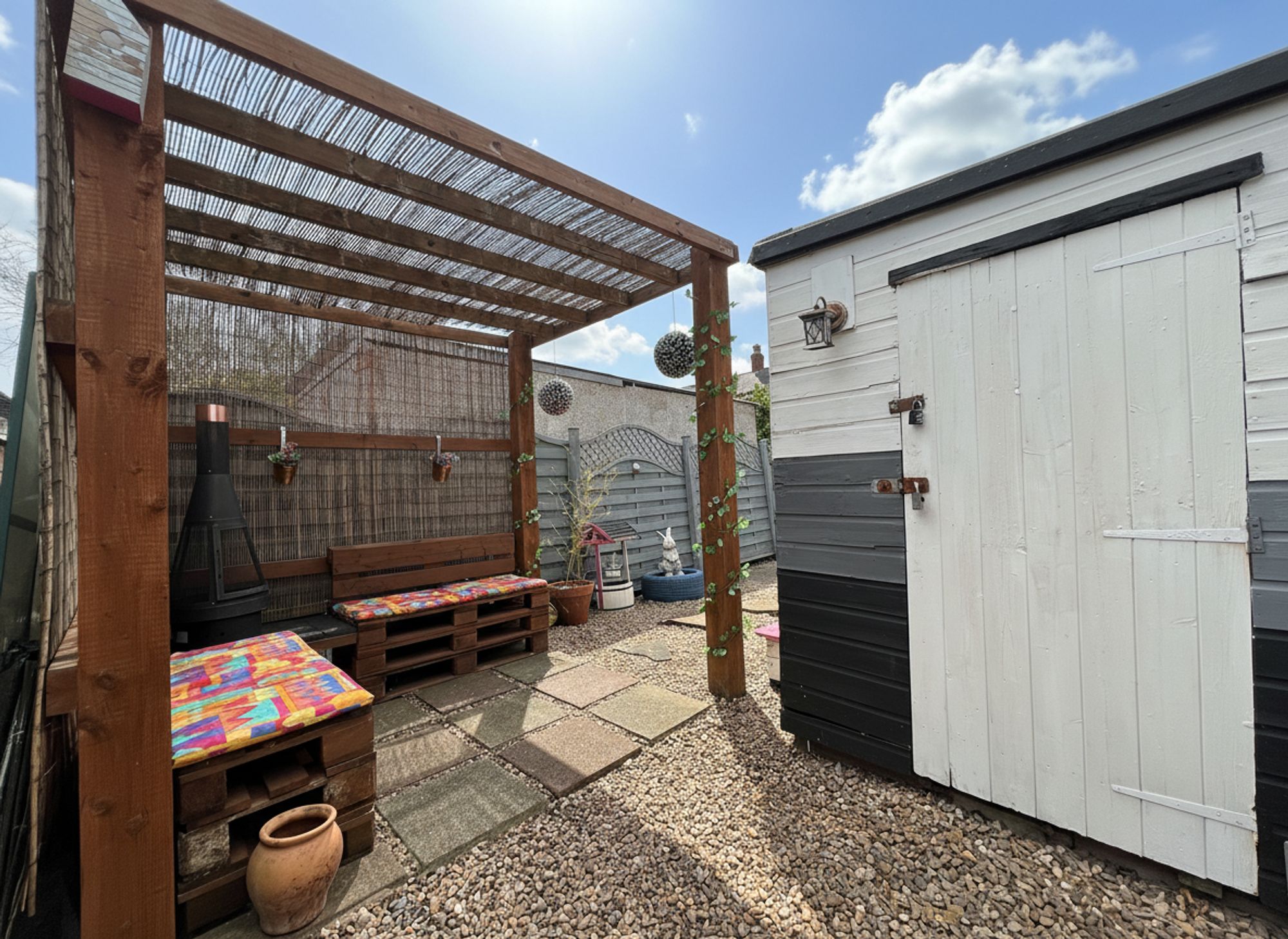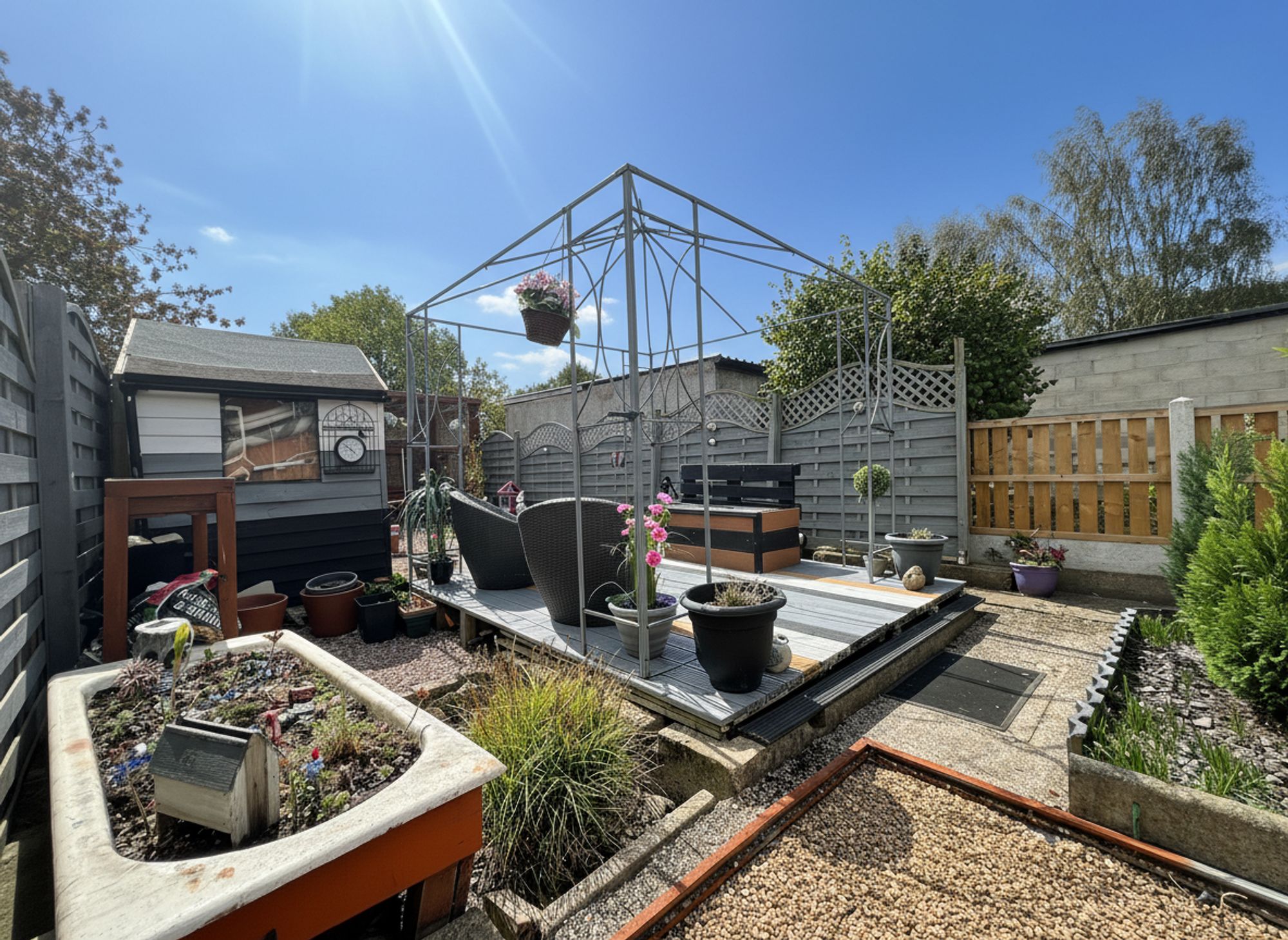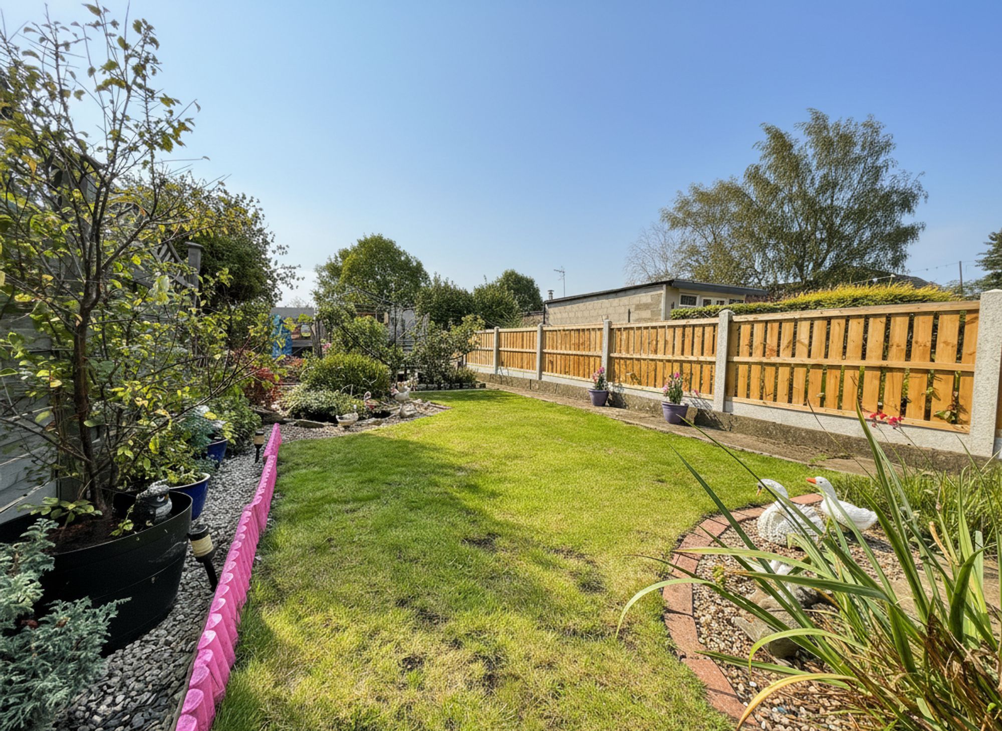 Stretching to around 100ft, the fully enclosed gardens are a true haven, beautifully manicured yet brimming with character. Recently laid composite decking complete with inlaid lights, which can be colour and mode changed, sets an inviting ambience for evening gatherings, whilst a sun canopy with retractable roof offers a peaceful retreat during the day. Steps lead down to the lawned garden with two wildlife ponds, bringing the space alive with nature. Apple trees, rhubarb and blackberry bushes, together with a vegetable plot, provide both charm and productivity. At the far end of the garden, a further deck and pergola provide additional seating areas, creating the perfect spot to relax and enjoy the surroundings.