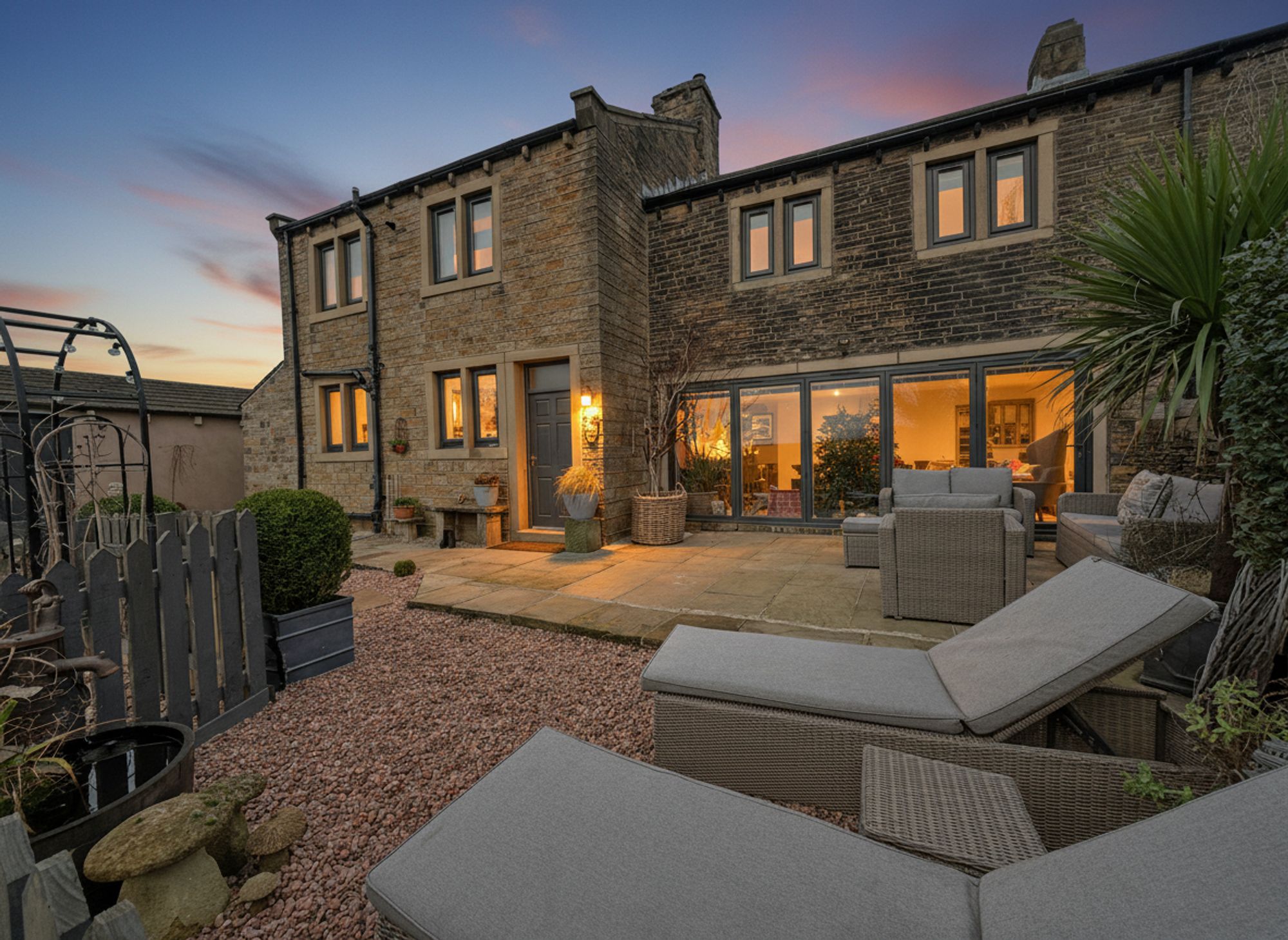 The exterior of this property is a haven for outdoor enthusiasts, offering a wonderfully family-friendly and sociable setting. Thoughtfully designed and beautifully landscaped, the grounds are arranged into a series of inviting outdoor retreats. A charming patio provides the perfect spot for alfresco dining with friends and family, or for enjoying a peaceful morning coffee while being serenaded by birdsong. The expansive outdoor space, predominantly laid to lawn, is ideal for children and pets to roam freely, play, and explore. The garden and paddock together extend to approximately half an acre, making it perfectly suited for those wishing to keep a small pony.