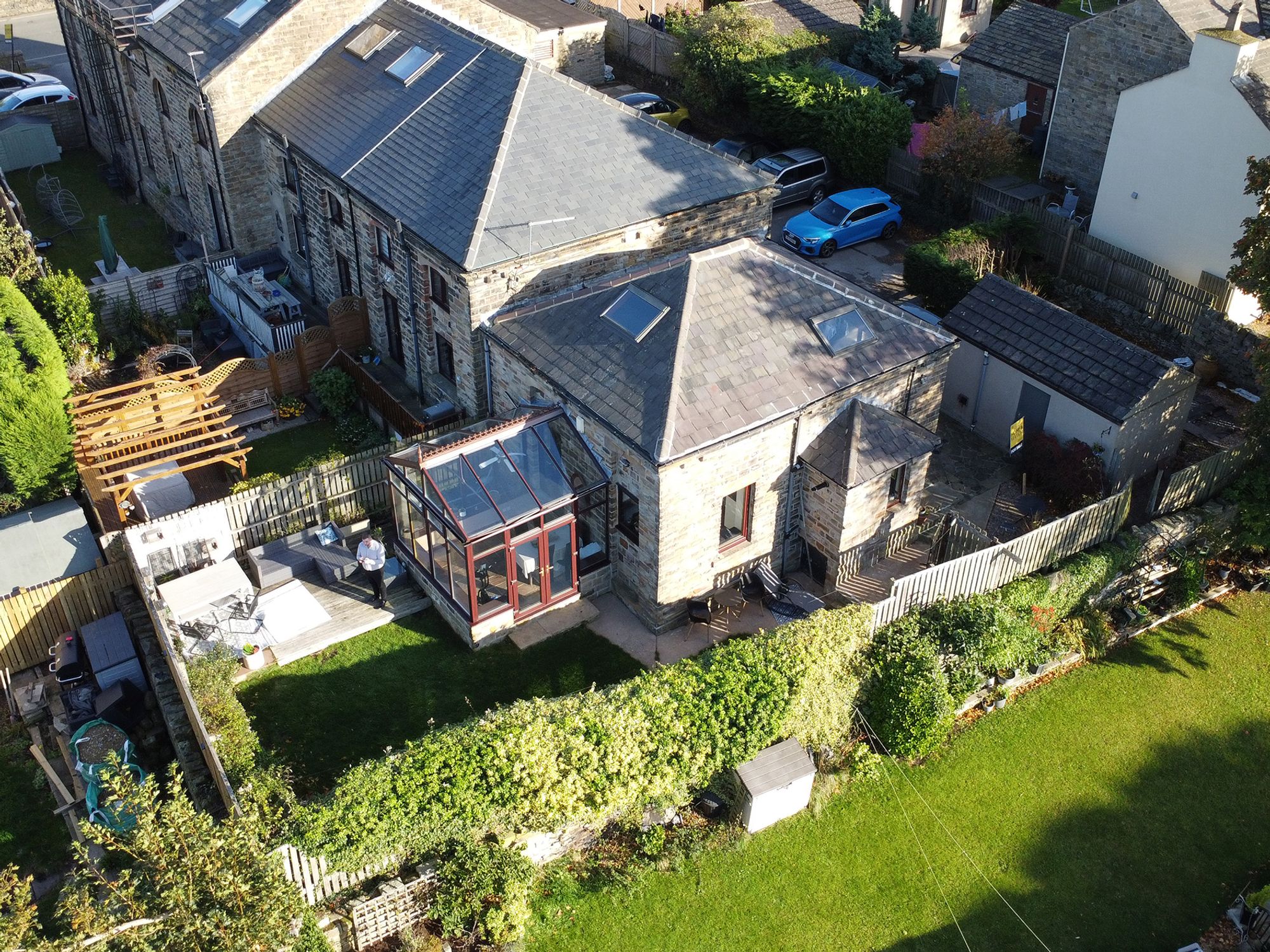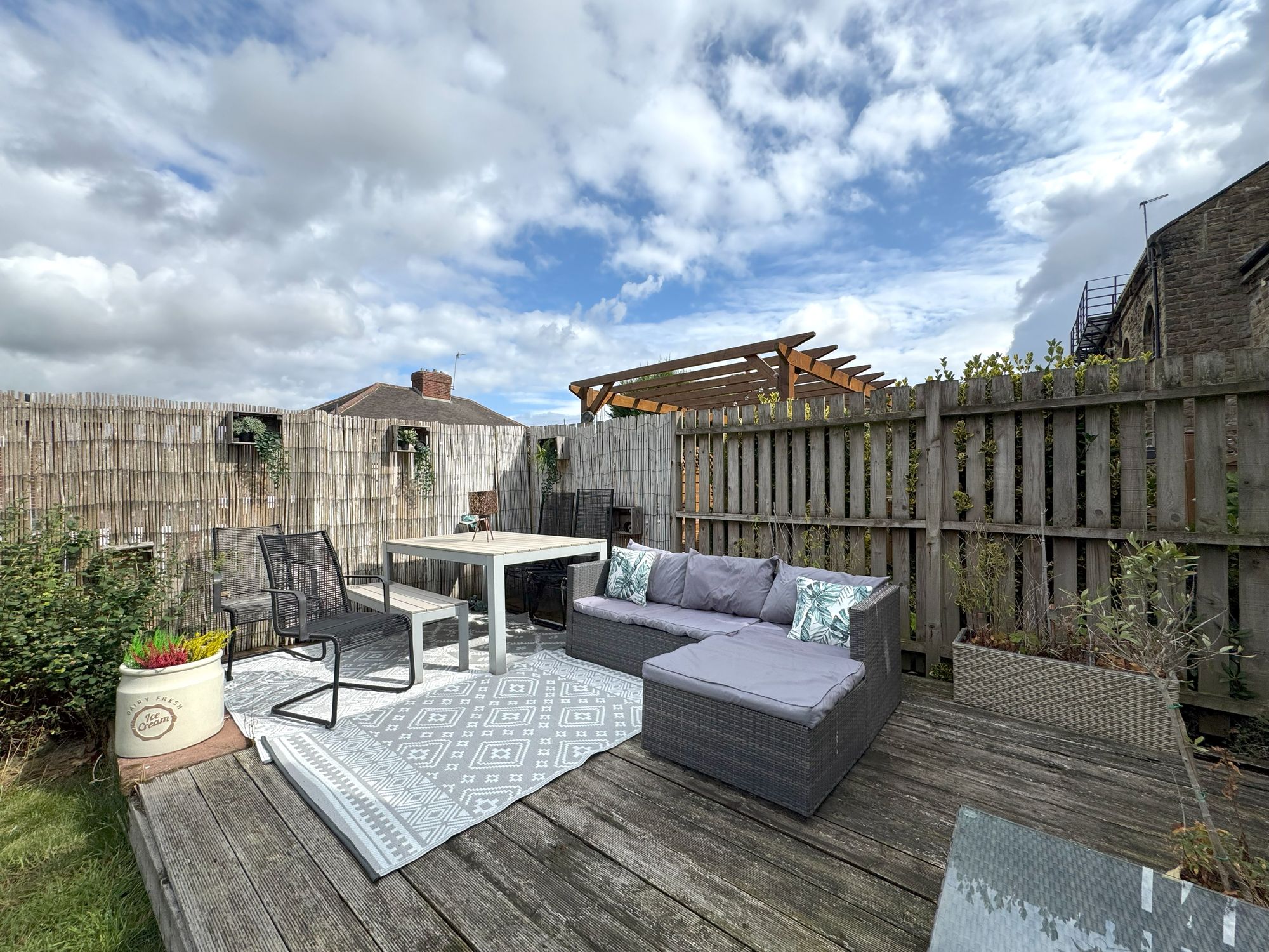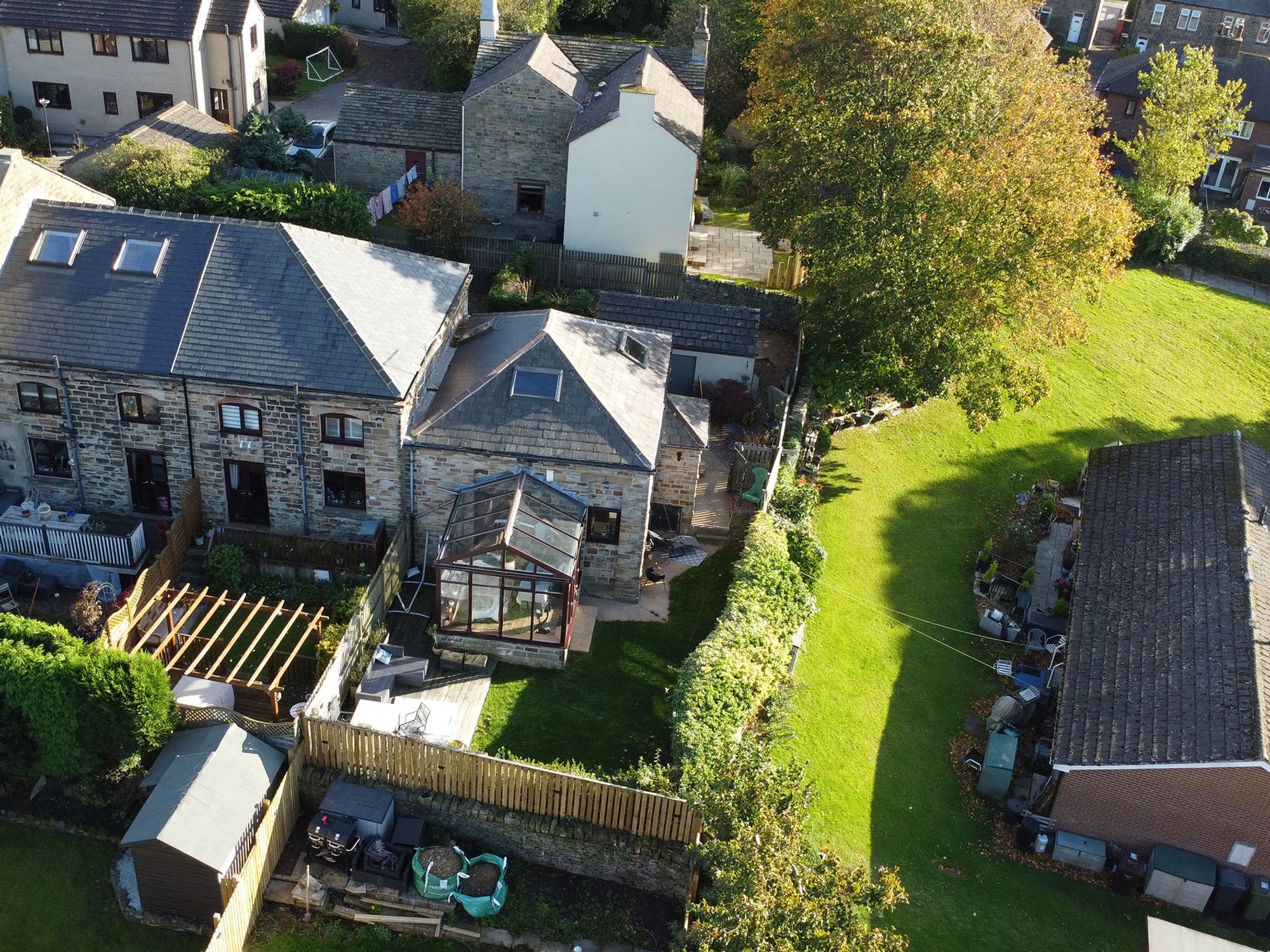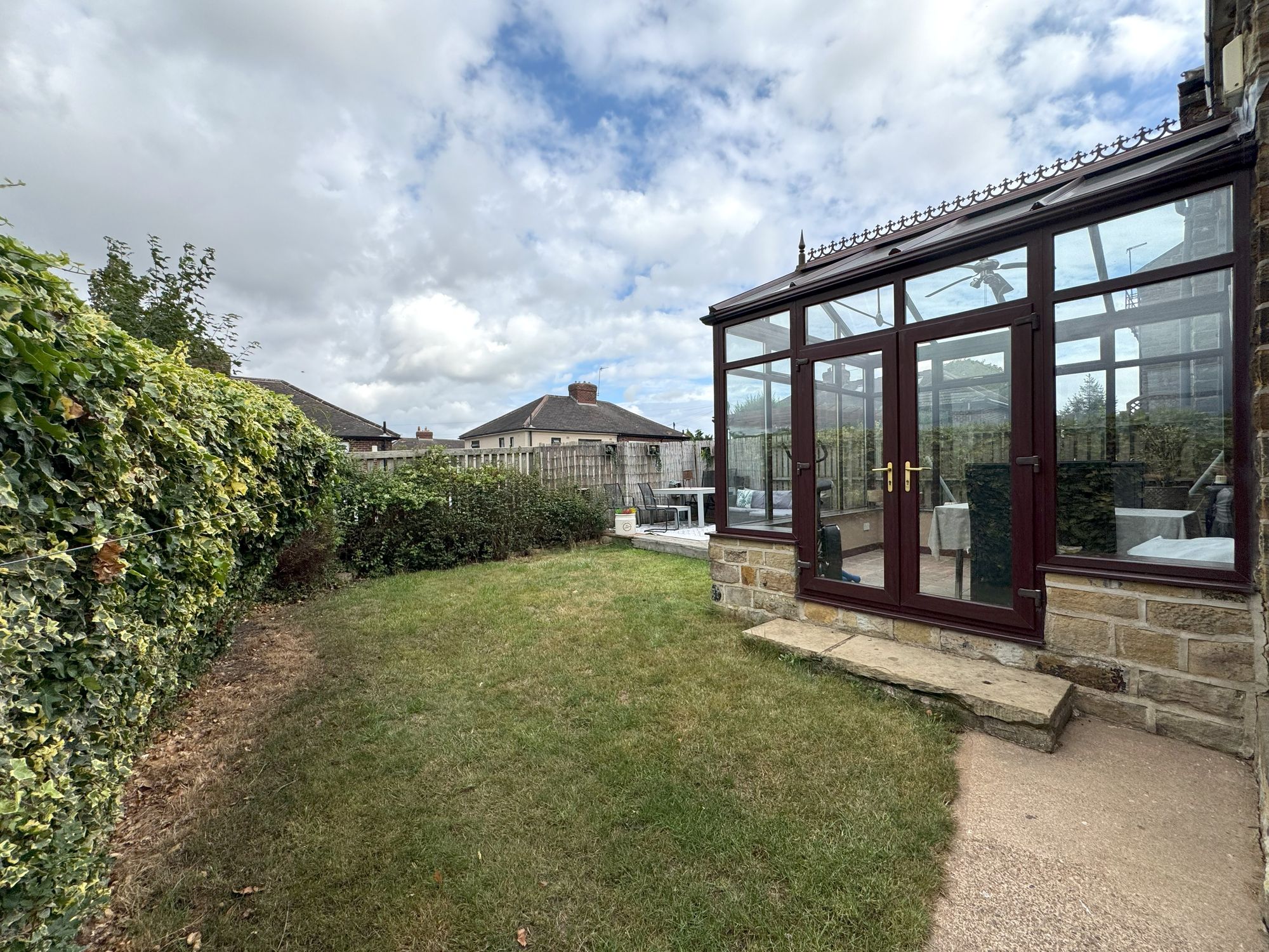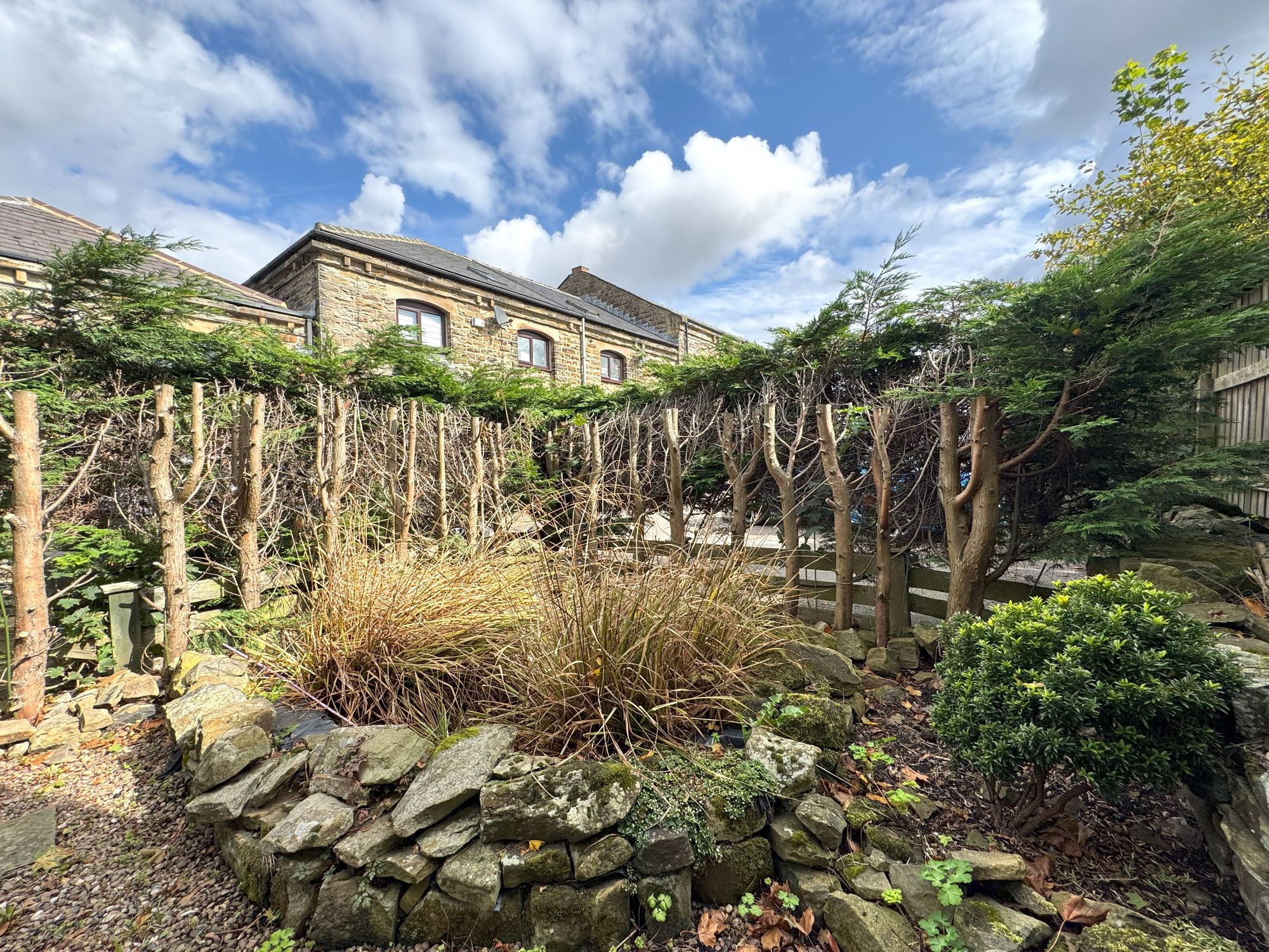The property boasts a beautifully maintained garden, perfectly designed for both relaxation and entertaining. A striking glass conservatory with double doors opens directly onto a spacious lawn, enclosed by mature hedging for privacy. To the side, a raised decked area provides an ideal outdoor living and dining space, complete with seating and plenty of room for entertaining guests. The garden is a wonderful extension of the home, combining the charm of stone and glass architecture with practical, low-maintenance outdoor areas. Offering a mix of open lawn and a stylish deck, this outdoor space is perfect for families, summer gatherings or simply enjoying the peaceful surroundings. Through the gate, a patio area creates additional seating space. Follow the winding path from this area behind the garage to find an enclosed gravelled area which hosts potential for a variety of uses, and features a mature pond.