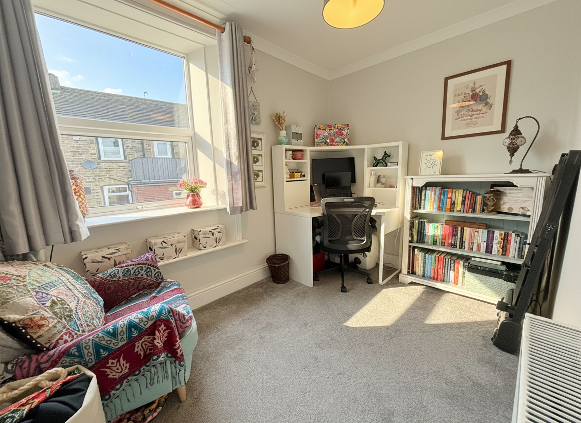 Located to the rear of the property, this spacious single bedroom is currently utilised as a home office, offering a versatile space that could easily accommodate a single bed or additional furnishings as required.