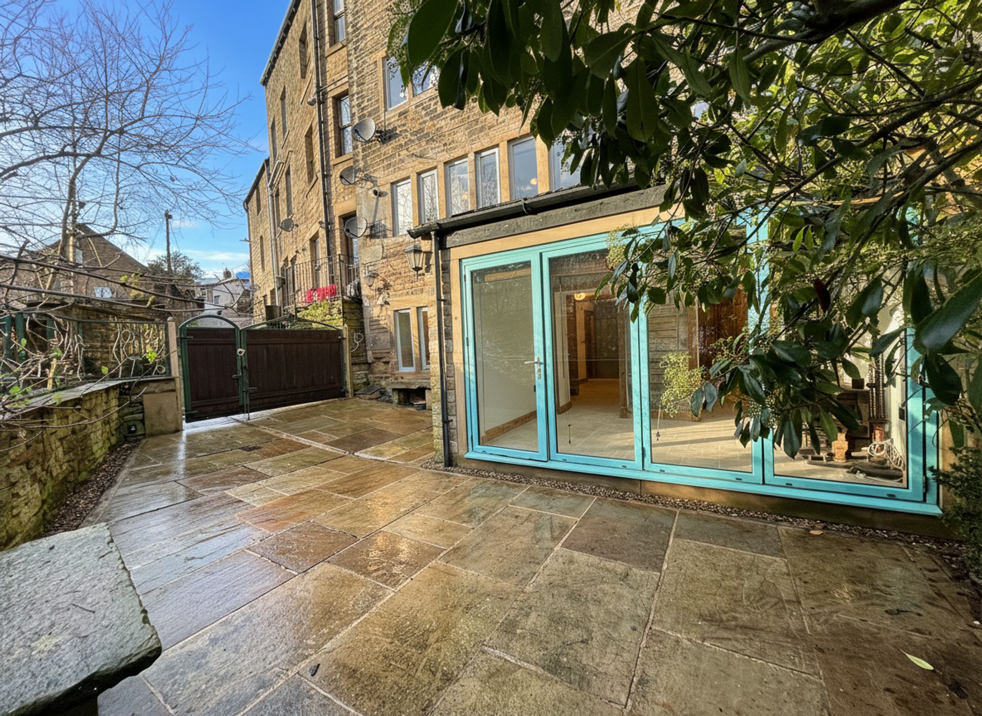 Bi-fold doors from the lower ground floor open to reveal a fabulously sized, double-gated patio area, perfectly suited for alfresco dining and outdoor entertaining, while enjoying the peaceful, calming sounds of the river in the distance. This private and enclosed space provides an idyllic setting for both relaxation and socialising. The upper level is accessed via steps from Woodhead Road, while a lane to the side of the property leads down to the lower ground floor, offering flexible and independent access to each level. Permit parking is available, subject to application and approval by the local authority.