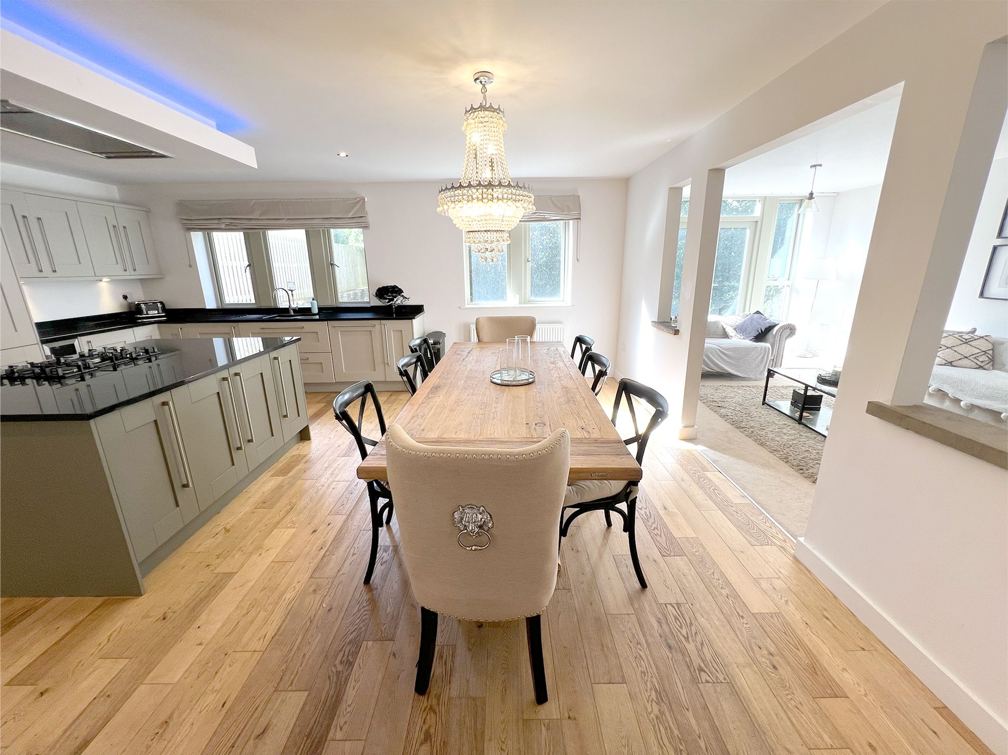 Open plan to the dining kitchen, this welcoming snug creates the perfect setting for the whole family to come together and relax. Patio doors open onto the rear garden, filling the space with natural light and allowing gatherings and entertaining to flow effortlessly outdoors.