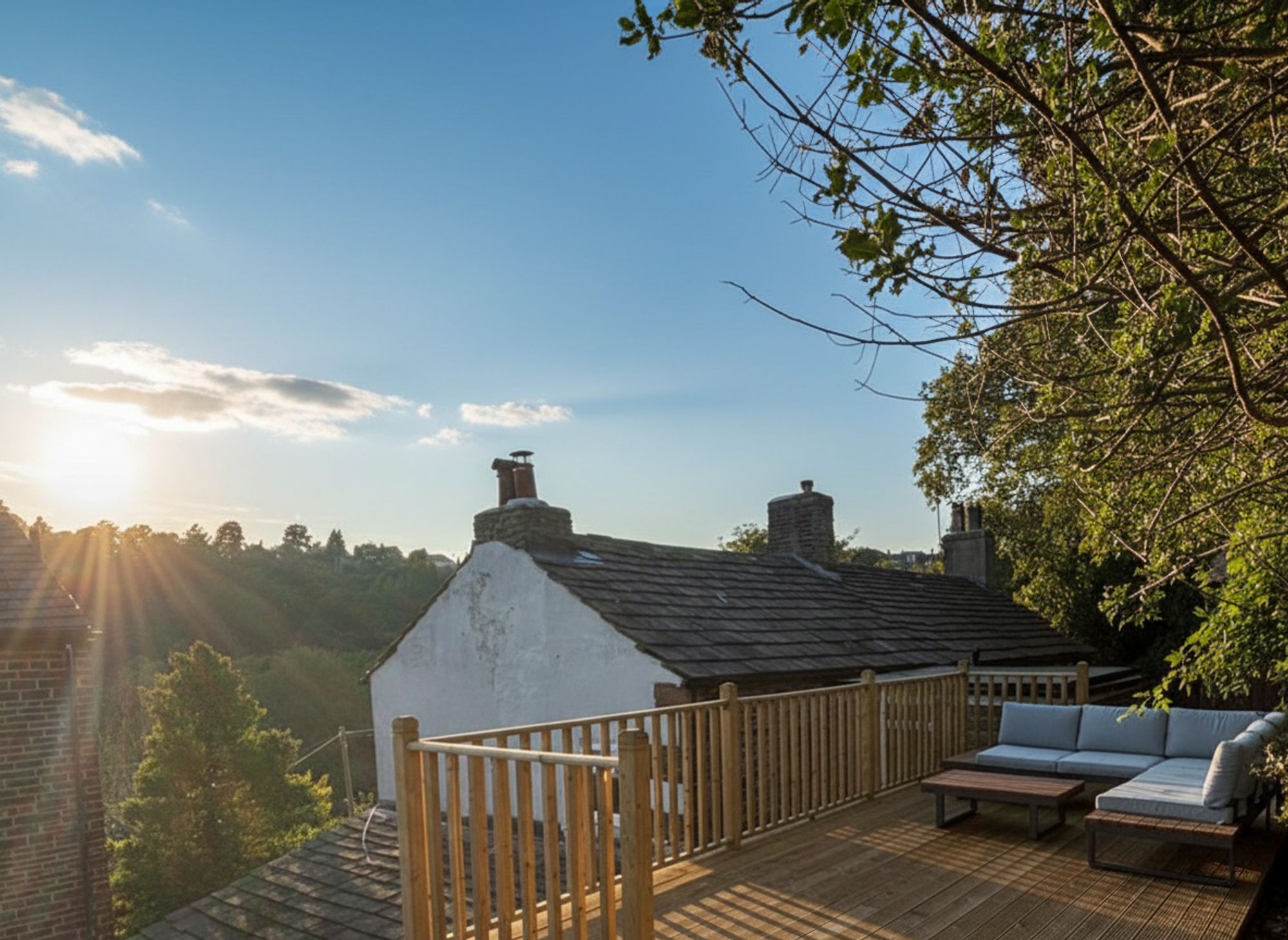 Occupying a truly exceptional plot, the cottage is embraced by beautifully curated gardens to the front and side, each thoughtfully designed to maximise both enjoyment and outlook. To the front, a charming lawned garden is framed by well-stocked flower and shrub borders, creating a quintessential cottage setting that is as picturesque as it is welcoming. To the side, an outstanding elevated garden, accessed via an outhouse has been extensively re-designed by the current owners to fully capture the spectacular surrounding views. A generous decked terrace provides the perfect setting for summer barbecues and alfresco dining, offering an idyllic space to entertain or unwind against a breathtaking backdrop. A pathway gently leads to a further seating area, perfectly positioned to take in panoramic views across the valley, creating a truly special vantage point to relax and appreciate the beauty of the landscape.
