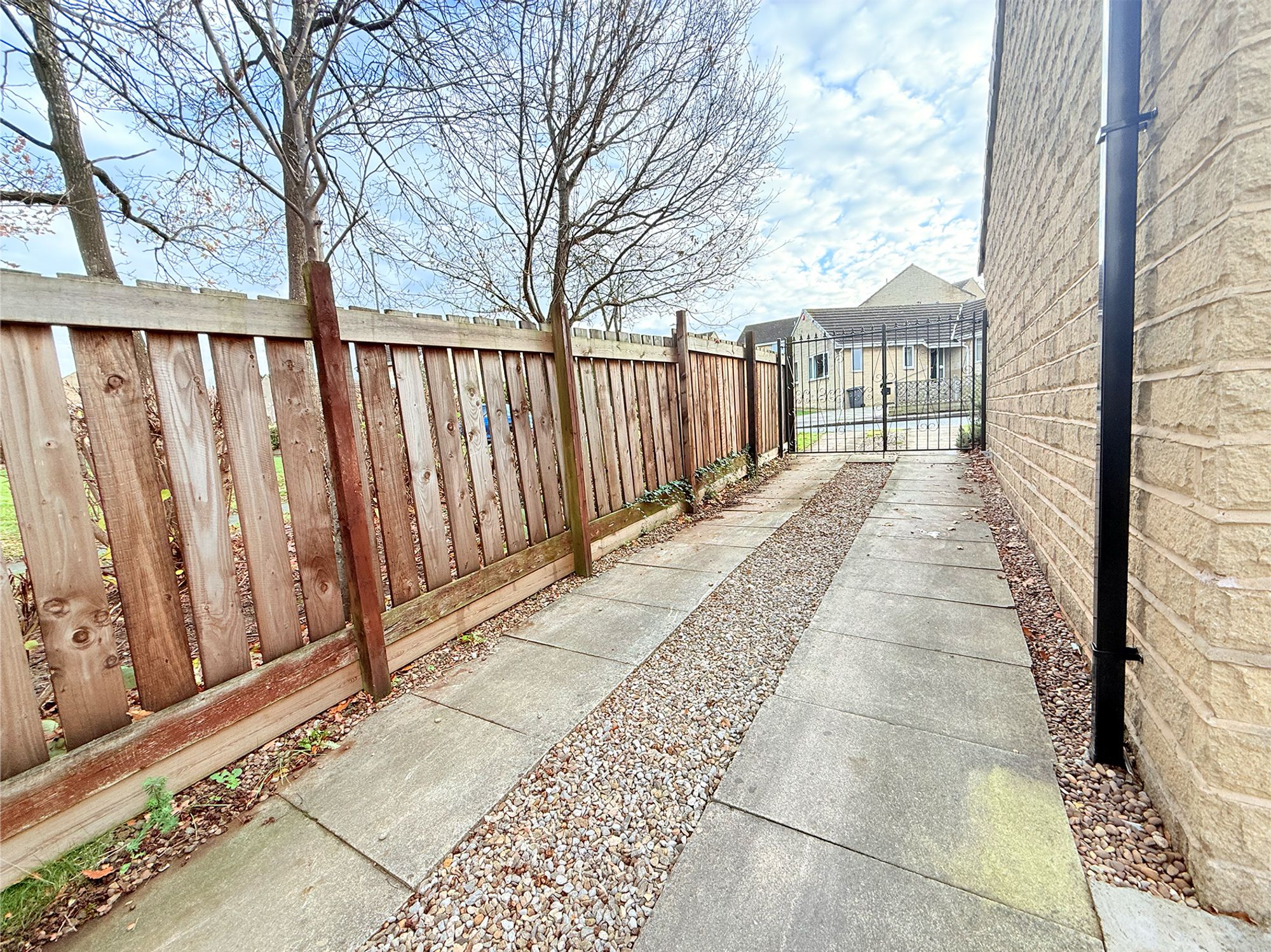 Approaching the property, you are welcomed by a manicured front lawn bordered by well-maintained flower beds. A stone-flagged walkway leads directly to the front door, creating an attractive and inviting first impression.