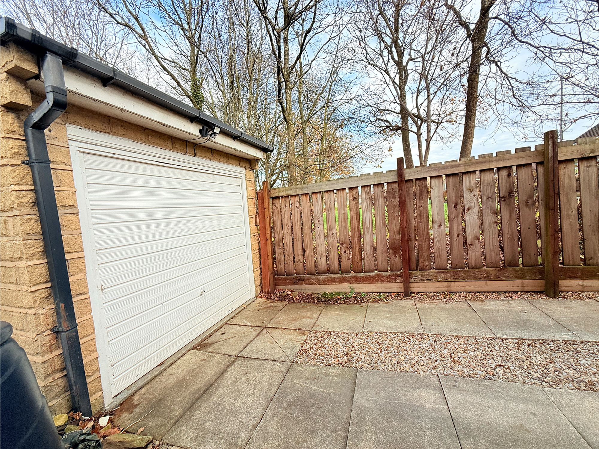 Driveway: 2 spaces - Running down the side of the property, a stone-flagged driveway leads to the detached garage and provides off-street parking for two cars. The driveway is secured by wrought-iron gates.