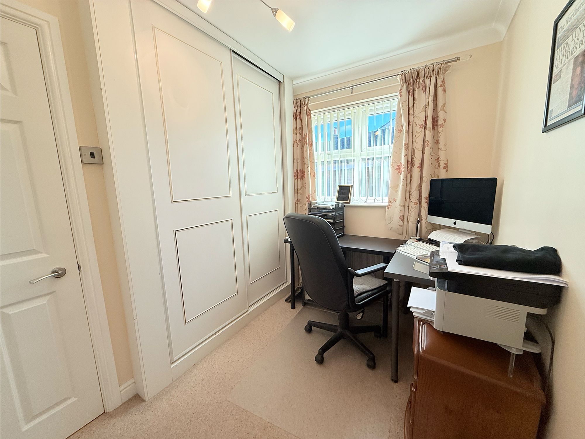 Positioned to the rear of the property and enjoying pleasant garden views, this well-proportioned double bedroom is finished in neutral décor and features floor-to-ceiling sliding wardrobes. There is ample space for additional freestanding furniture, making it a comfortable and versatile room.