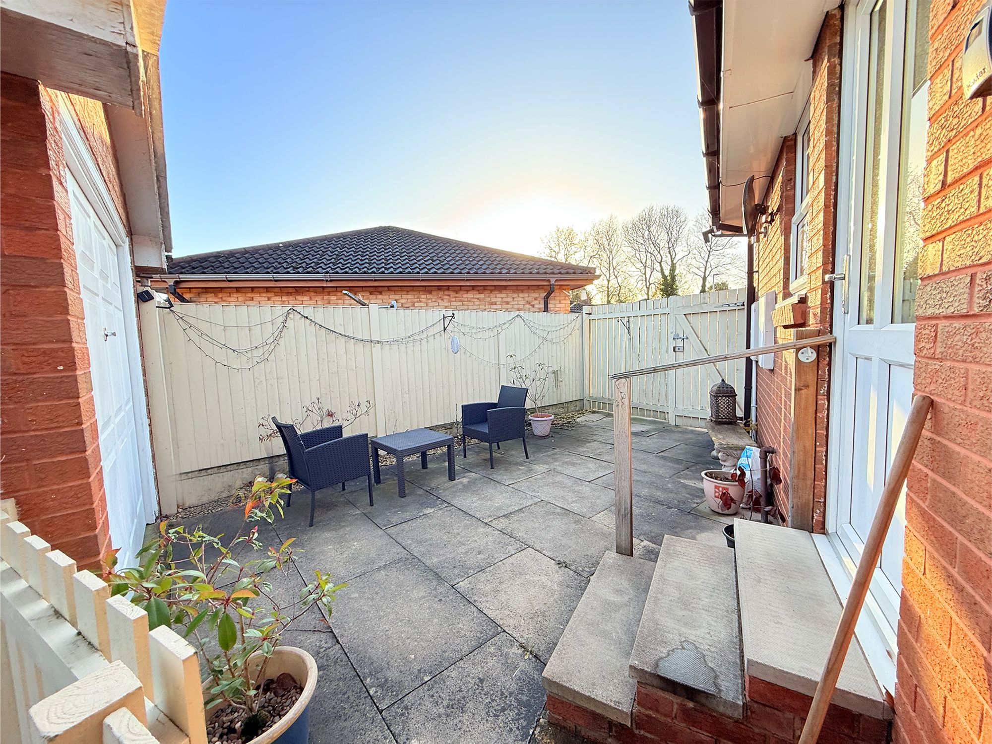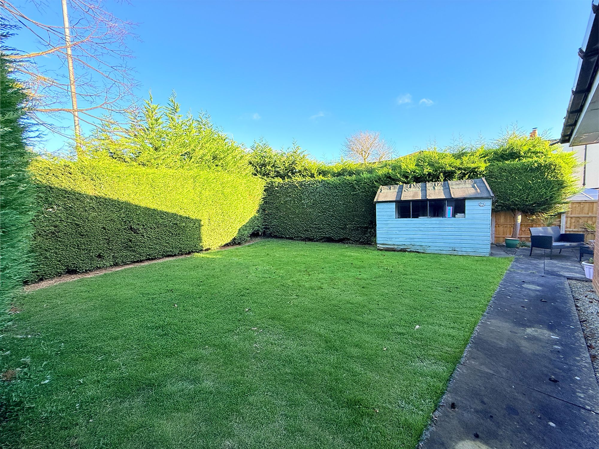 The garden offers a beautiful, private retreat, wrapping from the side round to the rear so you can follow the sun throughout the day. From the kitchen, a door opens onto a stone-flagged patio, enclosed by wooden fencing with a double gate. This versatile area is currently used for seating but could also serve as additional parking, with direct access through to the detached garage.A further gate leads to the rear section of the garden, where you’ll find another stone-flagged patio, ideal for alfresco dining and socialising. Beyond sits a double shed and a well-manicured lawn, bordered by mature hedging for a secluded, green outlook.