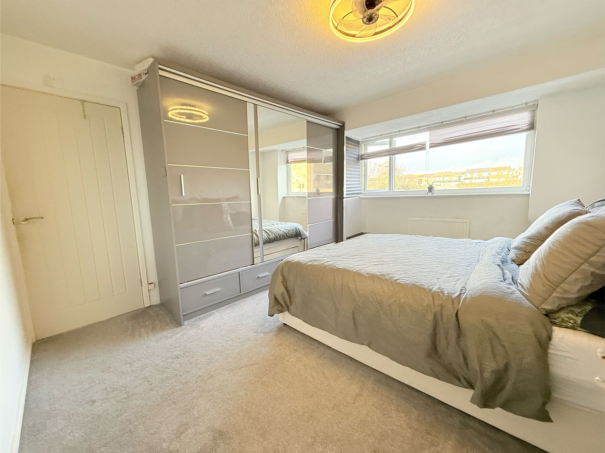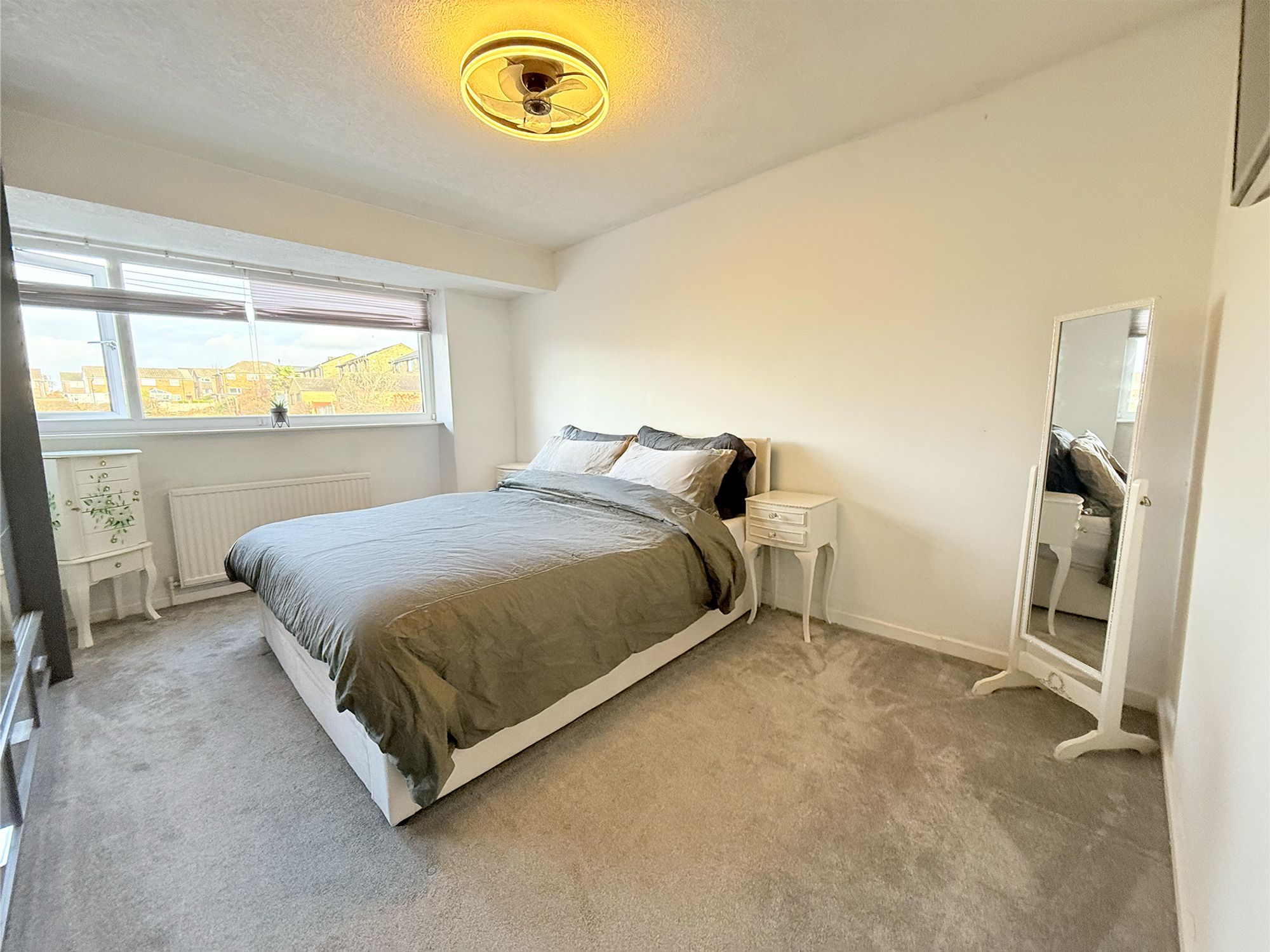 An exceptionally spacious double bedroom located at the front of the property, offering ample room for a super king-size bed and a range of freestanding furniture. Finished with plush carpeting, the room is flooded with natural light courtesy of the large bay window, creating a bright and inviting space to unwind.