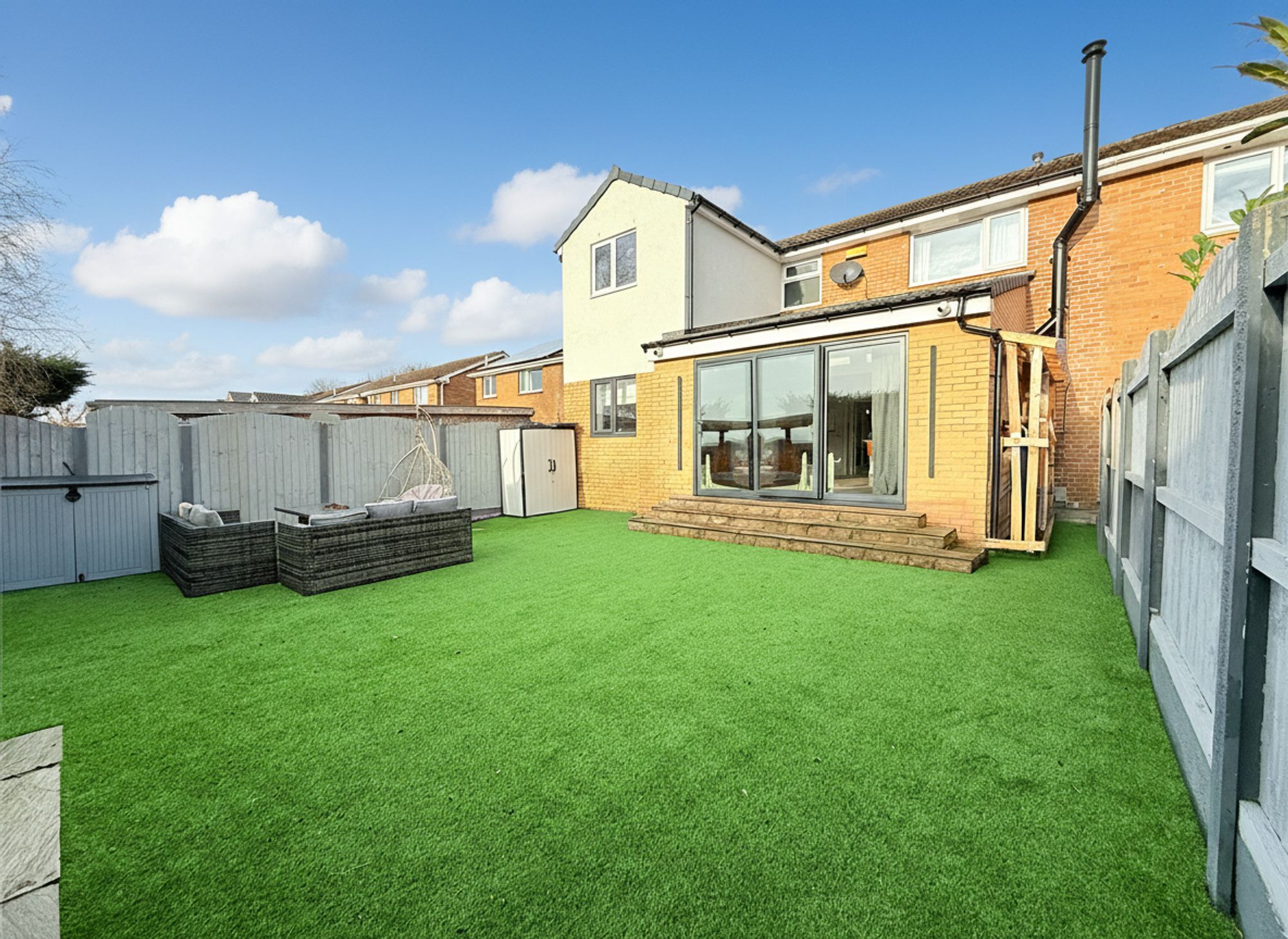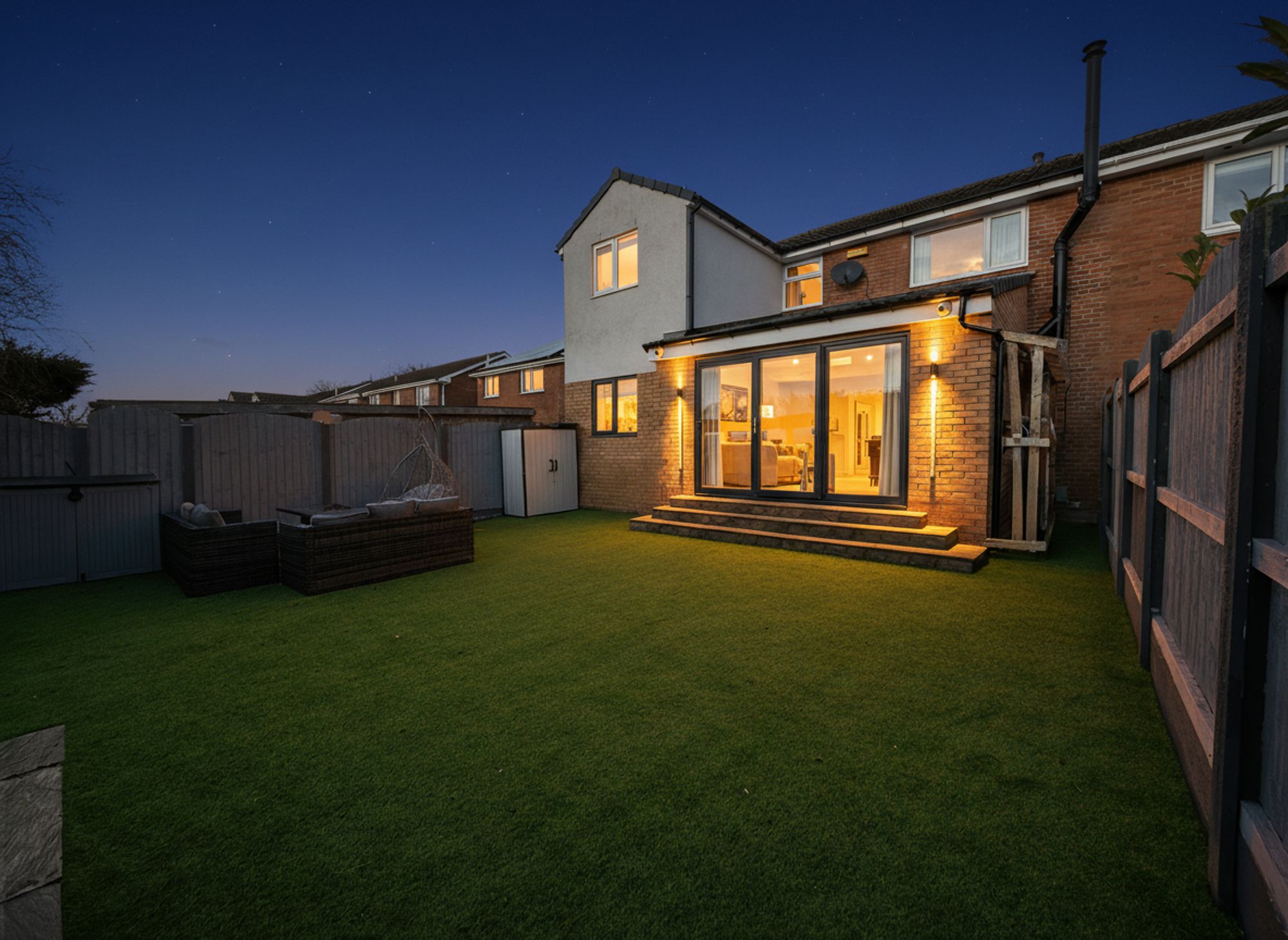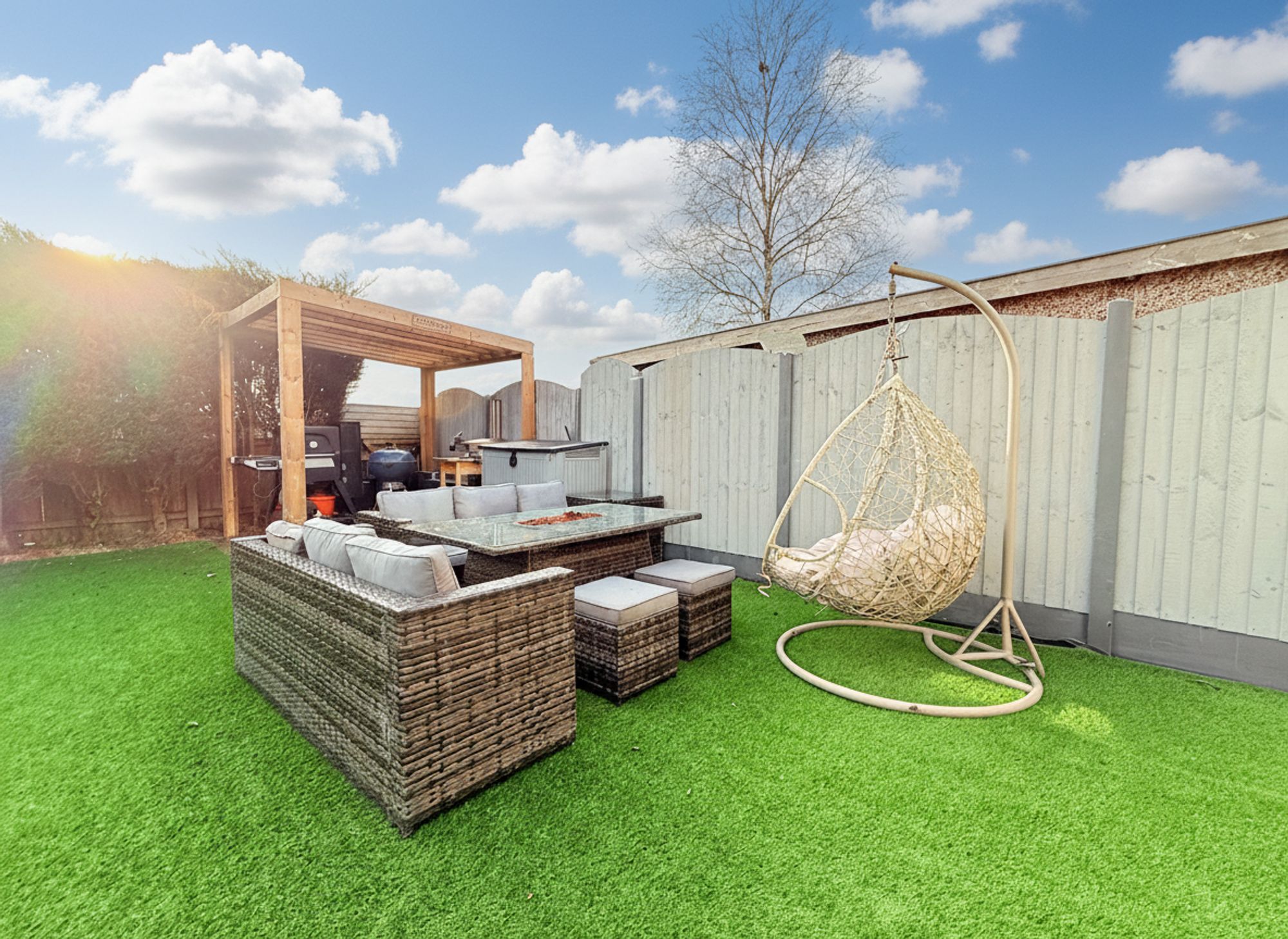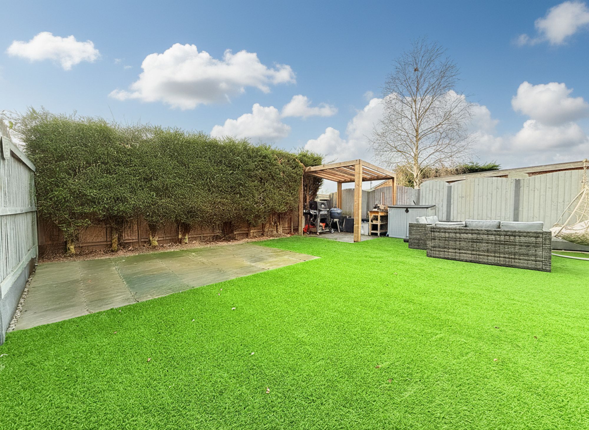 Accessed via bi-folding doors from the kitchen, this private and fully enclosed rear garden has been designed for low-maintenance living and outdoor enjoyment. The garden features an K9 AstroTurf lawn and two stone-flagged patio areas to the rear, creating an ideal setting for al fresco dining and relaxing during the warmer months. The space benefits from outdoor electrics and a water supply, while a pergola is available by separate negotiation, ideal for BBQ's and outdoor dining. Fully enclosed, ideal for children and pets, the garden also includes a useful built-in wood store located down the side of the house.