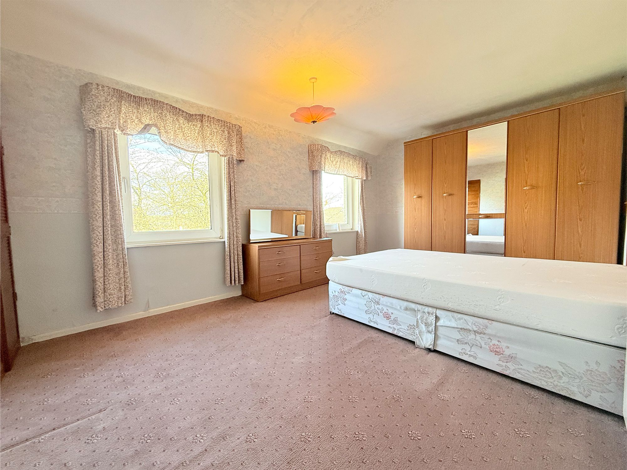 A truly impressive principal bedroom located at the front of the property, spanning the full width of the home. This exceptionally spacious room easily accommodates a super king-size bed along with additional freestanding furniture. It also benefits from a useful storage cupboard and offers the potential to be reconfigured into two separate bedrooms if desired.
