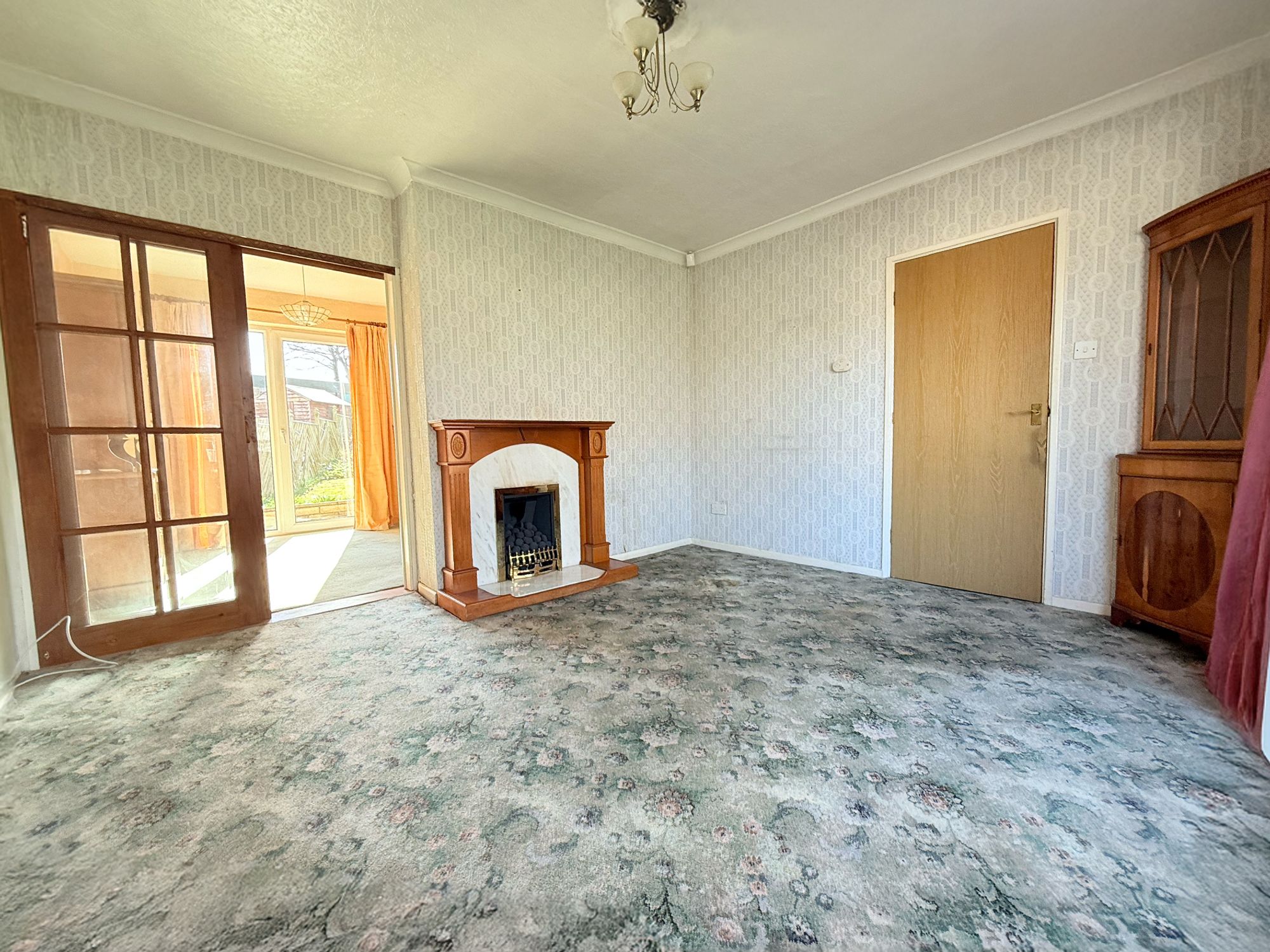 Located to the front of the property, this spacious living room is filled with natural light thanks to the attractive bay window. The room offers plenty of space for a variety of family seating arrangements, creating a comfortable and relaxing environment. A charming coal-effect gas fire provides a cosy focal point, while double glass doors lead through to the kitchen diner, allowing for a lovely flow of space.
