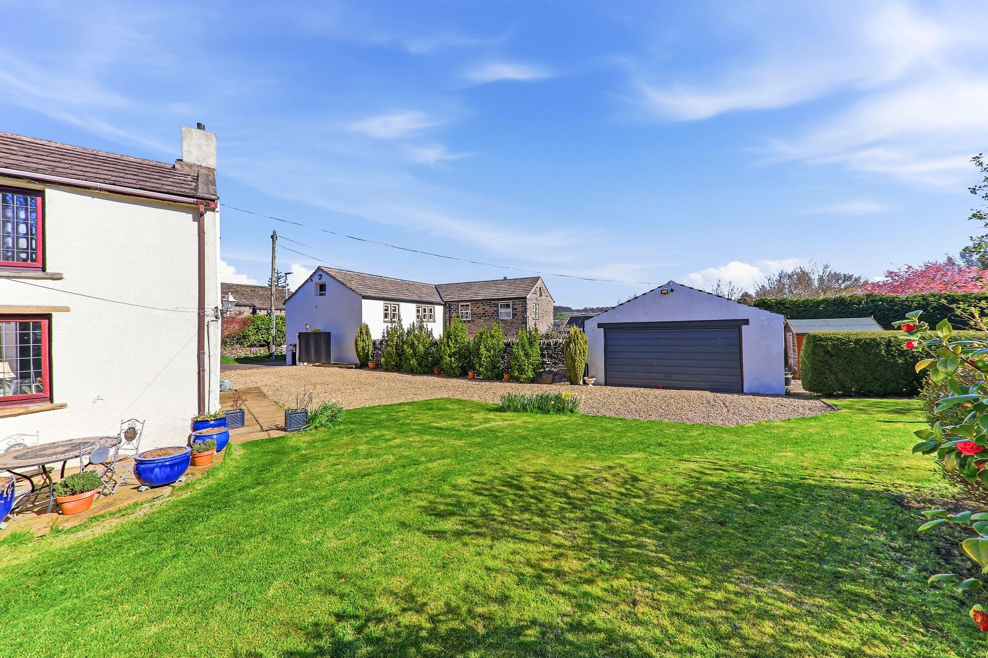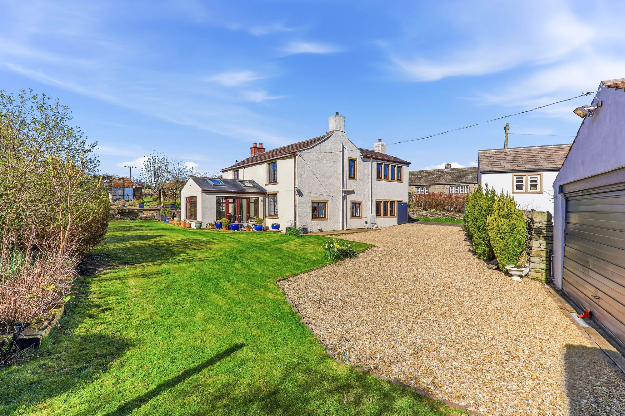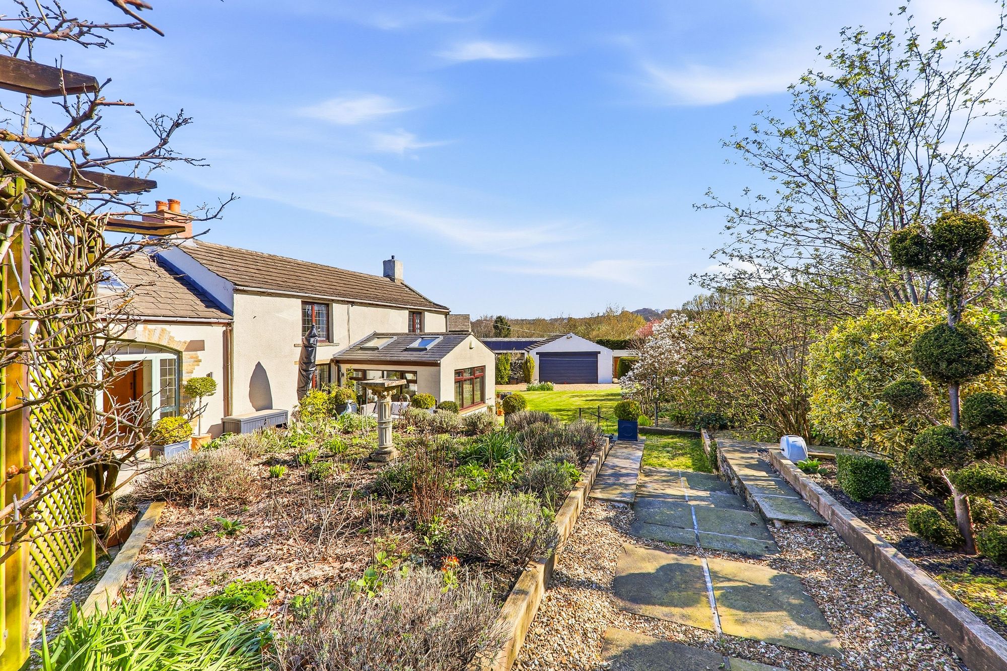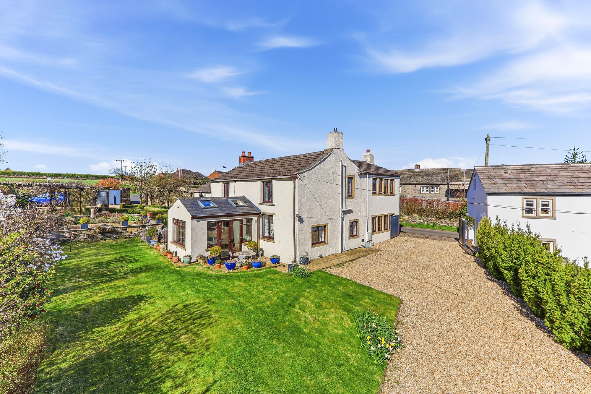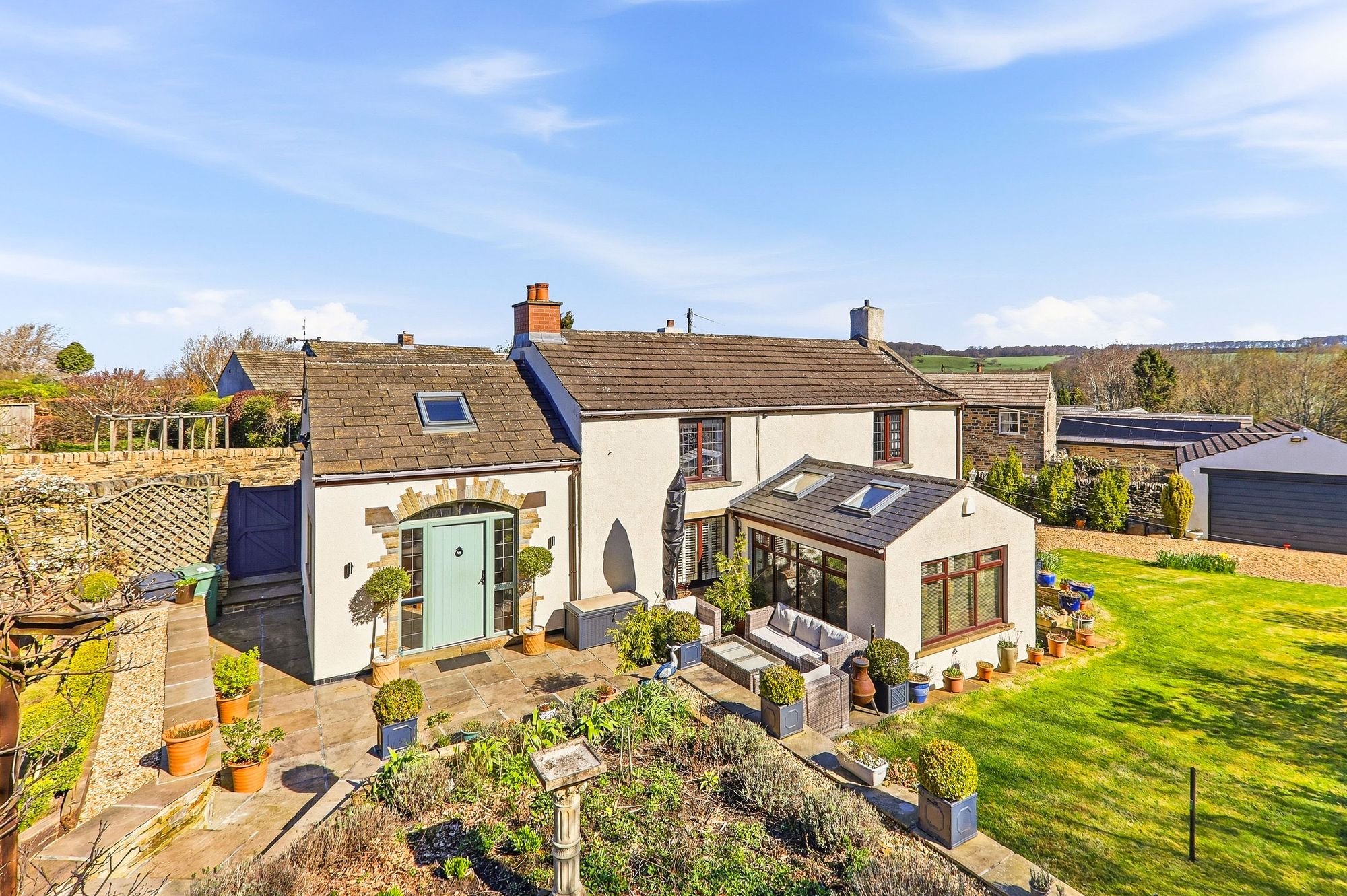 This enchanting farmhouse cottage enjoys a prestigious and highly sought after setting along Town End Lane/Pinfold Lane. Cherished and lovingly cared for and offered to the market for the first time in 44 years, the home beautifully preserves its original character while gently embracing modern comforts, resulting in a truly timeless and captivating residence. Nestled amidst breath-taking rolling countryside on the outskirts of Huddersfield, the property offers a peaceful, almost storybook lifestyle, surrounded by open fields and far-reaching views. Set along a quiet country lane amongst a collection of equally charming homes, Pinfold Farm perfectly balances rural tranquillity with convenient access to local amenities and transport links. The property is embraced by generous, exquisitely maintained gardens, with a magical woodland backdrop providing a wonderful sense of privacy and seclusion. Lovingly tended over the years, the grounds offer a serene haven for relaxation and outdoor enjoyment. Two gated driveways provide ample parking, complemented by a detached double garage. Inside, a wealth of original features tell the story of the home’s heritage, with traditional décor thoughtfully and sympathetically curated to honour its past. Carefully extended over time, the property offers spacious and versatile accommodation suited to modern family life, all while retaining the warmth, charm and authenticity that make this home truly extraordinary.
