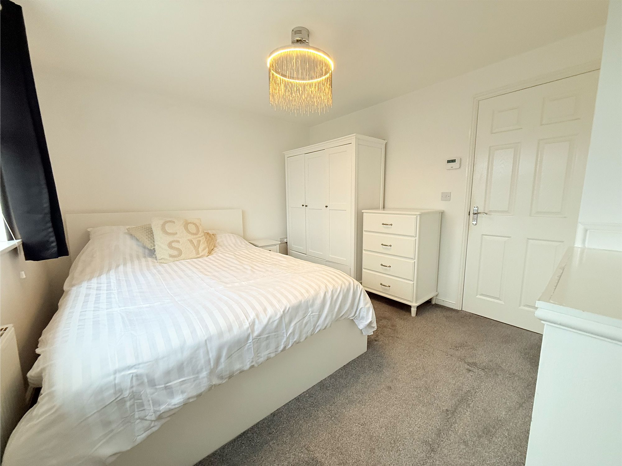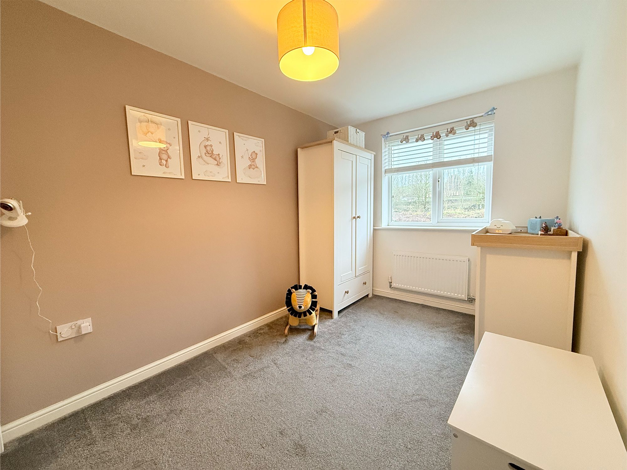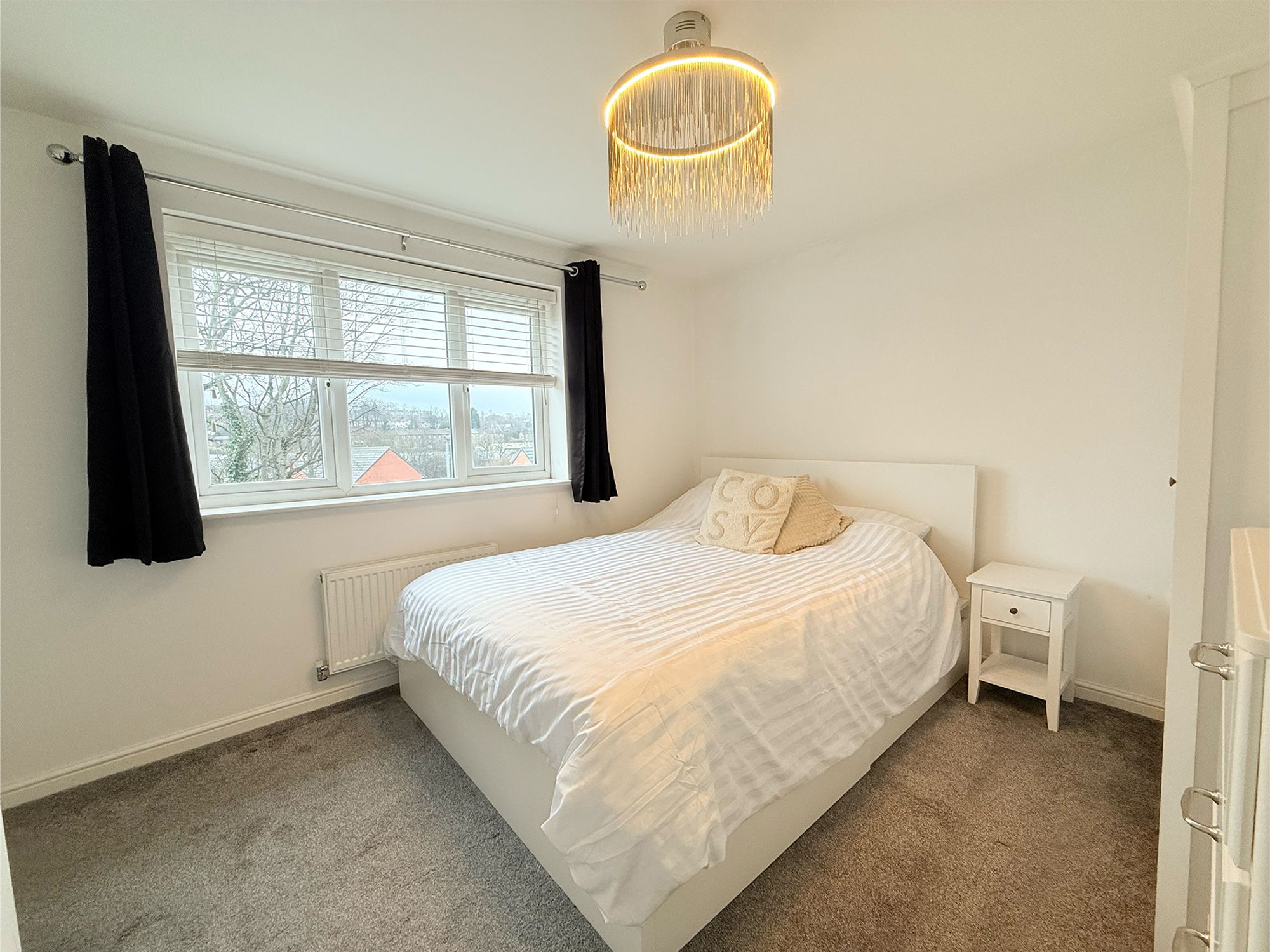Bedroom Two is a spacious double bedroom located to the rear of the property, enjoying pleasant views over the rear garden. Decorated in soft, neutral tones and finished with plush carpeting, the room feels calm and comfortable. There is ample space for a double bed along with additional freestanding furniture, making it a versatile room suitable for a range of needs.
