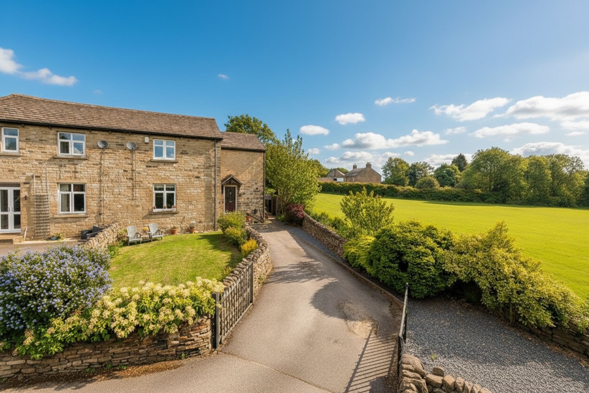 Nestled in a quiet and highly desirable position within a beautiful development of period converted mill properties, this exceptional home enjoys fabulous open-aspect views across neighbouring fields and open countryside. Brimming with charm and character throughout, the property showcases an abundance of original features, including exposed beams, which blend seamlessly with thoughtfully considered modern living spaces. The home benefits from a private driveway with off-road parking and well-maintained, pleasant gardens that take full advantage of the idyllic setting. Surrounded by nature, local wildlife such as owls, rabbits, squirrels and the occasional deer can be spotted in the adjacent field, further enhancing the sense of tranquillity and rural charm. Altogether, this is a truly superb family home, perfectly suited to those seeking a peaceful countryside lifestyle without compromising on comfort, character, accessibility or practicality.
