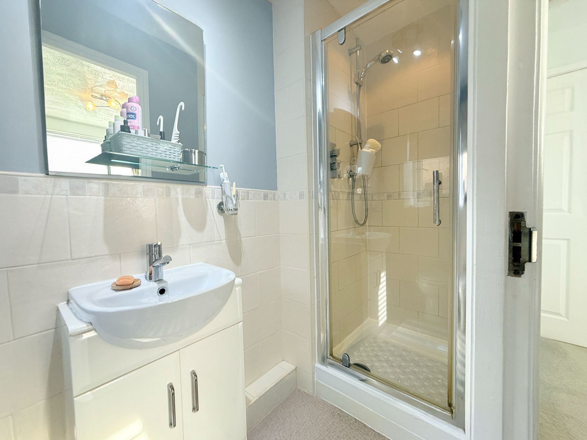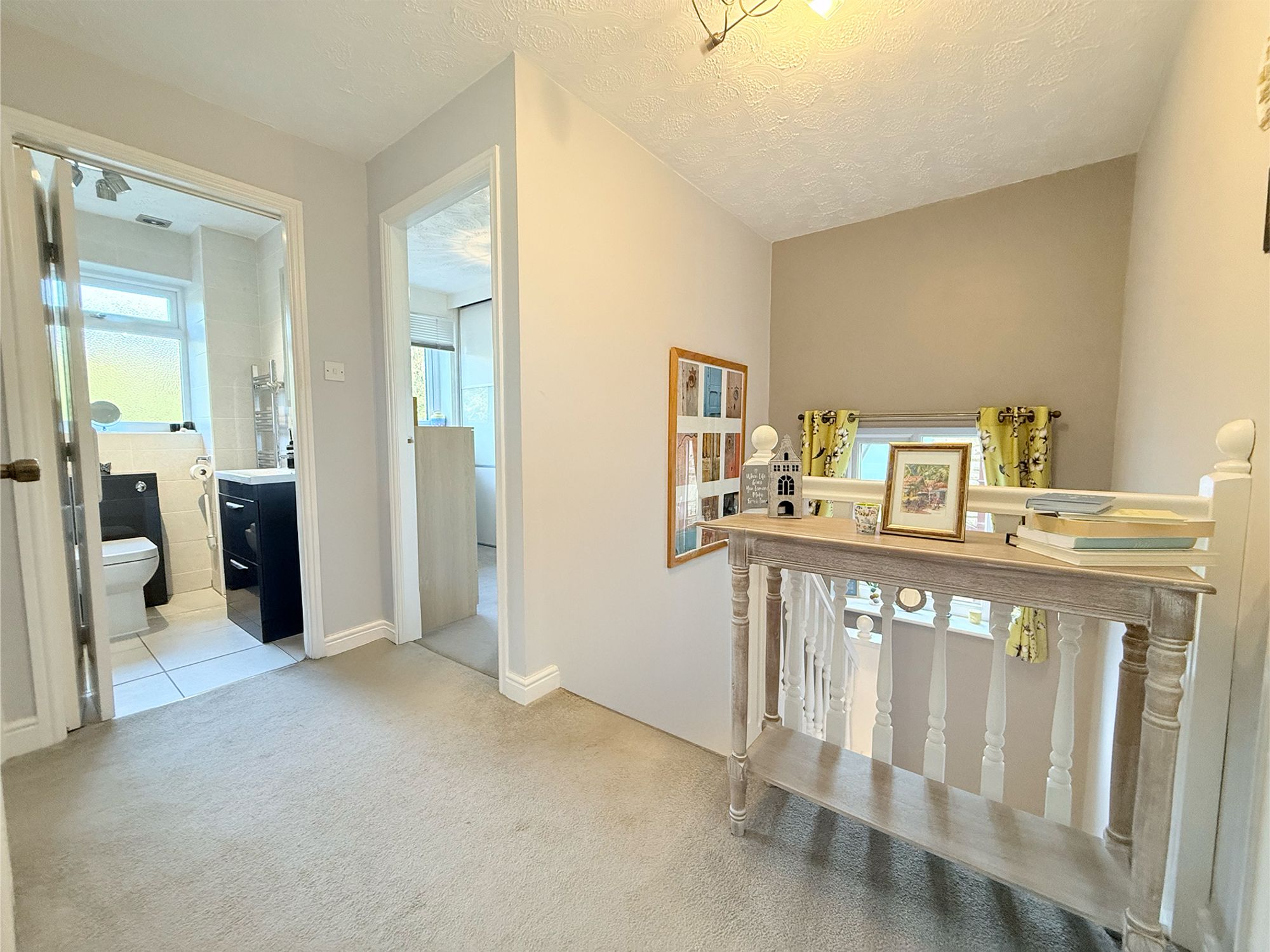 A spacious landing beautifully decorated in soft tones, creating a calm and inviting atmosphere. This space provides access to all bedrooms, the family bathroom and the loft via a convenient loft hatch with a fitted ladder. The loft is partially boarded and equipped with electrics, offering excellent storage potential. The landing further benefits from a useful storage cupboard, ideal for linens or household essentials.
