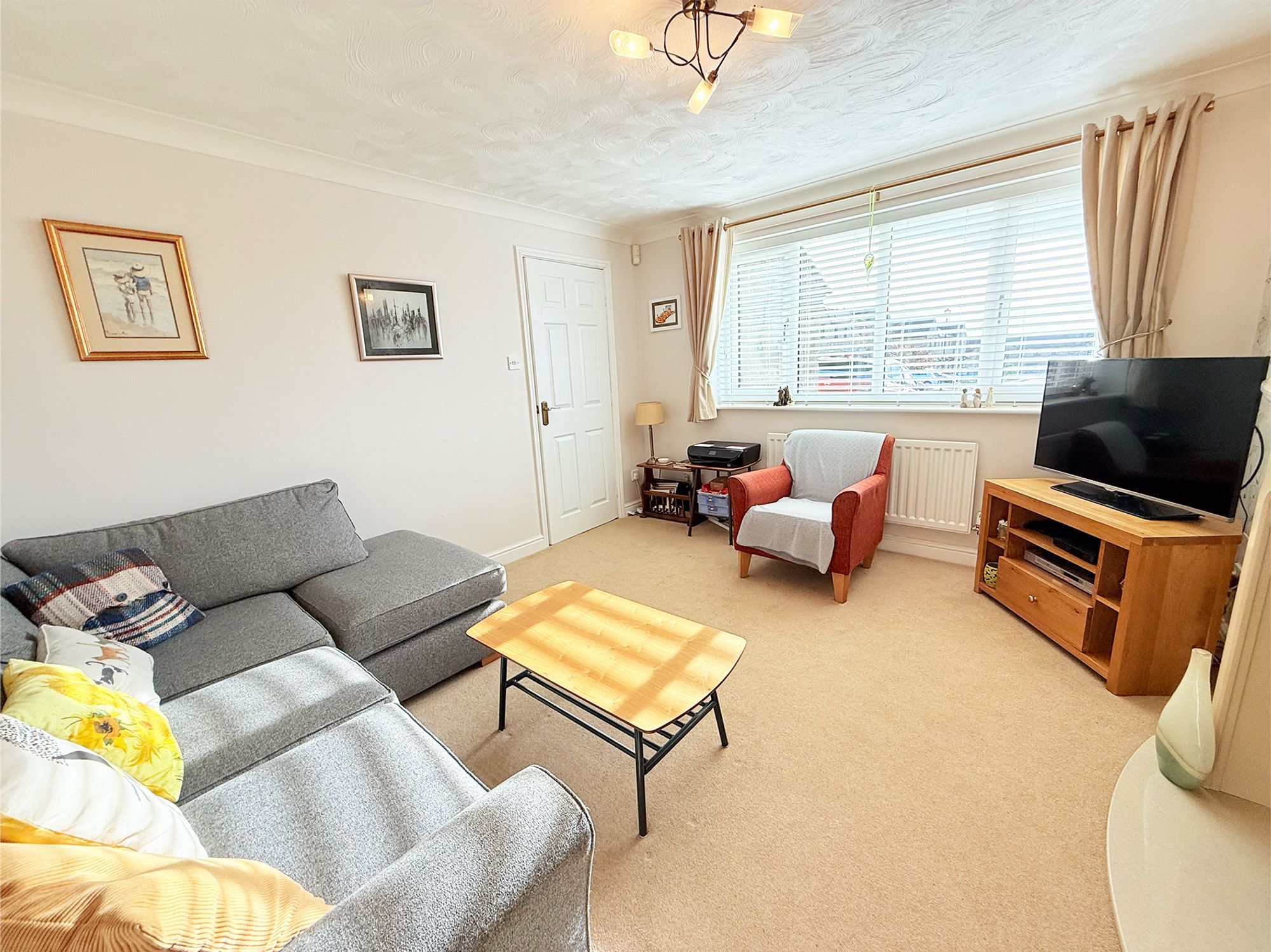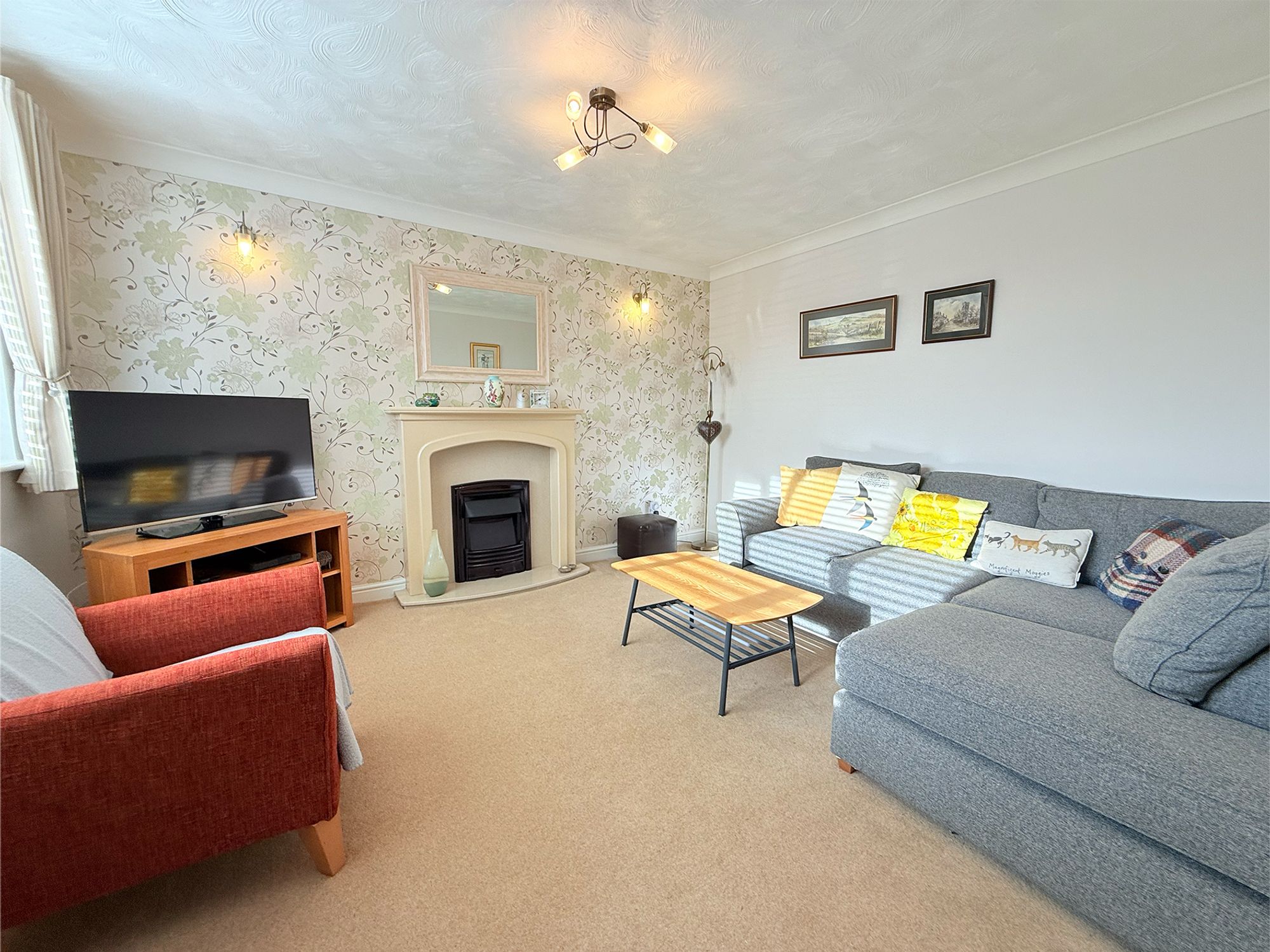 Located to the front of the property, this well-proportioned lounge features a large window that allows natural light to flood the space, creating a bright and welcoming atmosphere. Decorated in neutral tones with a stylish wallpapered feature wall, the room is centred around a neutral fireplace surround housing an electric coal-effect fire. Offering ample space for a variety of family seating arrangements, this room provides both comfort and versatility, perfect for relaxation or entertaining.
