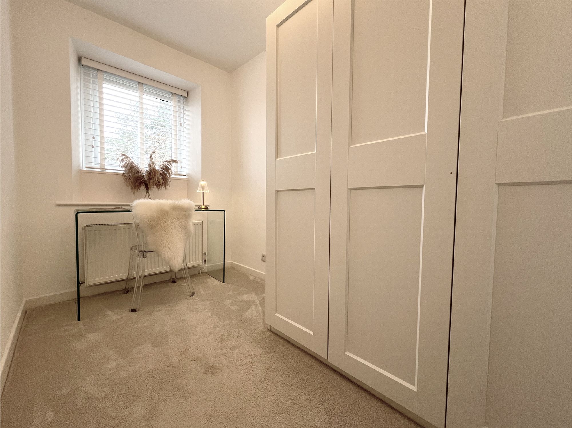 Another good-sized bedroom, presented in neutral tones to create a light and restful feel. The room offers ample space for free-standing furniture, providing flexibility in layout and use.