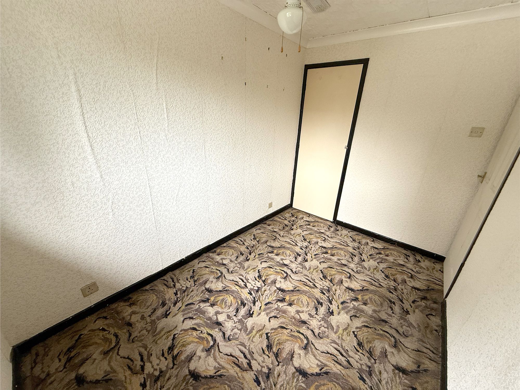 Situated at the rear of the property, this versatile room can serve as a spacious single bedroom. Ideal for use as a home office, children’s bedroom, or guest room, it features a built-in storage cupboard for added practicality. Decorated in neutral wallpaper with a contrasting patterned carpet, the space offers an adaptable setting to suit a variety of needs.
