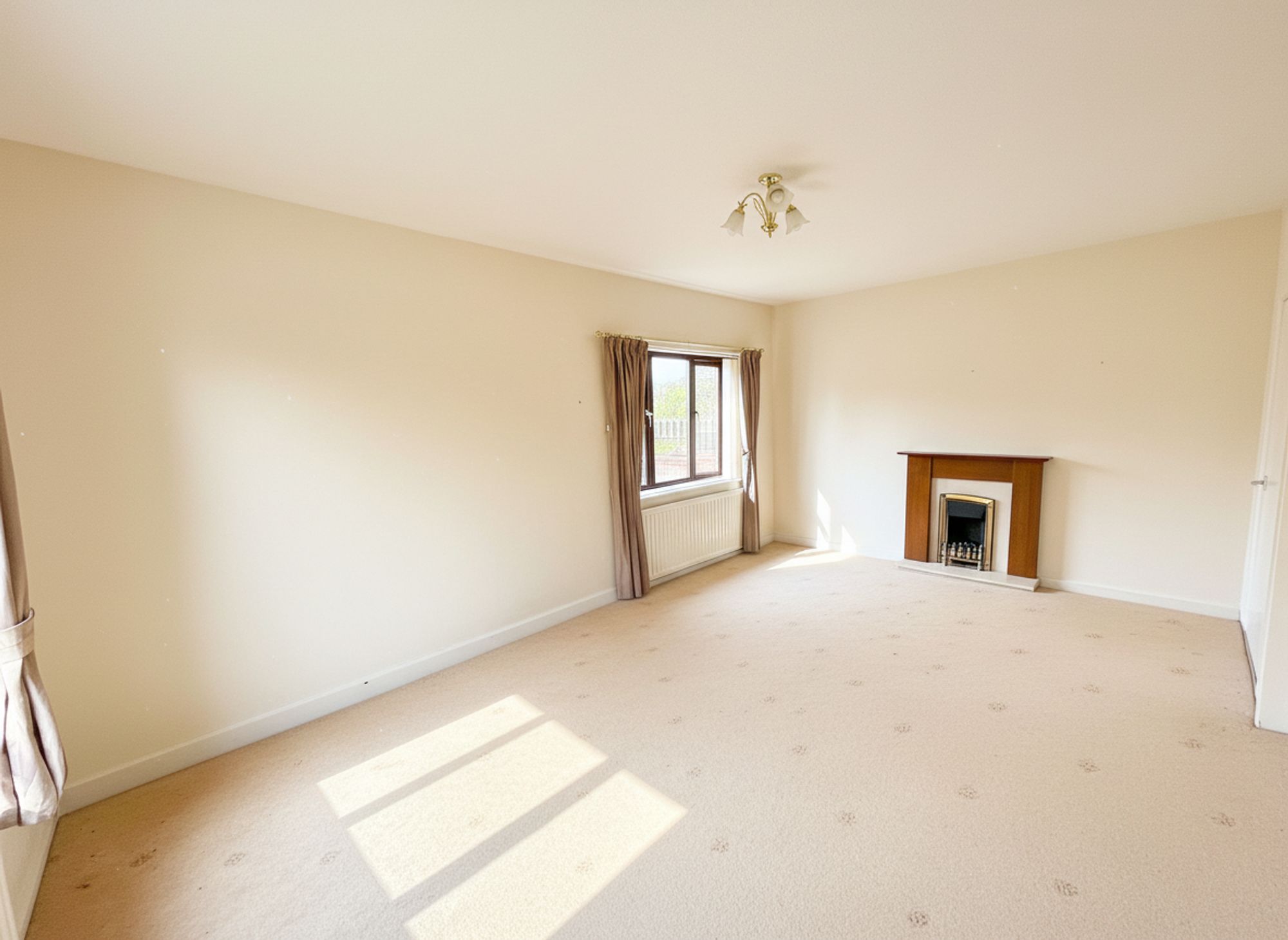 A large and bright living room positioned at the front of the property, enhanced by dual-aspect windows that allow an abundance of natural light to flood the space. The room offers ample space for a variety of family seating arrangements as well as a dining table. A coal-effect gas fire set within a granite and wooden surround adds a warm and inviting focal point. The lounge also provides direct access to the kitchen.