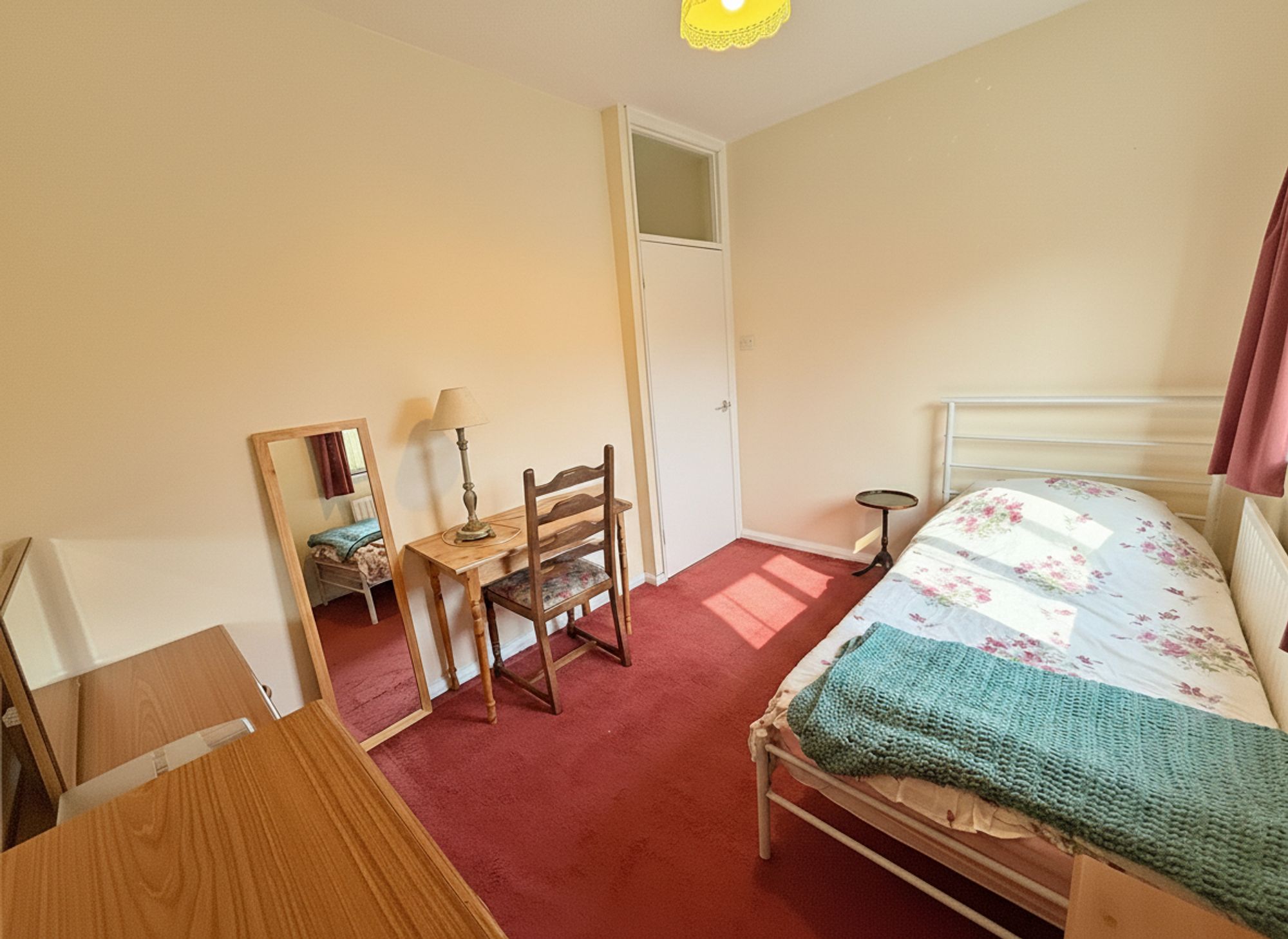 Located at the rear of the property, this generously bedroom offers the flexibility to accommodate a double bed if desired or be an extremely spacious single. The room provides ample space for freestanding furniture and is decorated in neutral tones complemented by contrasting carpets.
