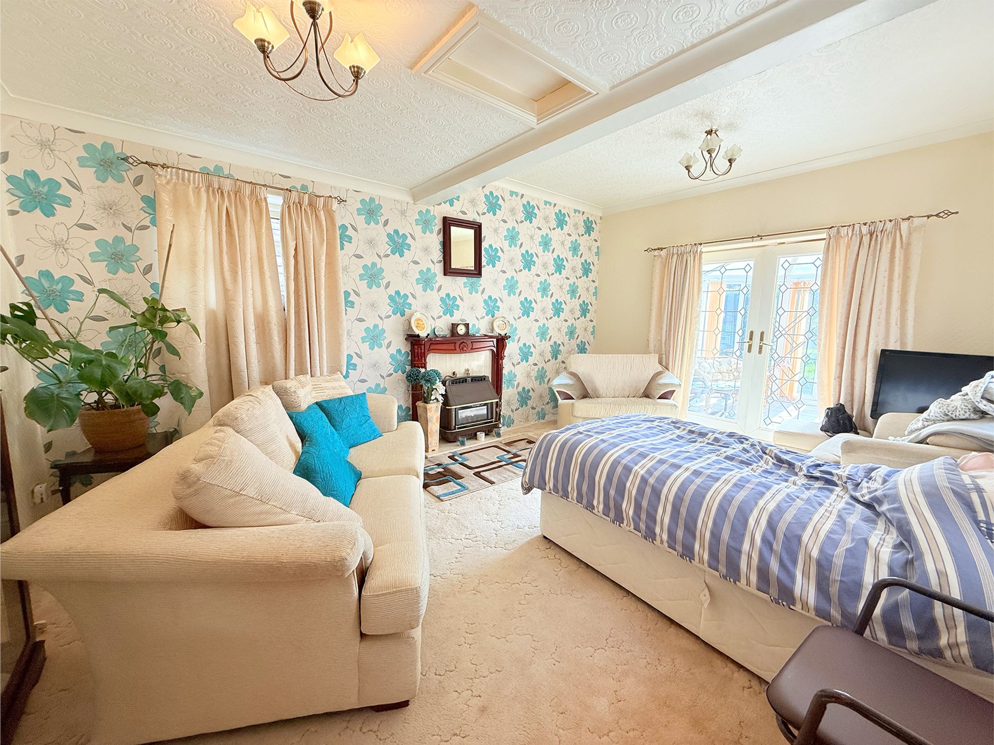 A generously sized lounge positioned at the rear of the property, offering direct access to the conservatory. The room is centred around a gas fire with an ornate wooden surround, adding warmth and character. Dual-aspect windows flood the space with natural light, while the layout provides ample room for a variety of family seating arrangements. A loft hatch also offers convenient access to the loft space. Currently being used as a large ground-floor bedroom, this versatile room provides excellent flexibility to suit a range of lifestyle needs.