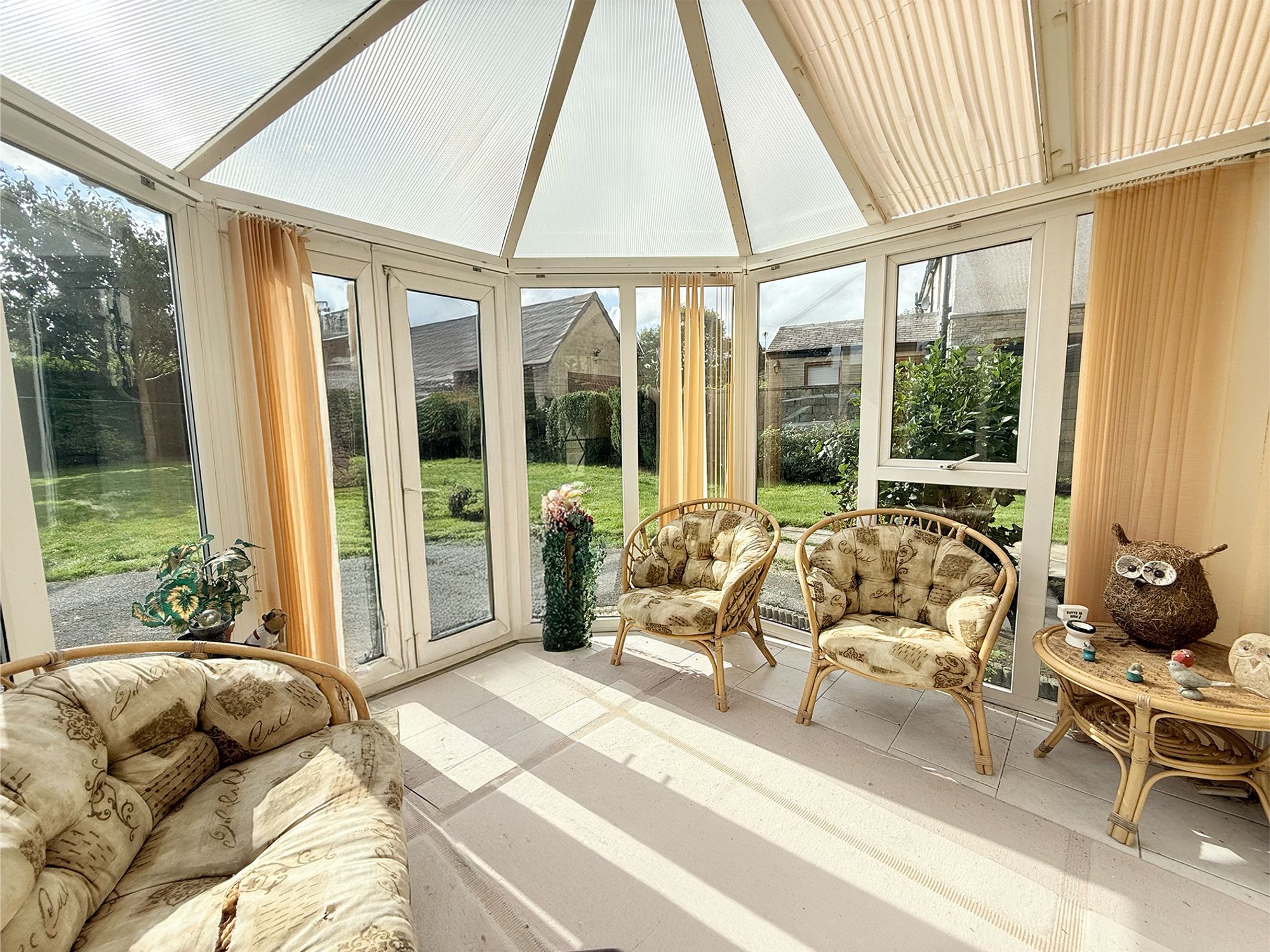 A bright and airy conservatory with windows to three sides, creating a light-filled space that can be enjoyed year-round. French doors open directly onto the garden, offering delightful views and a seamless connection to the outdoor space.