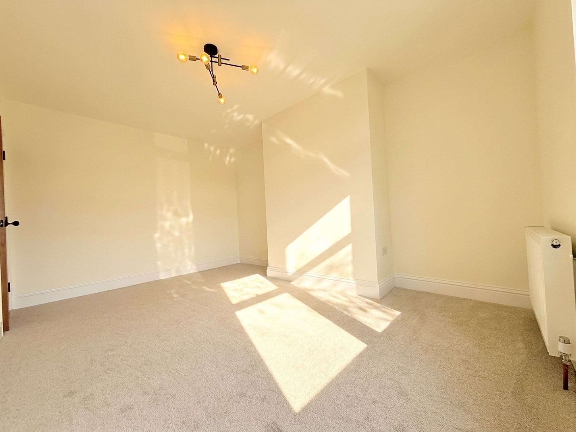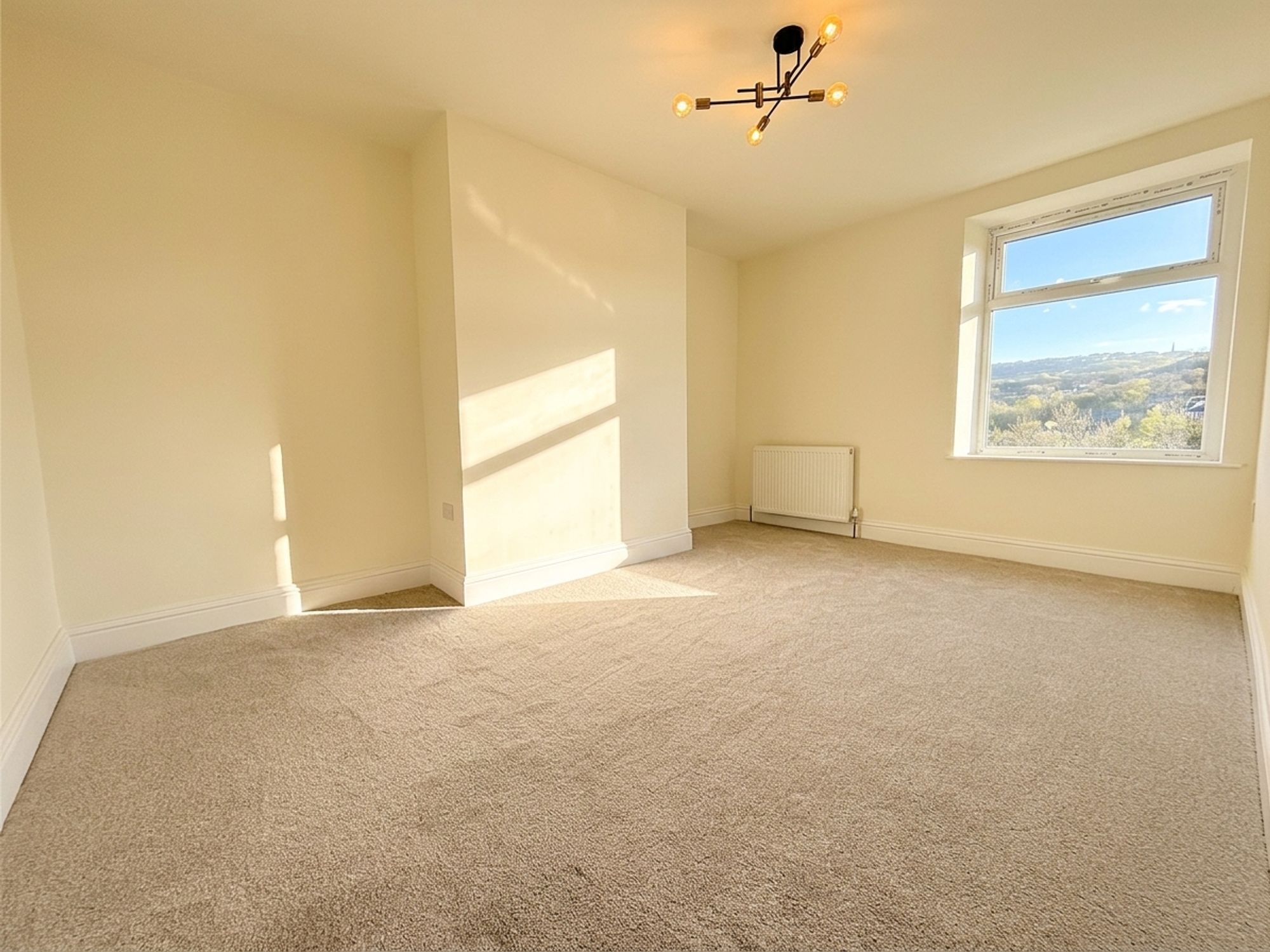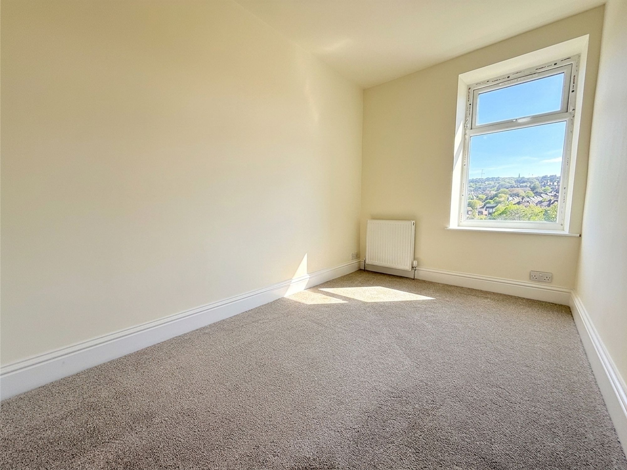 Located to the rear, this spacious principal bedroom enjoys far-reaching views. Neutrally decorated with plush carpeting, it offers ample space for a super king-size bed and a range of freestanding furniture.