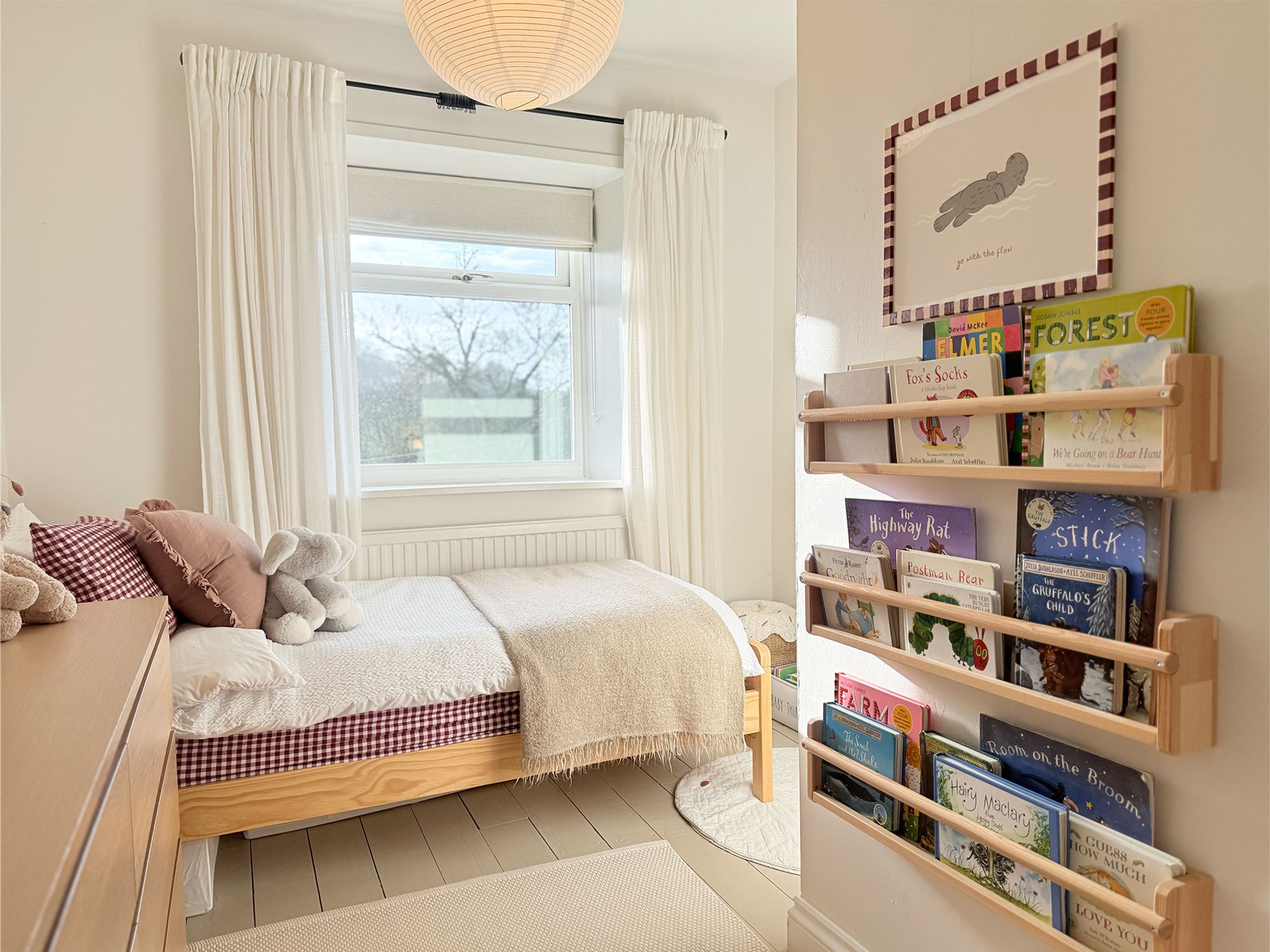 Located to the rear of the property and currently used as a home office, this well-presented single bedroom is beautifully decorated in neutral tones. The room is highly versatile and would be ideal for use as a nursery, dressing room, or continued home office. A Velux window allows natural light to fill the space, while built-in eaves storage provides practical and discreet storage solutions.