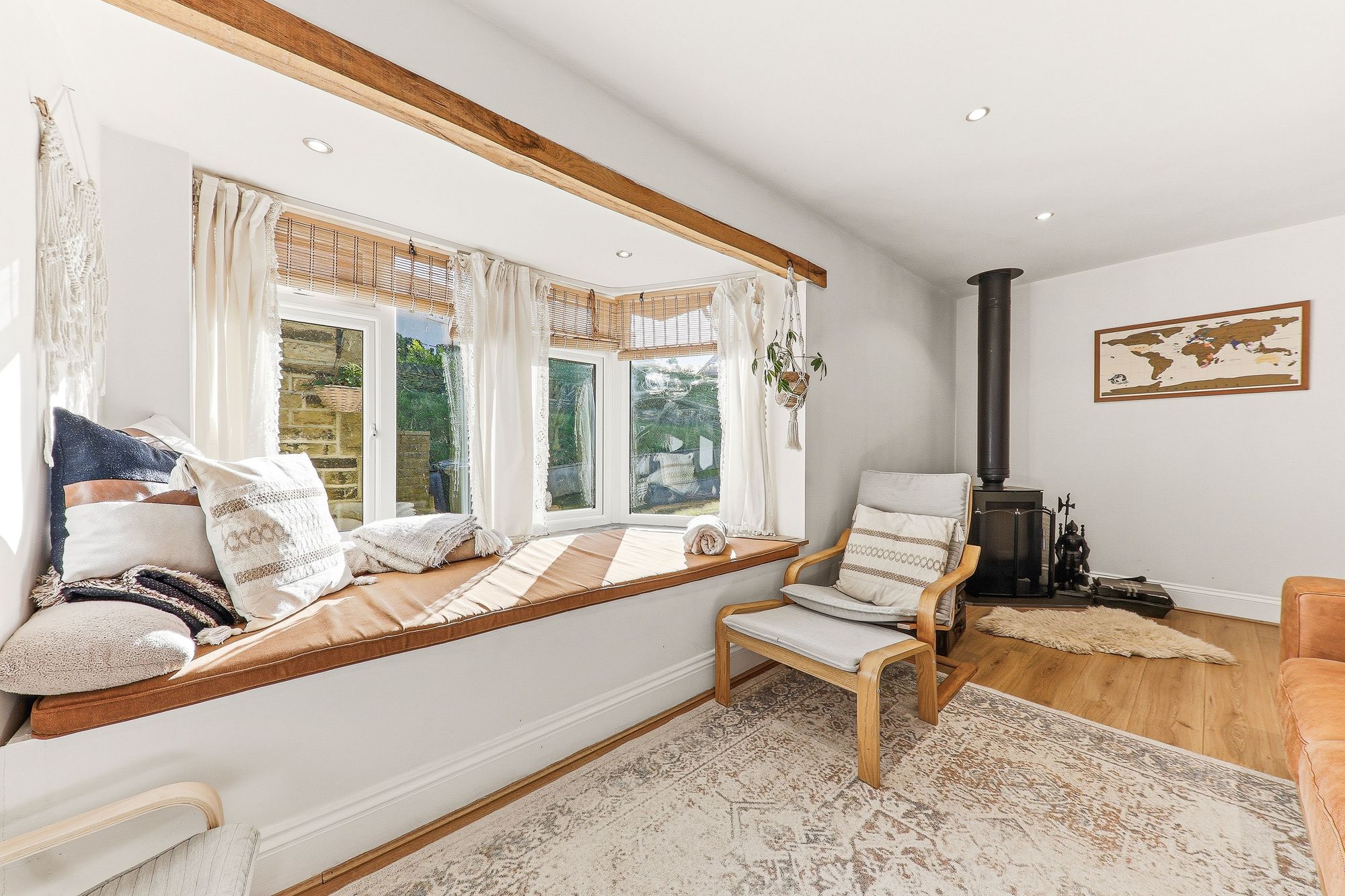 An extremely versatile room, adaptable to suit the needs of the purchaser, whether as an additional reception room or bedroom. Flooded with natural light courtesy of the beautiful exposed stone bay window large enough to sit within the space offers a charming spot to relax and enjoy the outlook. A stunning multi-fuel stove creates a warm and inviting ambience, while wood-effect laminate flooring completes this characterful and practical room.