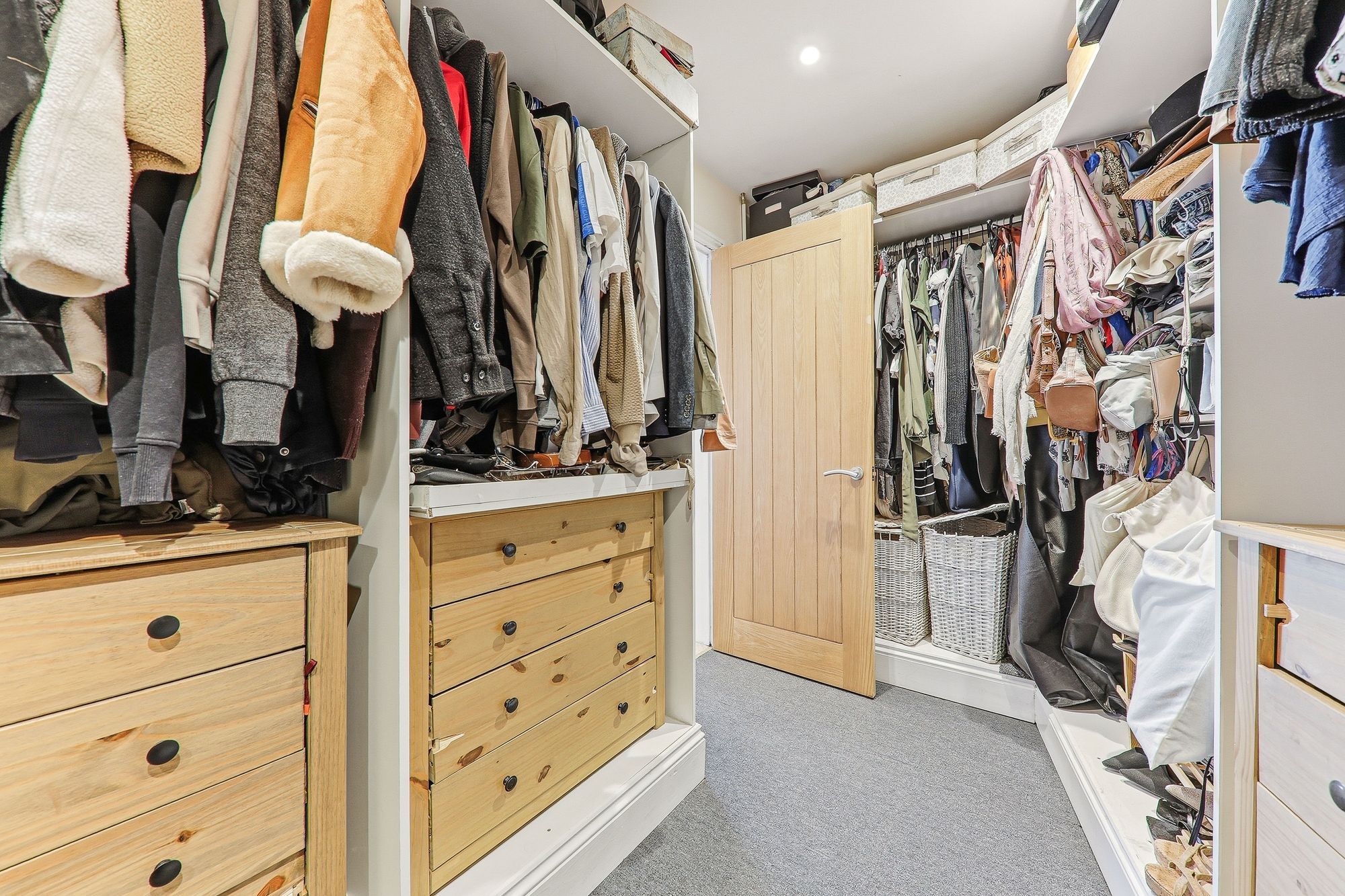 A fantastic sized walk-in dressing room, thoughtfully arranged to provide excellent storage while creating a luxurious and practical extension to the principal bedroom suite. Access to the en-suite is cleverly concealed behind a beautifully designed mirrored door, adding both style and a touch of intrigue to this elegant space.