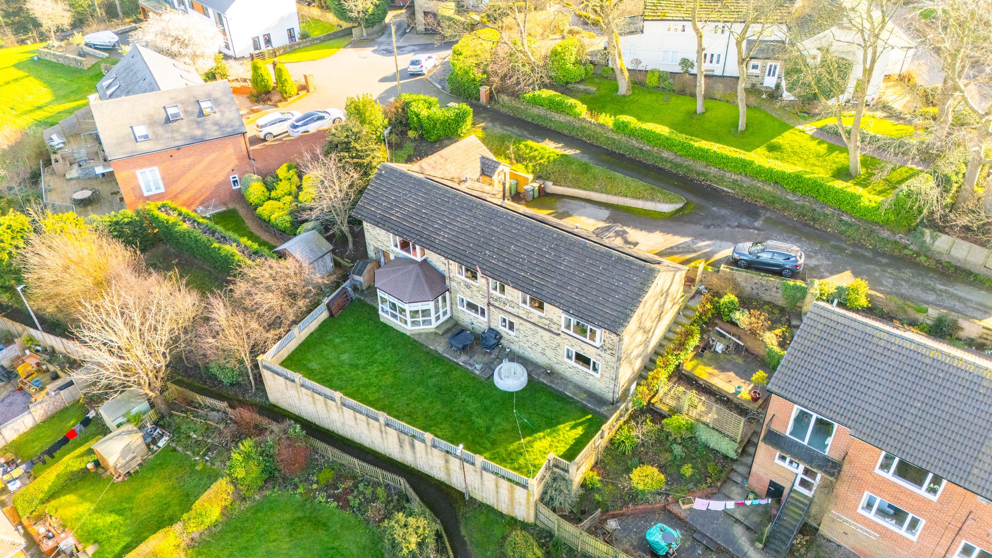 Externally, the property continues to impress with a fantastic sized rear garden offering a wonderful outdoor space to enjoy throughout the seasons. Fully enclosed and predominantly flat, it provides the perfect environment for children and pets to play safely and freely while also offering plenty of room for outdoor entertaining and relaxation. Steps down the side of the house also provide convenient access to the garden, enhancing both practicality and flow. A patio area creates an ideal setting for alfresco dining, summer barbecues, or simply unwinding with a morning coffee. The lush, well-maintained lawn stretches across the garden, adding to the sense of space and providing a beautiful green outlook. Altogether, the outdoor space is both practical and inviting, making it a superb extension of the home and a perfect place to enjoy time with family and friends.