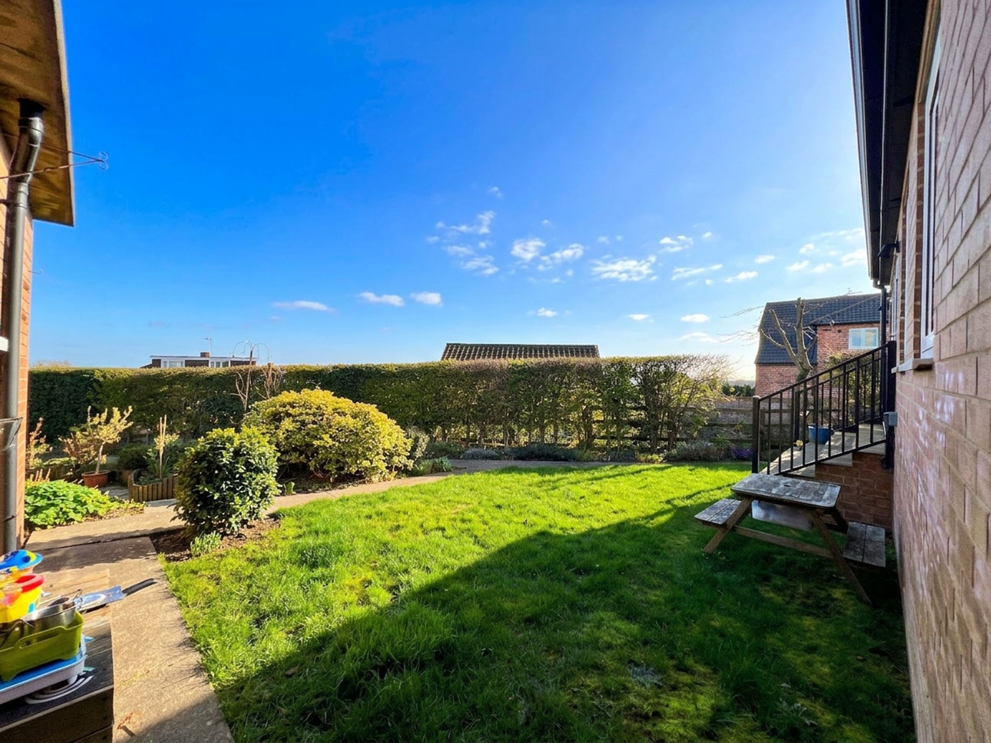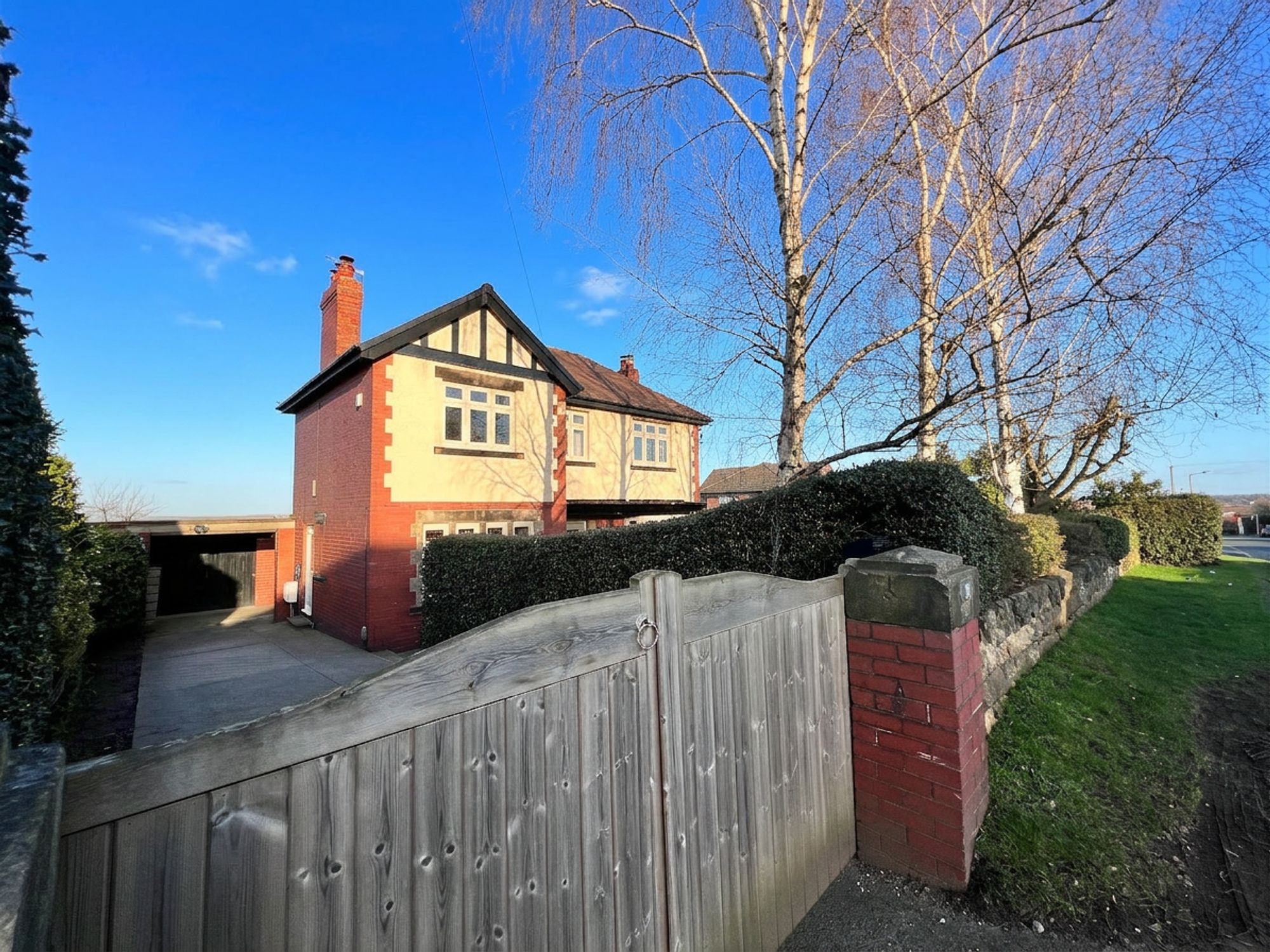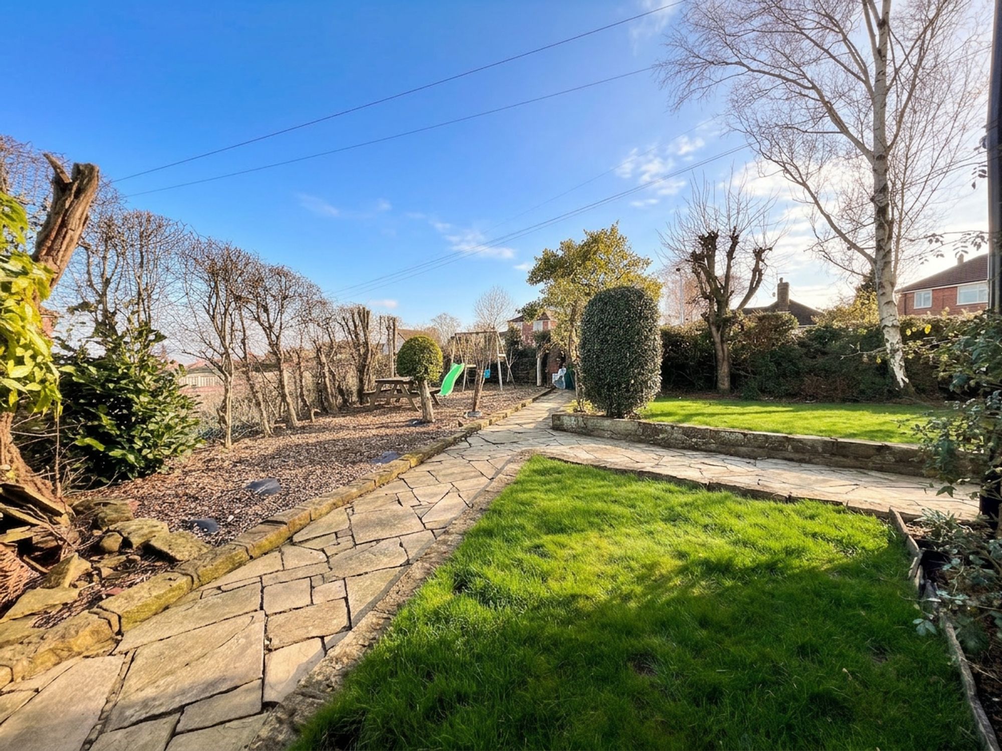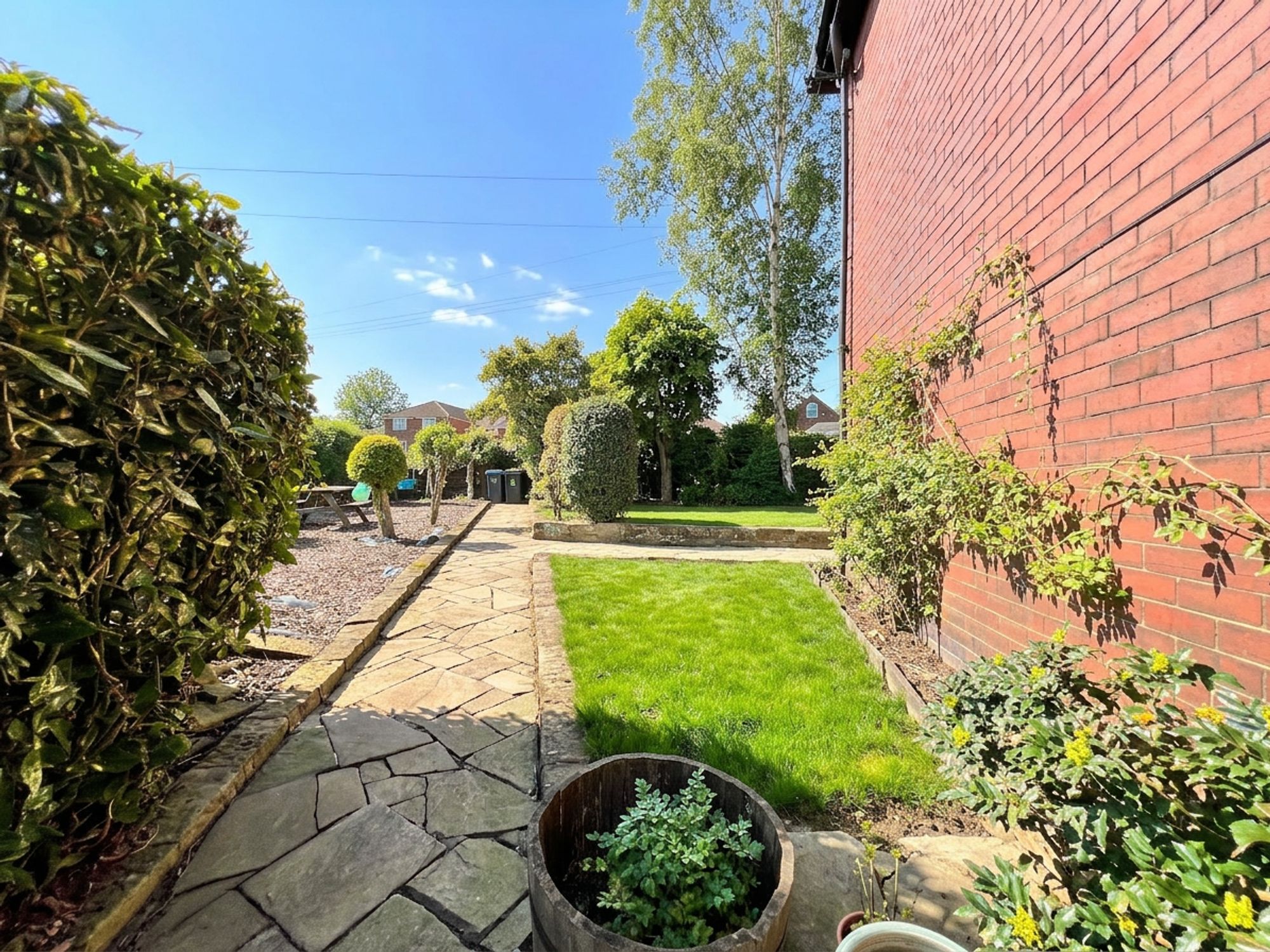 Externally, the property is equally as impressive. Accessed via secure wooden gates, you are welcomed onto a private driveway providing off-road parking for two vehicles, complete with the added benefit of an EV charger. The driveway leads to the garage, which benefits from an electricity supply and a separate, useful store room ideal for hobbies or additional storage. Beneath a practical canopy, there is further storage space, perfectly suited for logs and outdoor equipment. The front garden enjoys a high degree of privacy, beautifully screened by well-established shrubs and thoughtfully designed with a level lawn and dedicated children’s bark play area creating a wonderful family-friendly environment. To the rear, the garden is fully enclosed, offering both security and seclusion. A lush, level lawn provides an ideal space for relaxing or entertaining, while paved sections ensure low maintenance and practicality, making this outdoor space as functional as it is inviting.