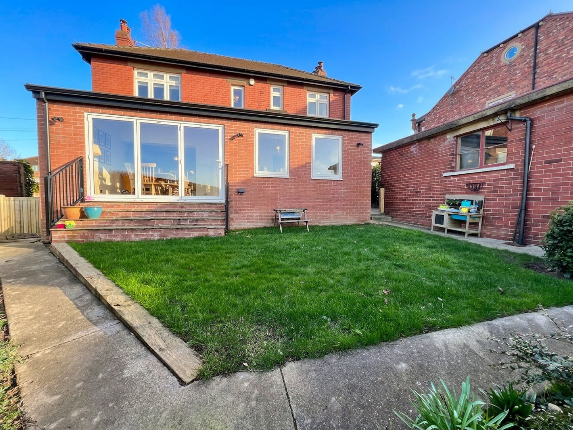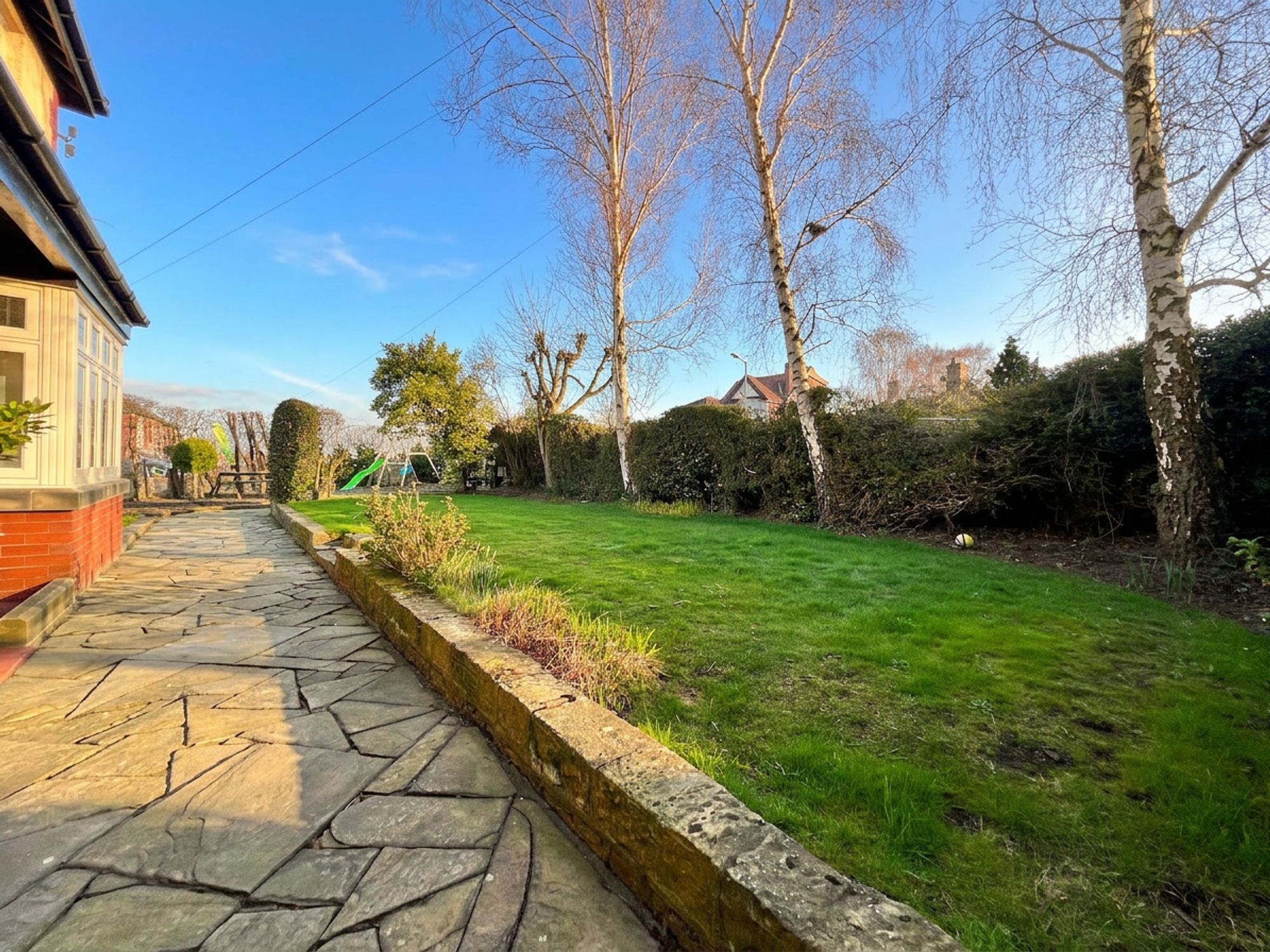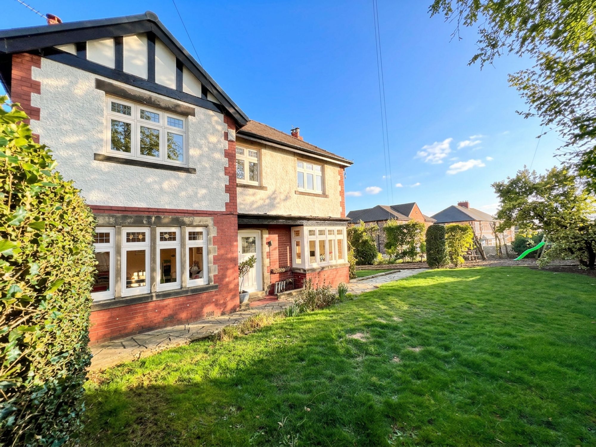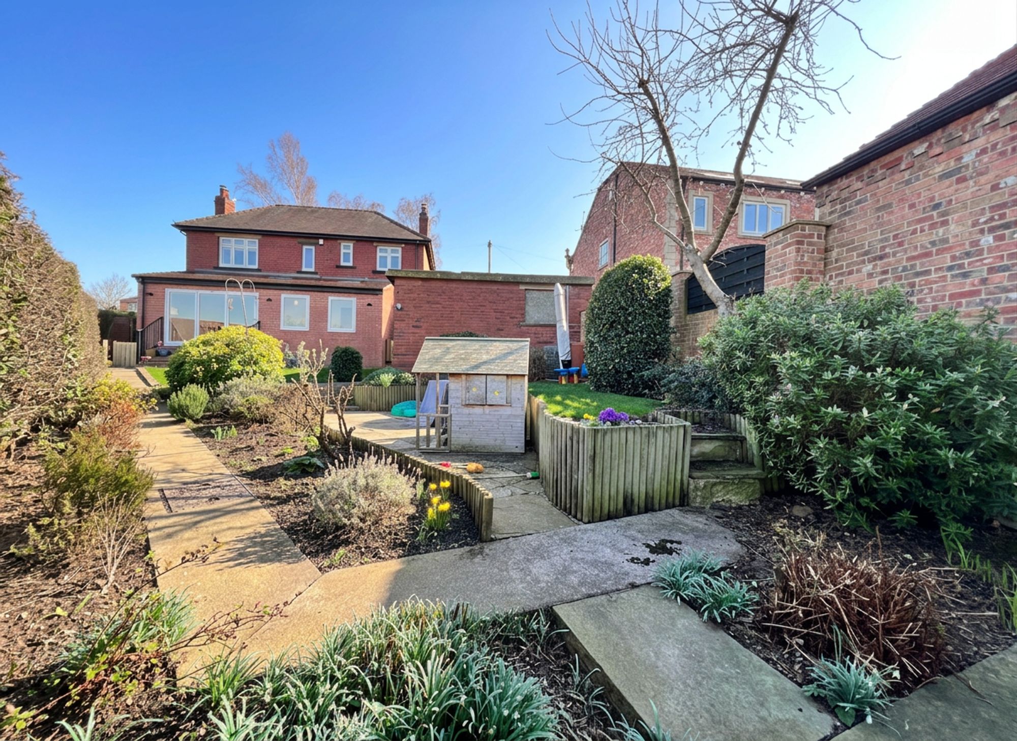 Externally, the property is equally as impressive. Accessed via secure wooden gates, you are welcomed onto a private driveway providing off-road parking for two vehicles, complete with the added benefit of an EV charger. The driveway leads to the garage, which benefits from an electricity supply and a separate, useful store room ideal for hobbies or additional storage. Beneath a practical canopy, there is further storage space, perfectly suited for logs and outdoor equipment. The front garden enjoys a high degree of privacy, beautifully screened by well-established shrubs and thoughtfully designed with a level lawn and dedicated children’s bark play area creating a wonderful family-friendly environment. To the rear, the garden is fully enclosed, offering both security and seclusion. A lush, level lawn provides an ideal space for relaxing or entertaining, while paved sections ensure low maintenance and practicality, making this outdoor space as functional as it is inviting.