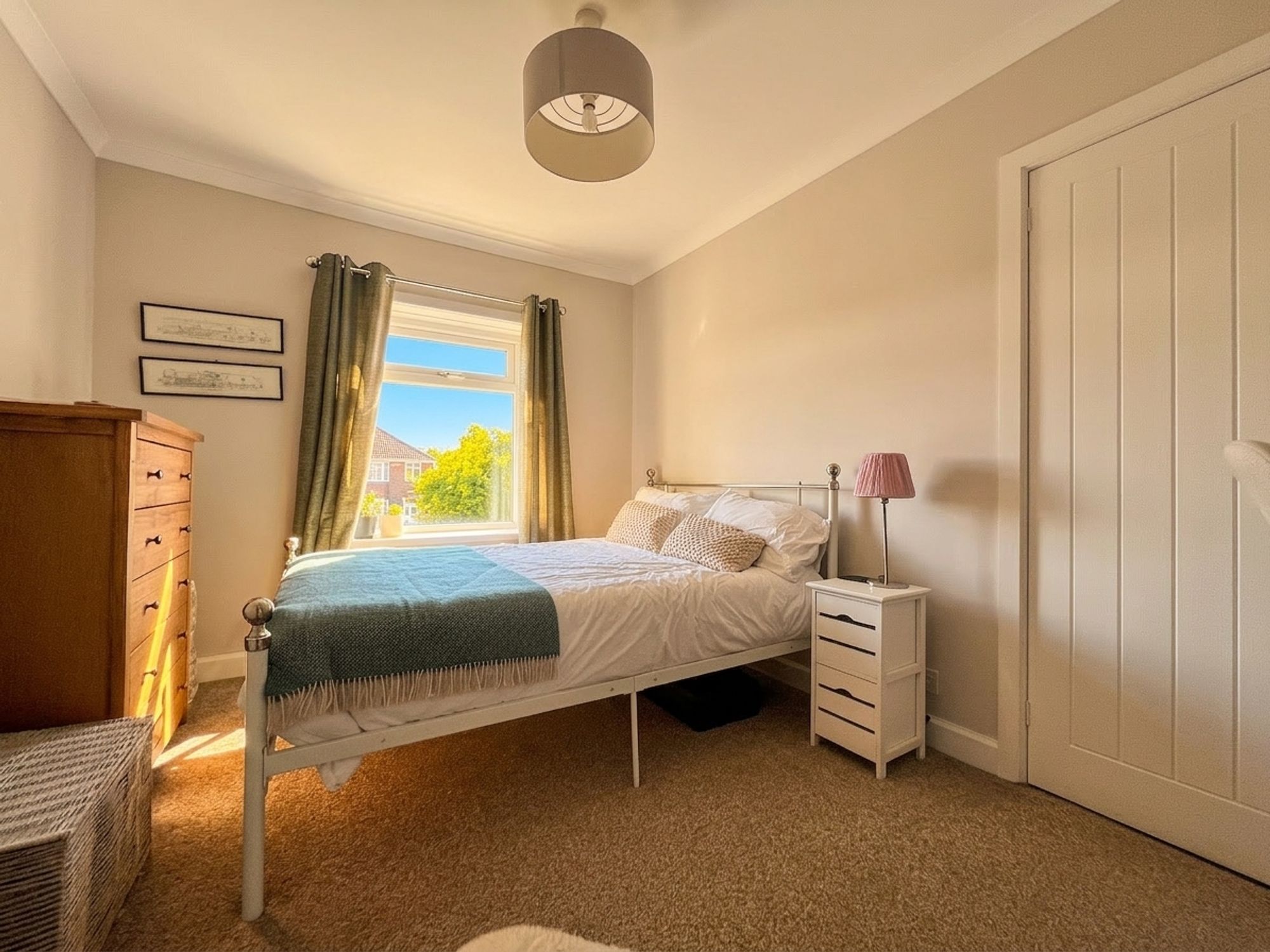 Another well-proportioned double bedroom positioned to the rear of the property, enjoying pleasant views over the rear garden. The room benefits from a useful built-in storage cupboard, providing practical space while maintaining a comfortable and versatile layout.