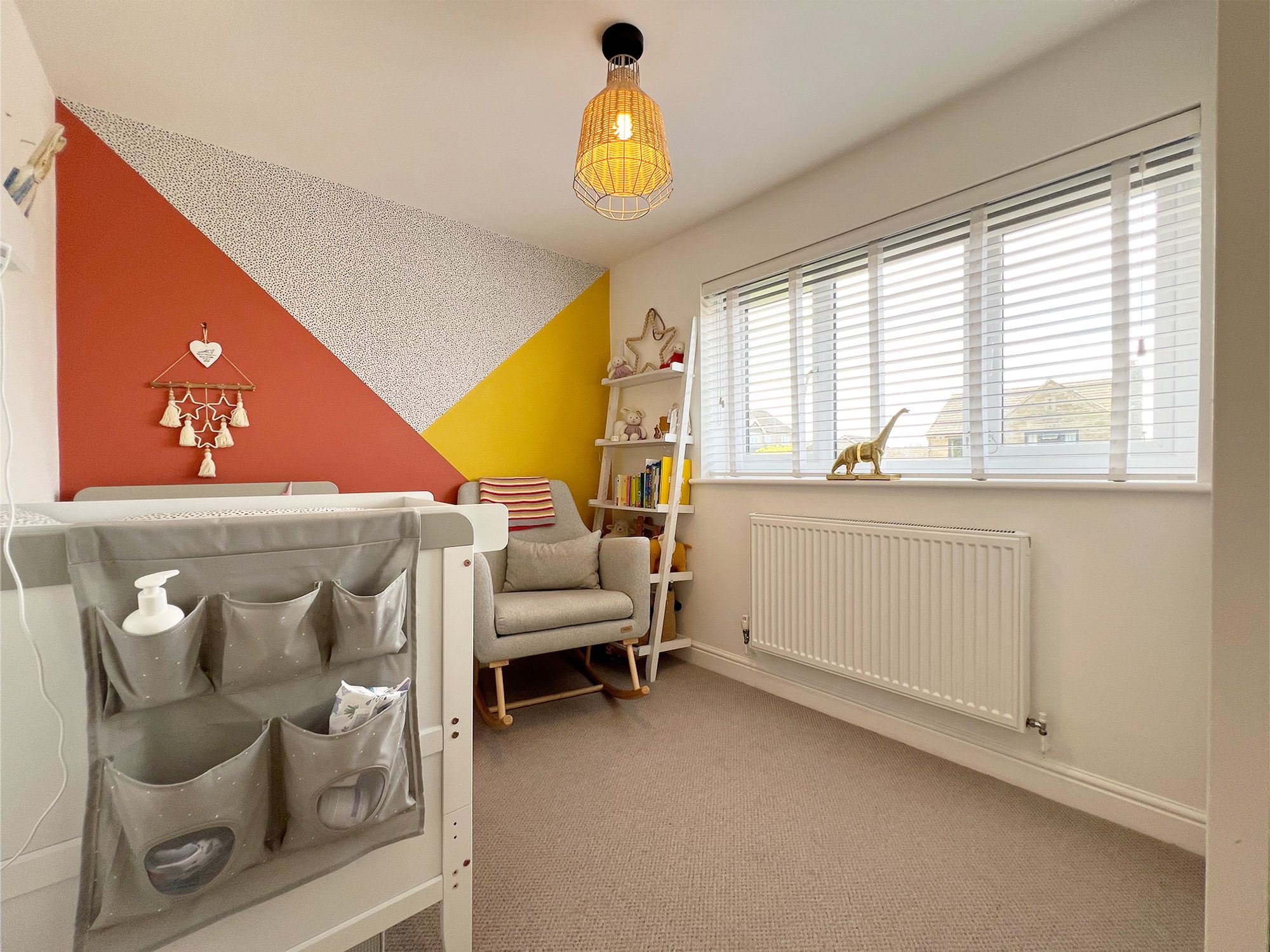 A wonderfully light and airy lounge, flooded with natural light courtesy of a stunning bay window that enhances the sense of space and serenity. The main focal point of the room is the coal-effect gas fire, beautifully set within an impressive surround, casting a warm and cosy ambience on cooler evenings. Presented in soft neutral tones with plush carpet underfoot, the room offers both comfort and elegance. Double doors open into an incredibly versatile adjoining space, currently used by the vendors as a playroom, though it could easily adapt to suit a variety of needs, be it a home office, snug, or formal dining area, depending on your lifestyle.