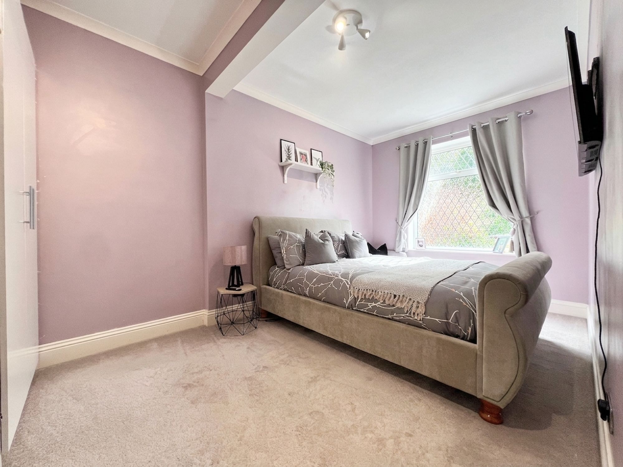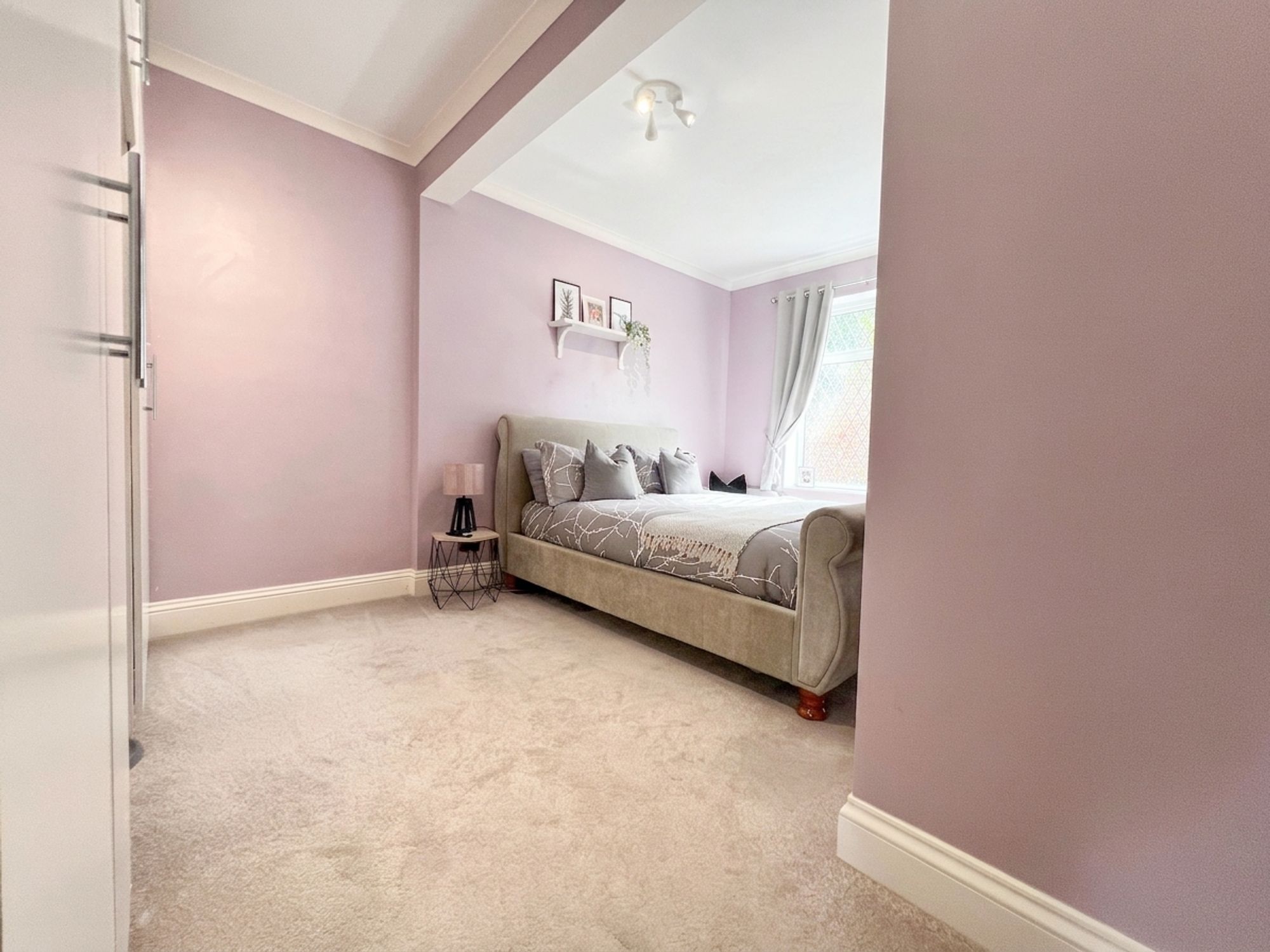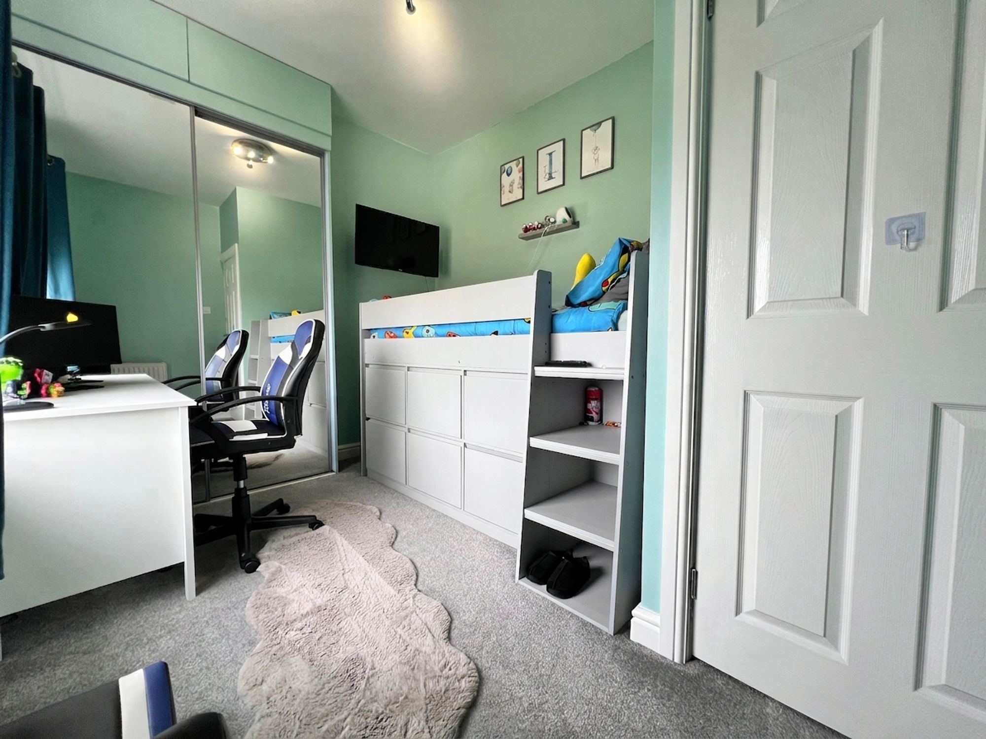 Another well-proportioned double bedroom positioned to the front of the property, benefiting from mirrored sliding wardrobes which provide excellent built-in storage while enhancing the sense of light and space within the room.
