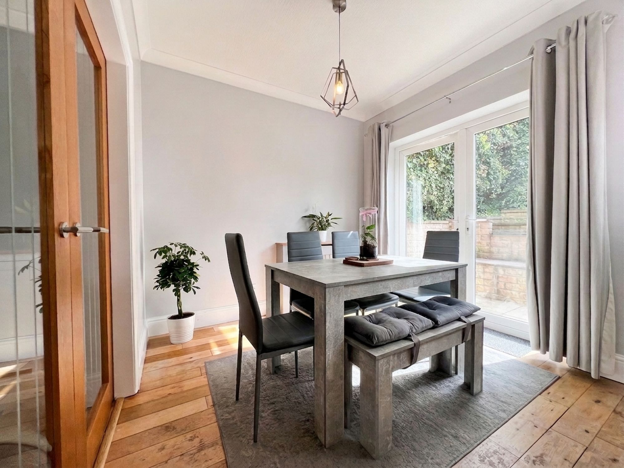 Connected to both the kitchen and lounge, the dining room enjoys a wonderful position within the home, with patio doors opening directly onto the fantastic rear garden. Generous in size, it comfortably accommodates a family dining suite, creating the perfect setting for socialising and entertaining, with the added benefit of indoor living effortlessly flowing outdoors during the summer months.