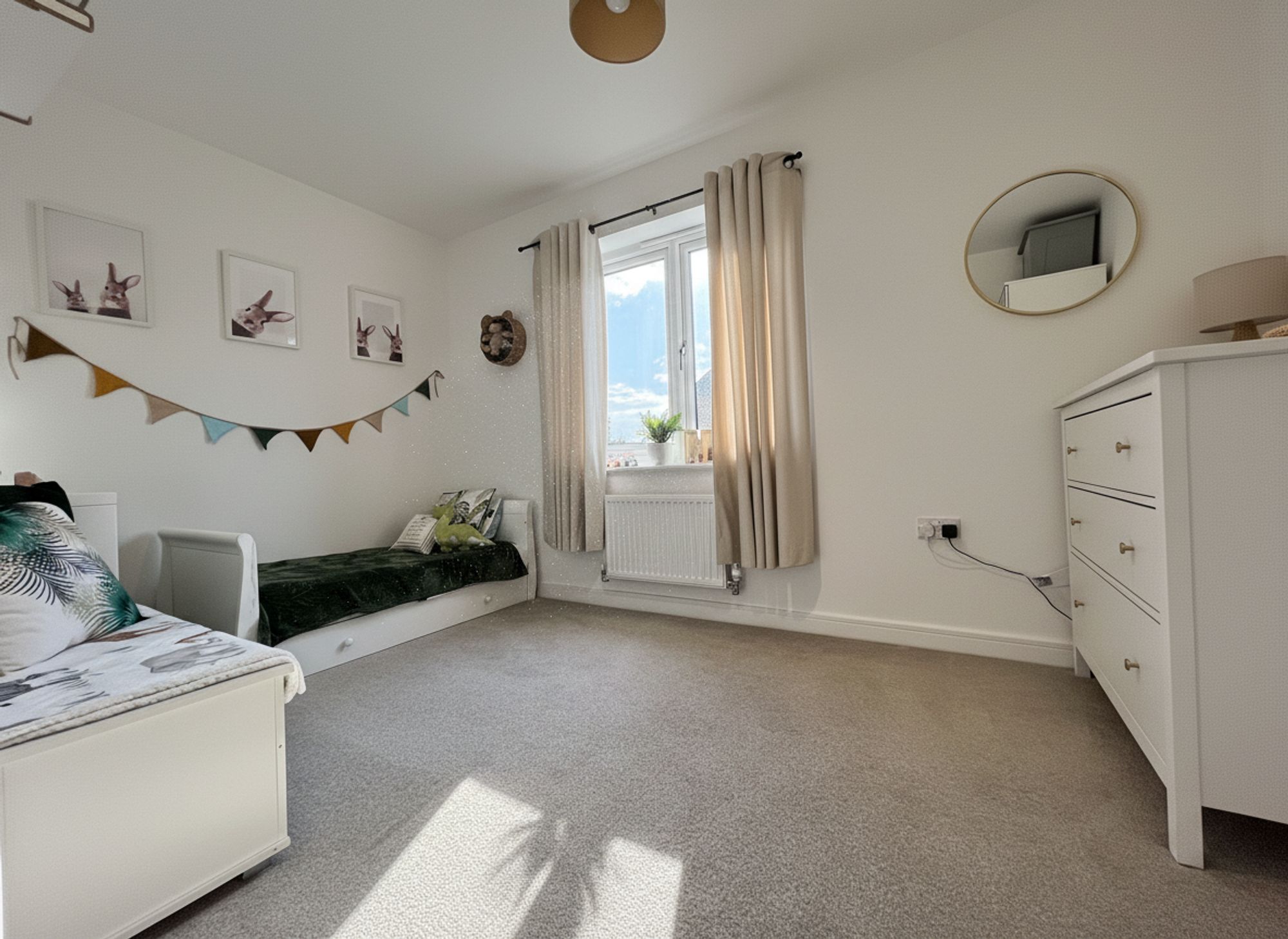 Another good-sized double bedroom, located to the rear of the property, presented in neutral tones with soft carpeting underfoot, this versatile room offers ample space for a range of bedroom furnishings.