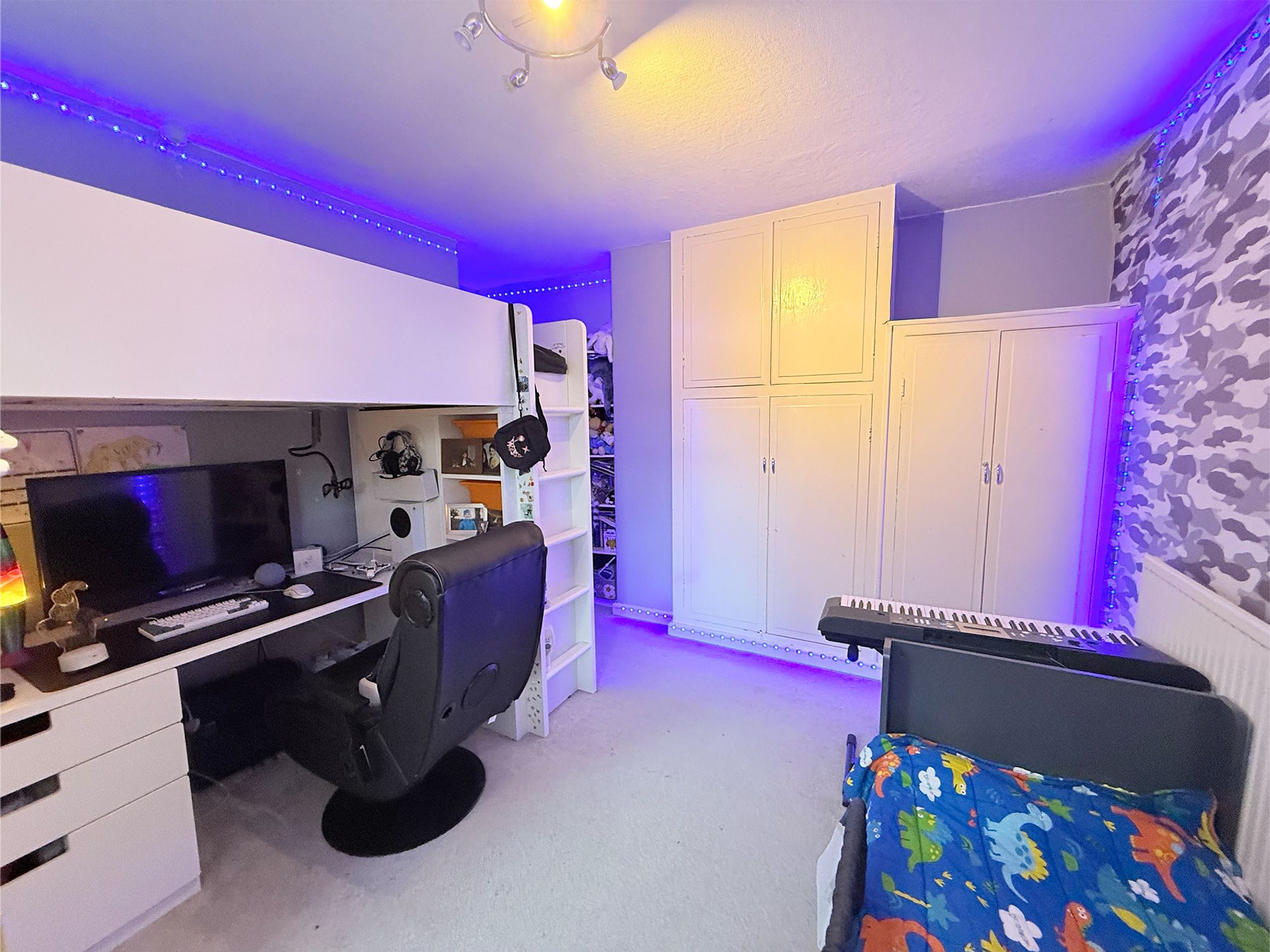 A well-proportioned double bedroom positioned at the rear of the property, tastefully presented in neutral tones. The room offers ample space for free-standing furniture and is highly versatile in use, ideal as a children’s bedroom, home office, or nursery.