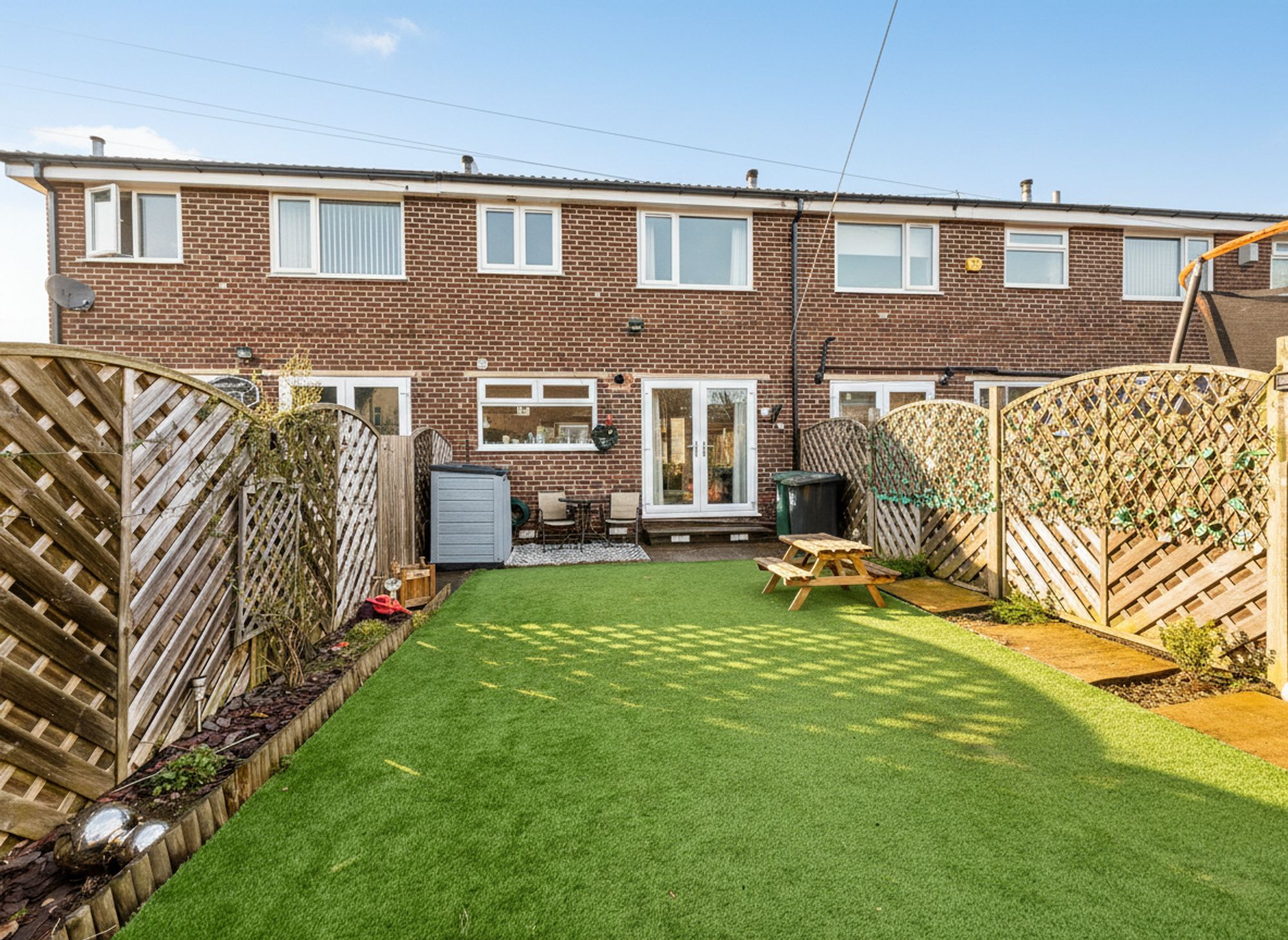 To the front of the property, there is a block-paved driveway providing off-road parking for two vehicles, there is also a garage on a plot of land near to the property. The fantastic-sized rear garden is fully enclosed, making it perfect for children and pets to enjoy safely. A patio area offers an ideal space for outdoor dining and entertaining, while the astroturfed middle section, trimmed with planted borders adds a splash of colour. A large shed at the rear provides excellent storage, completing this wonderful outdoor space.
