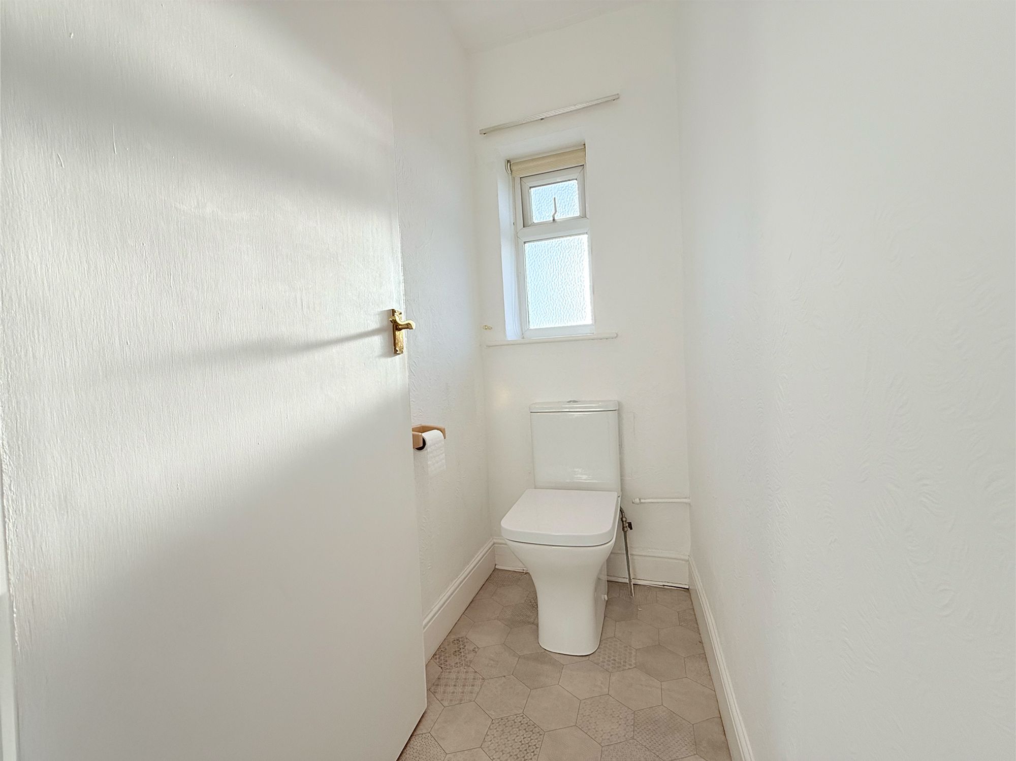 Located to the rear of the property, this well-presented shower room is fitted with a walk-in shower featuring a chrome handheld attachment, alongside a pedestal sink with chrome mixer tap. Finished in neutral tiling and practical linoleum flooring, the room feels clean and contemporary. There is the added benefit of built-in storage, ideal for use as a linen cupboard, and currently housing the boiler. The layout also offers excellent potential for future reconfiguration: by knocking through into the adjoining WC and incorporating part of the landing, there is scope to create a generous family bathroom with space for a full-sized bath, WC, and sink basin.